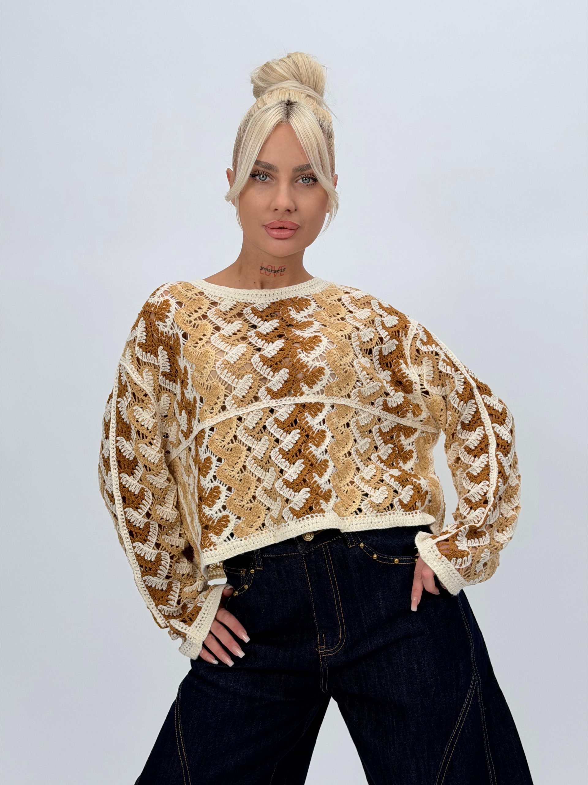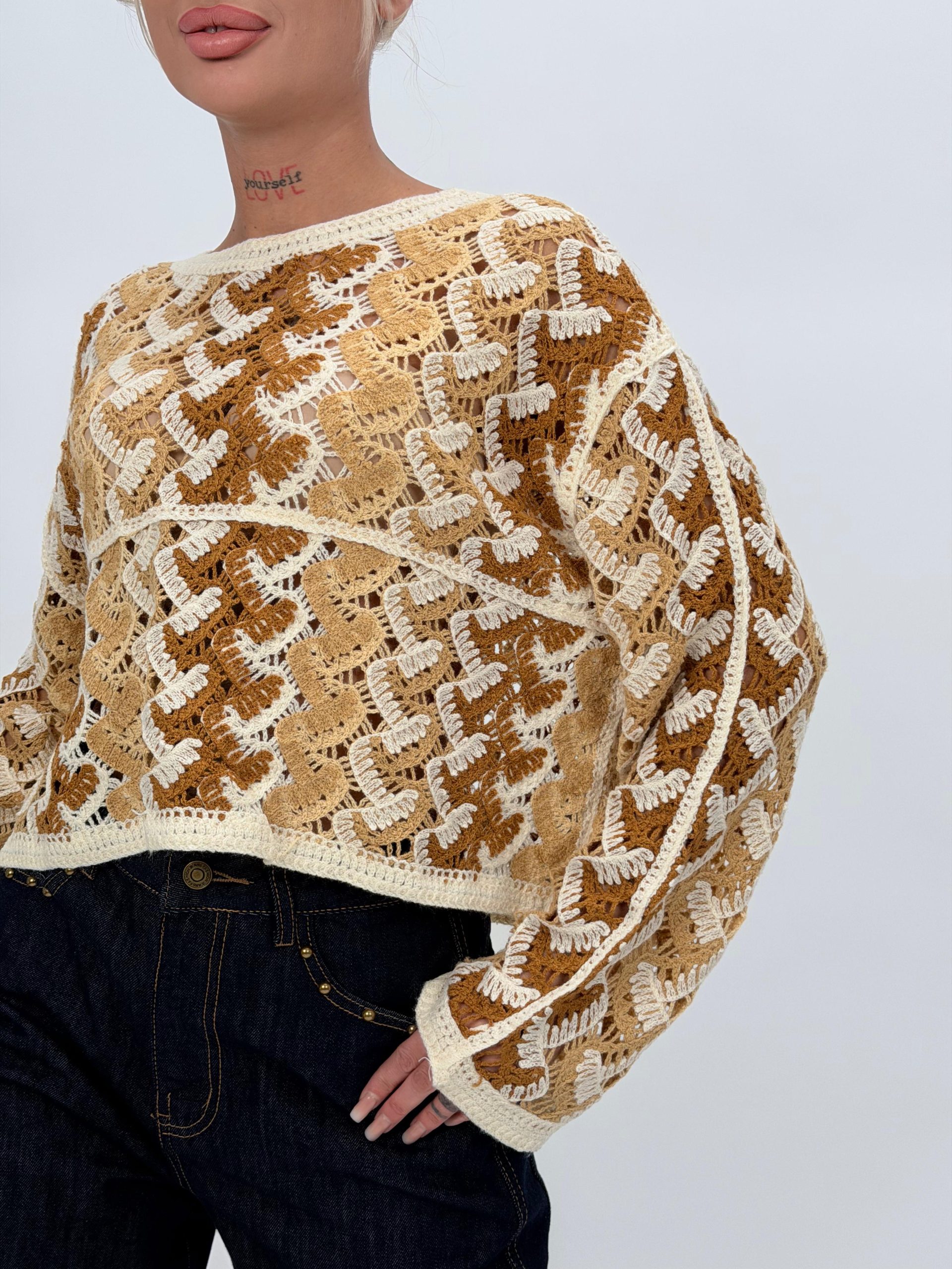 Bluză bej croșetată