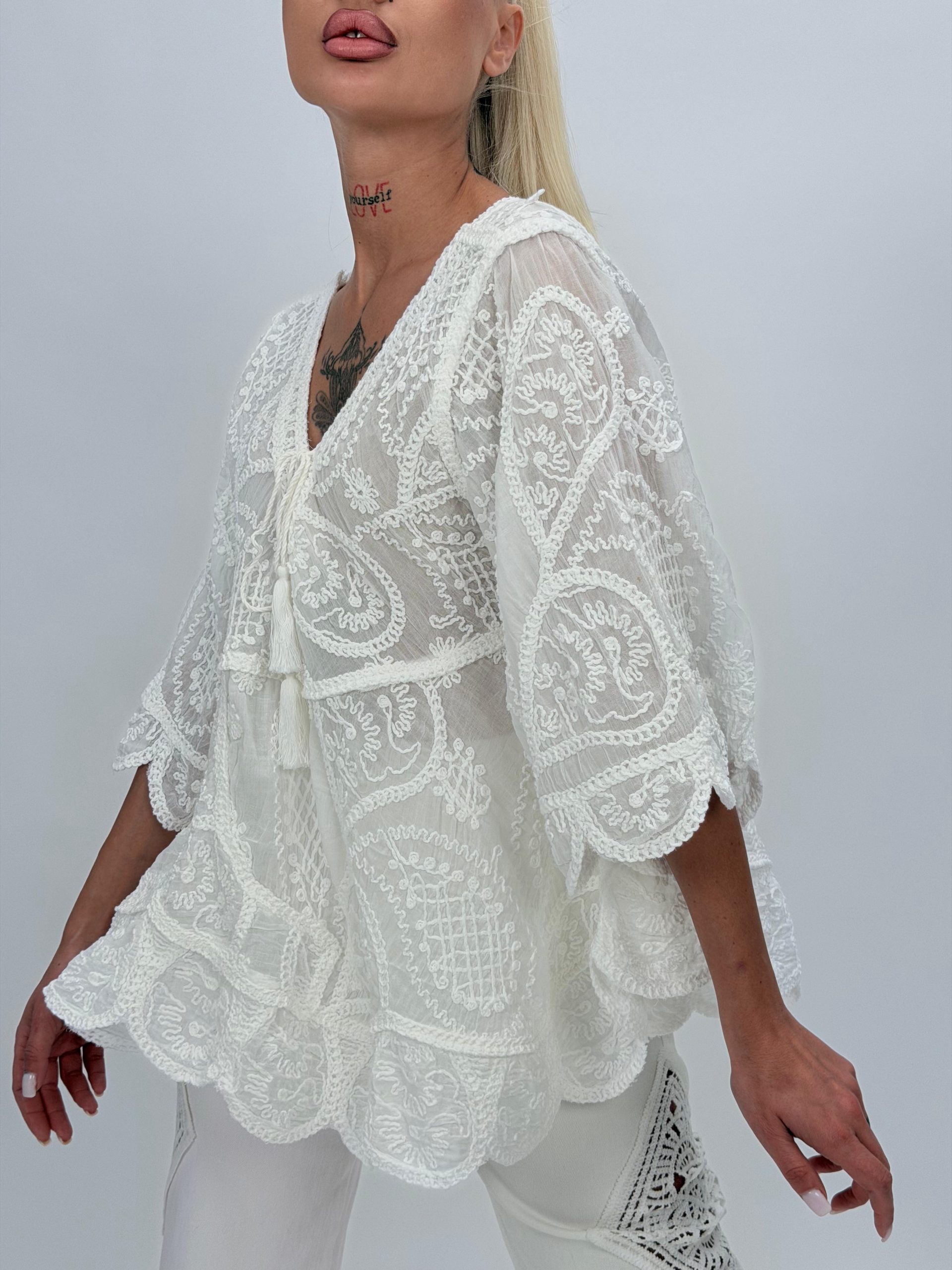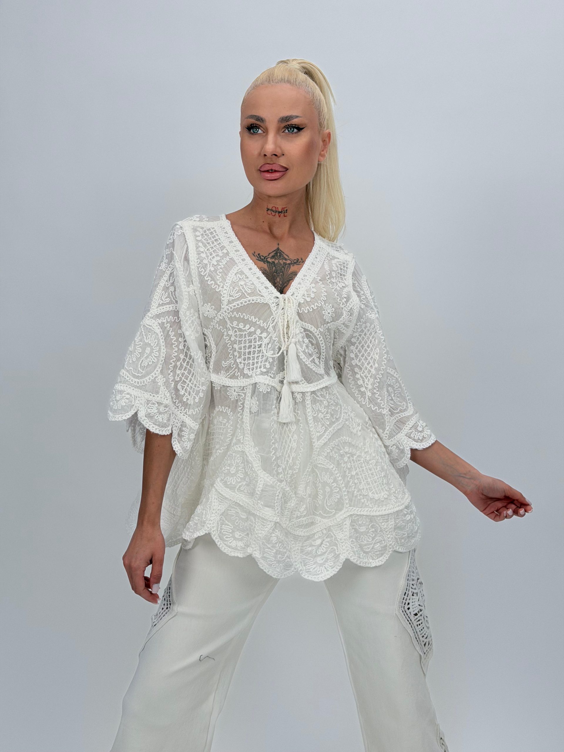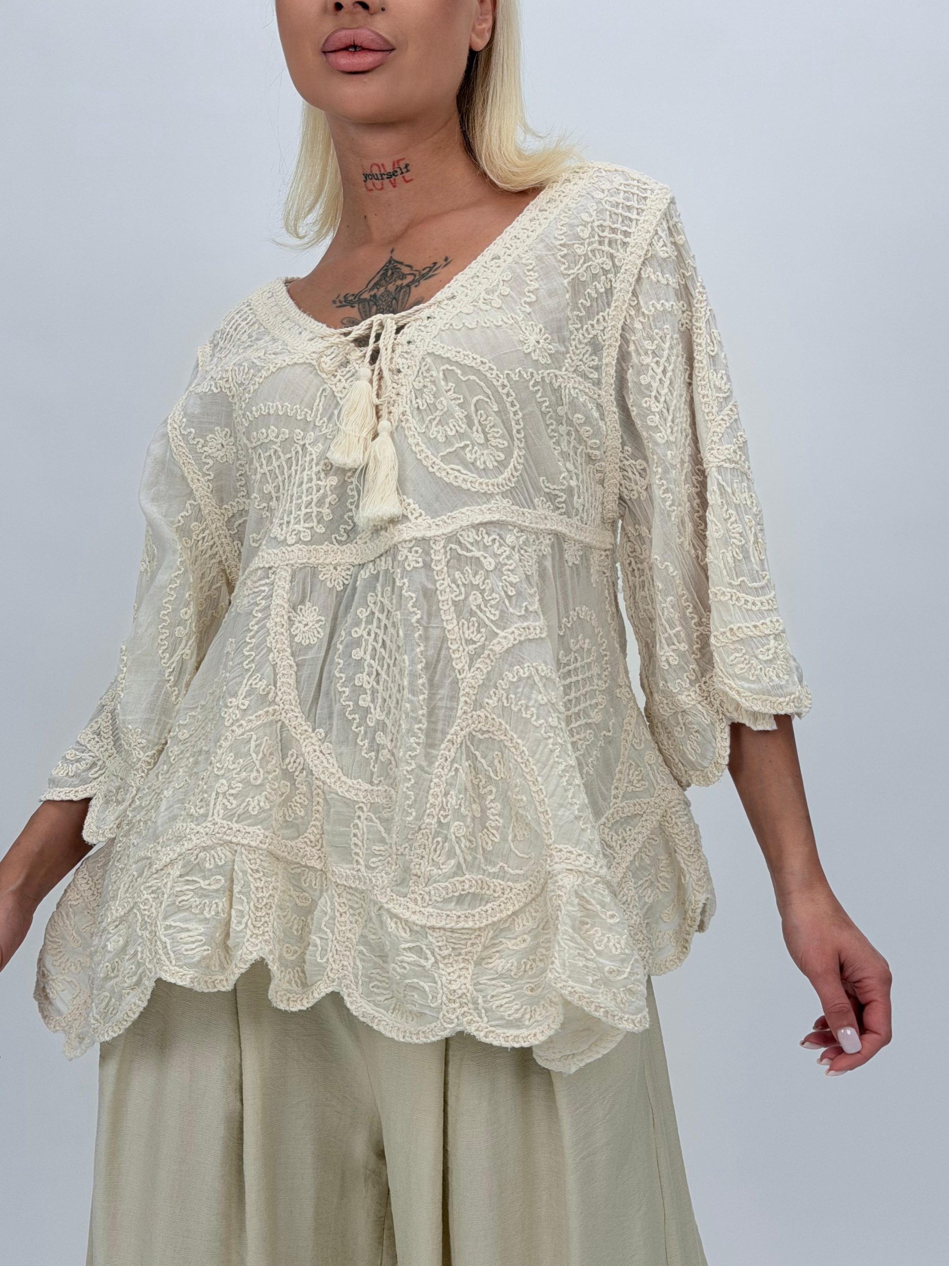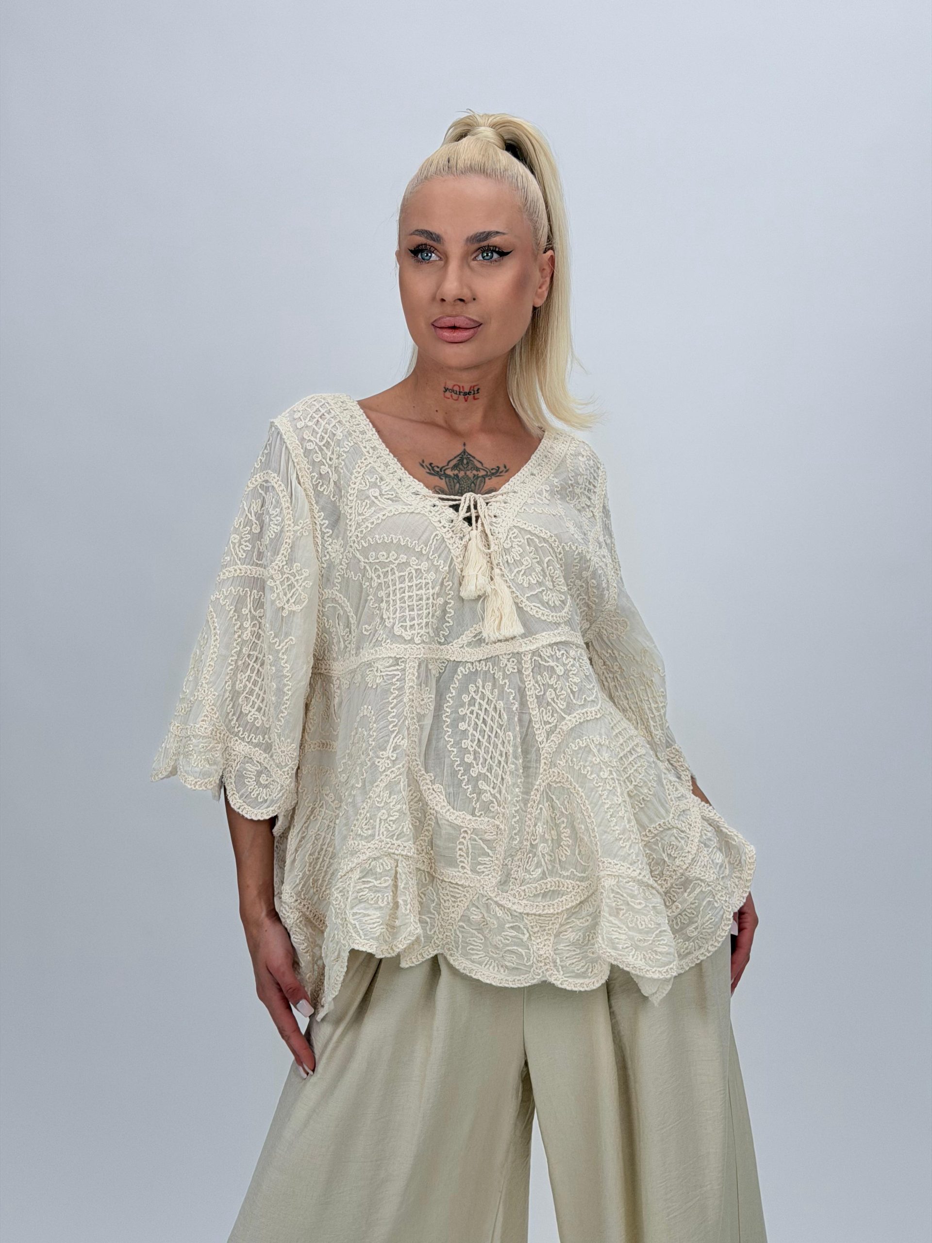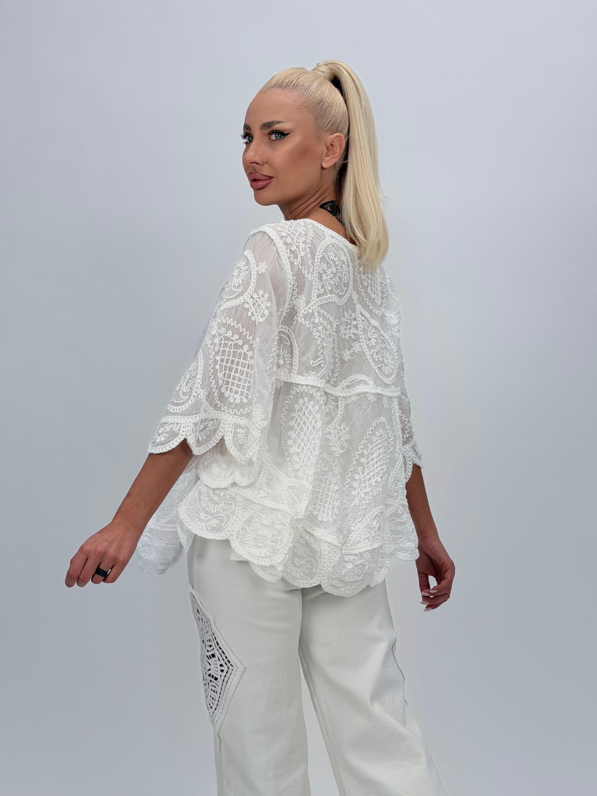 Bluză din bumbac cu broderie și 4 nasturi