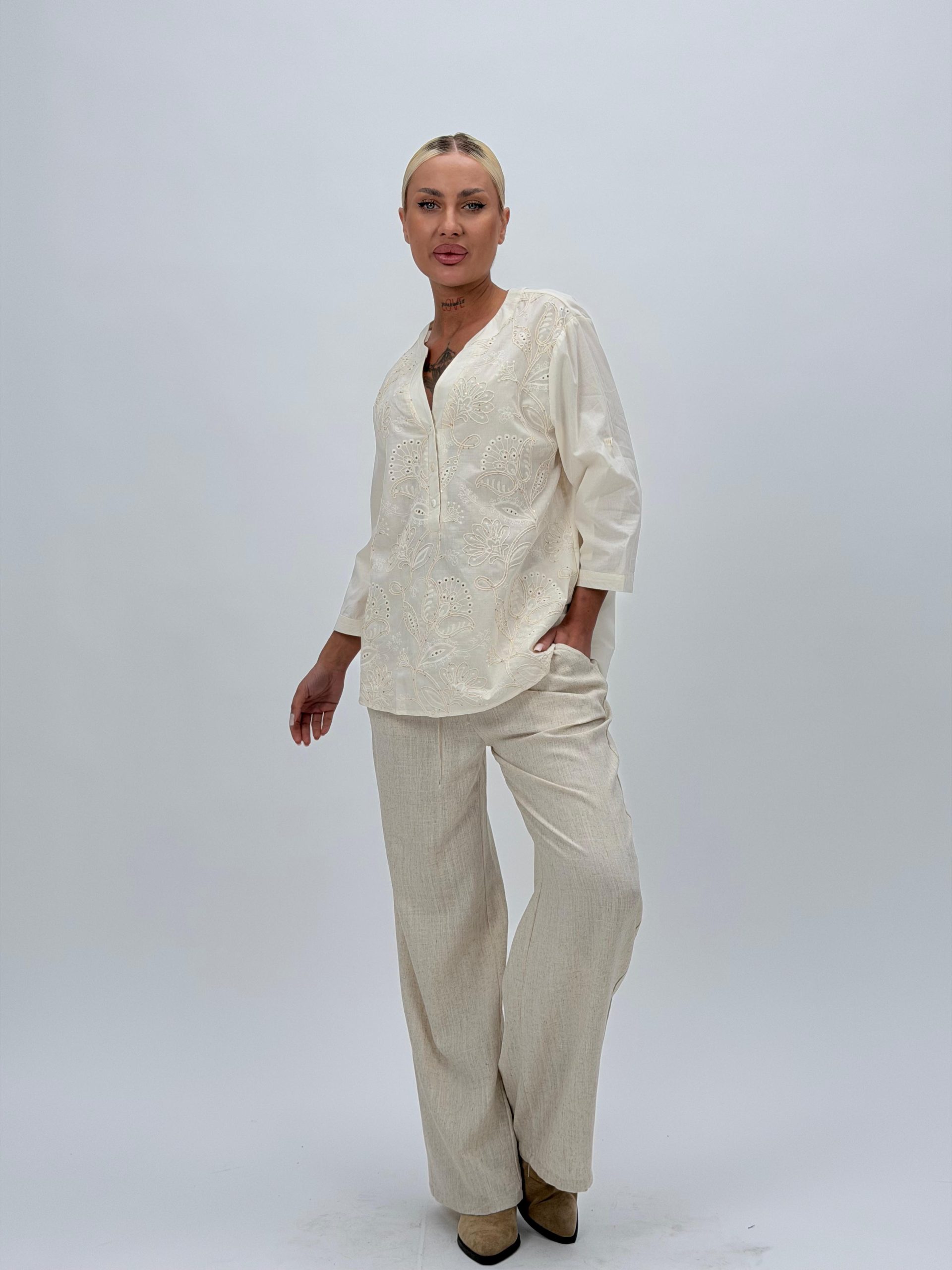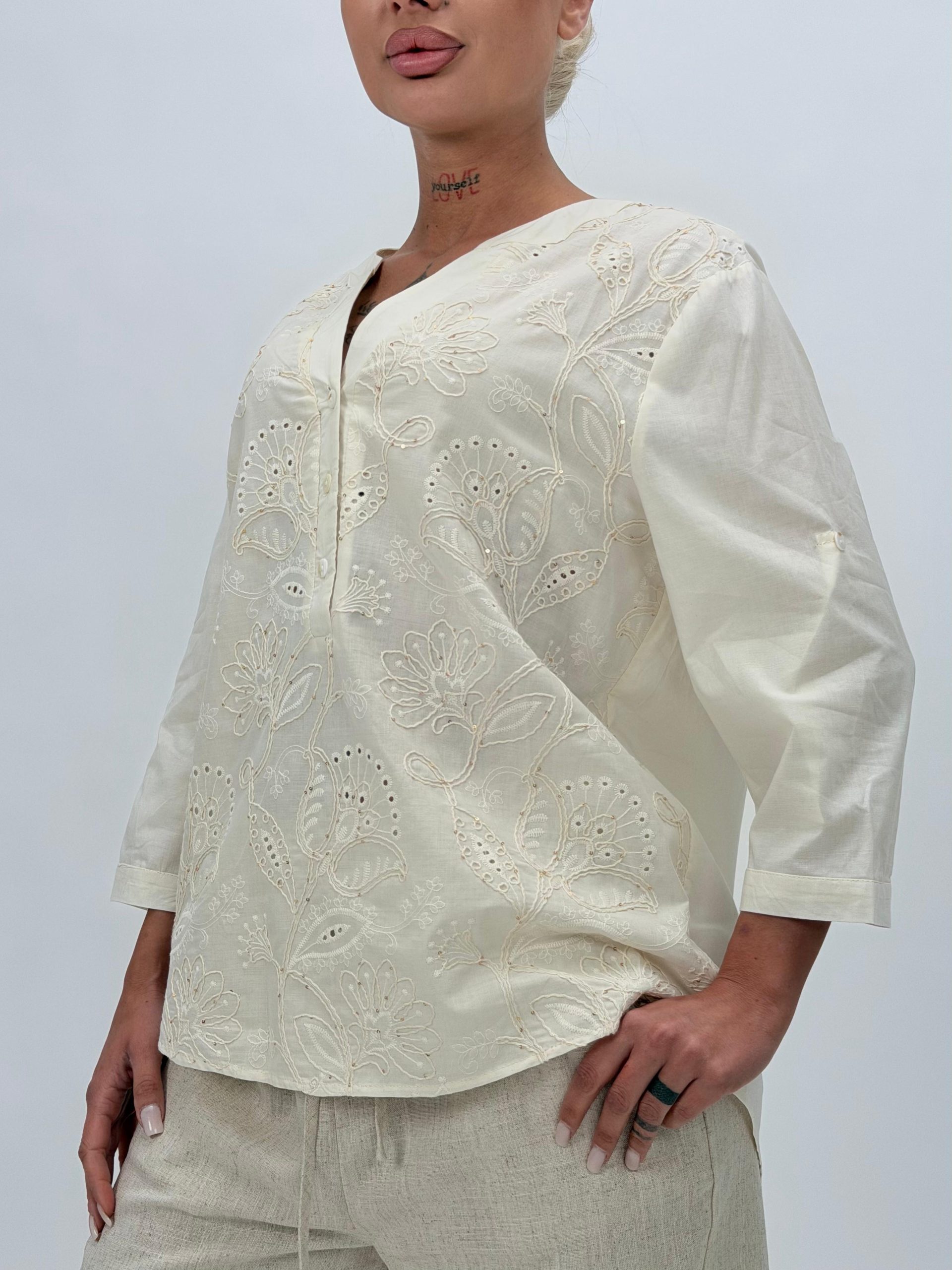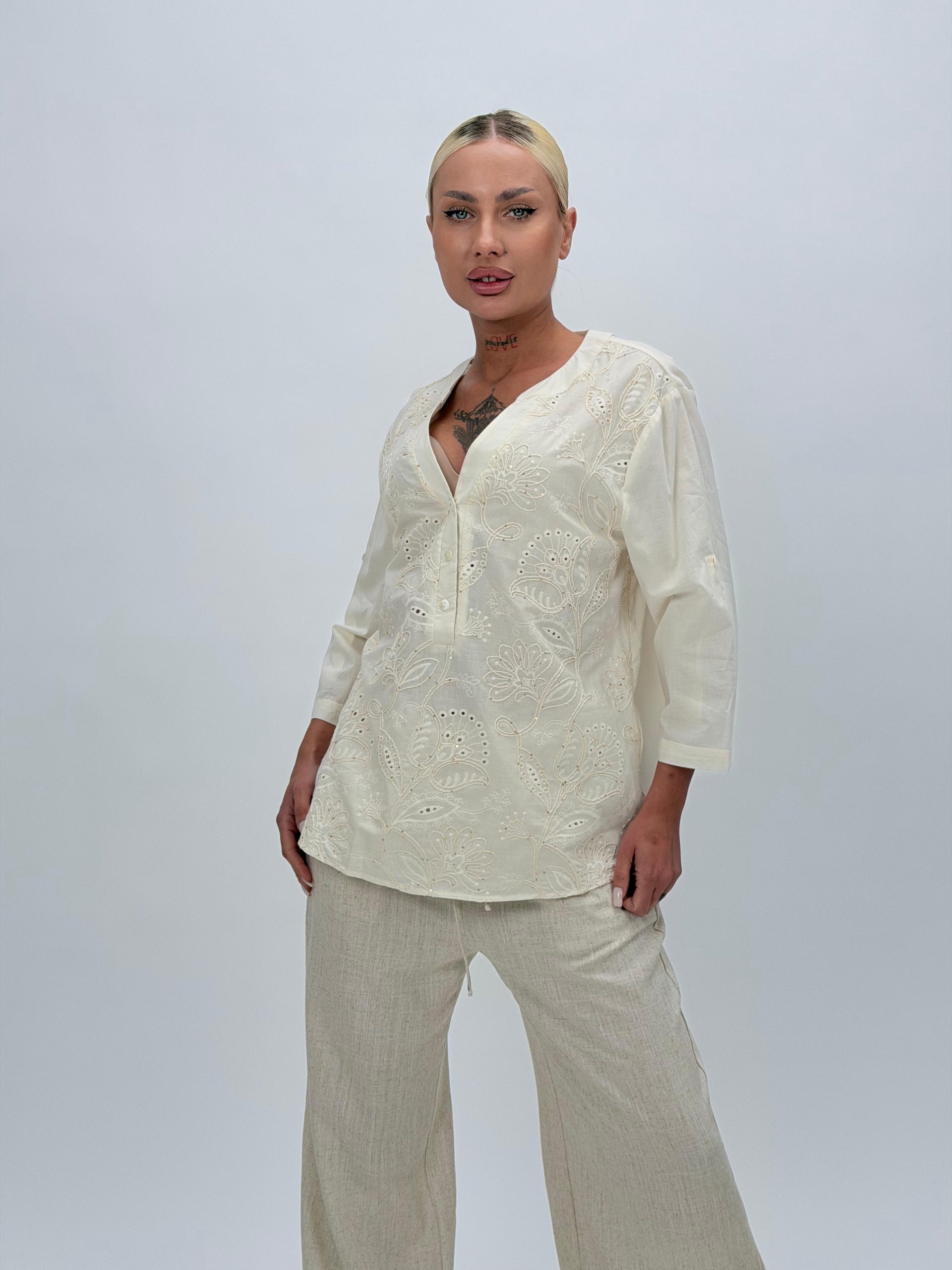 Fii primul care scrii o recenzie pentru „Bluză din bumbac cu broderie și nasturi”