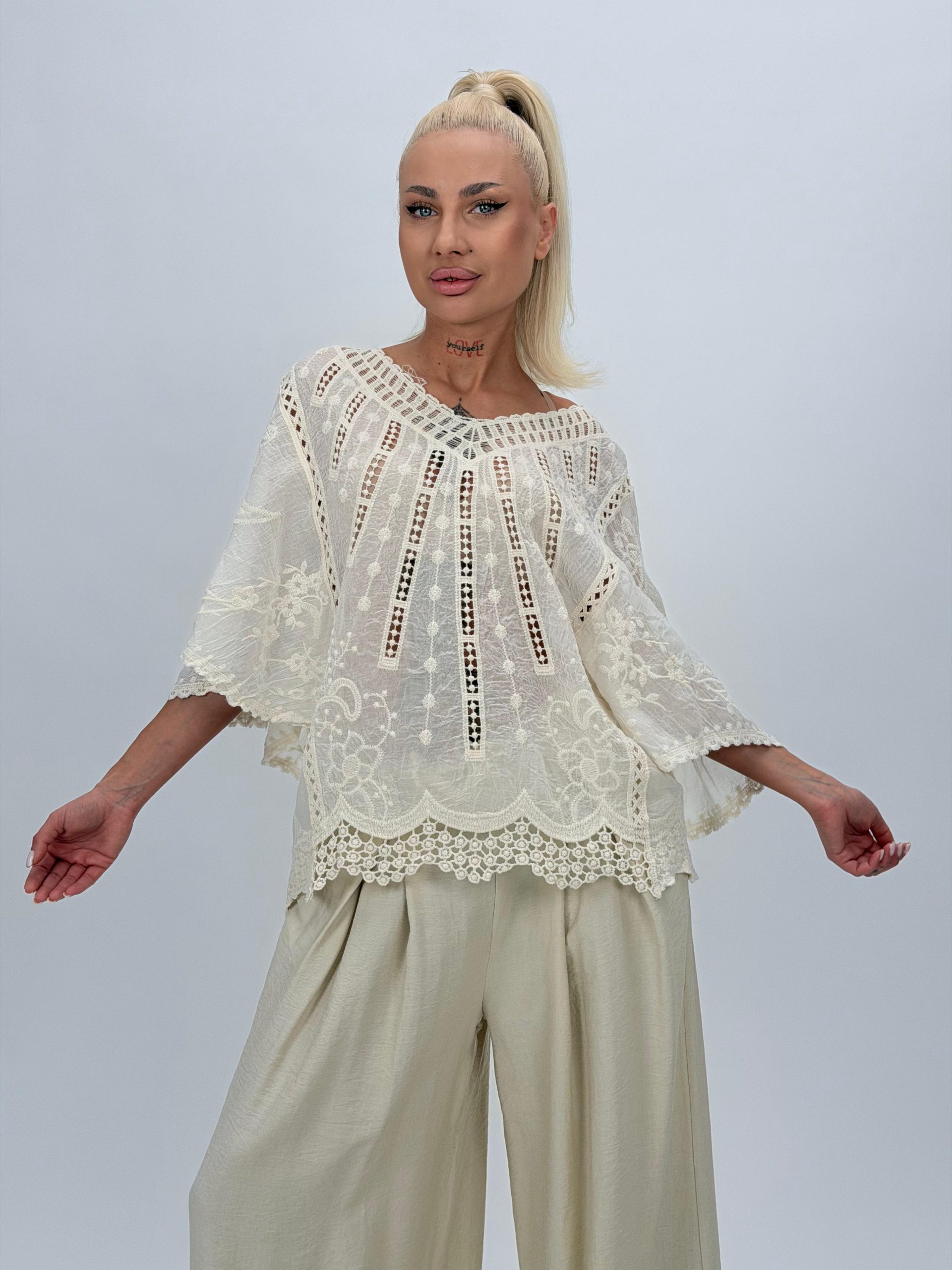 Bluză croșetată cu mânecă scurtă Prețul inițial a fost: 289,90 lei.Prețul curent este: 99,90 lei.
