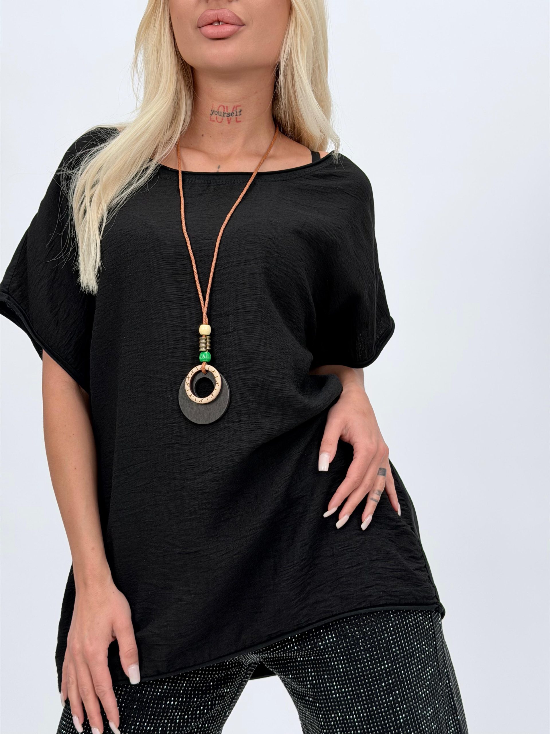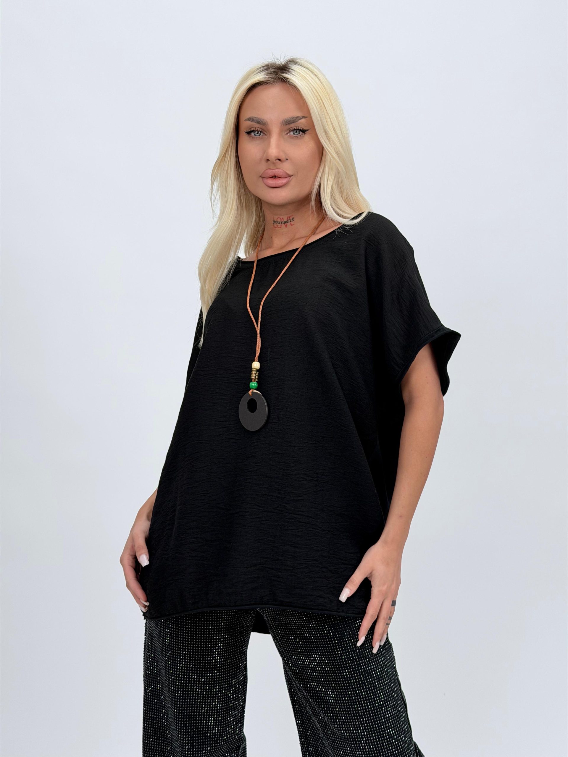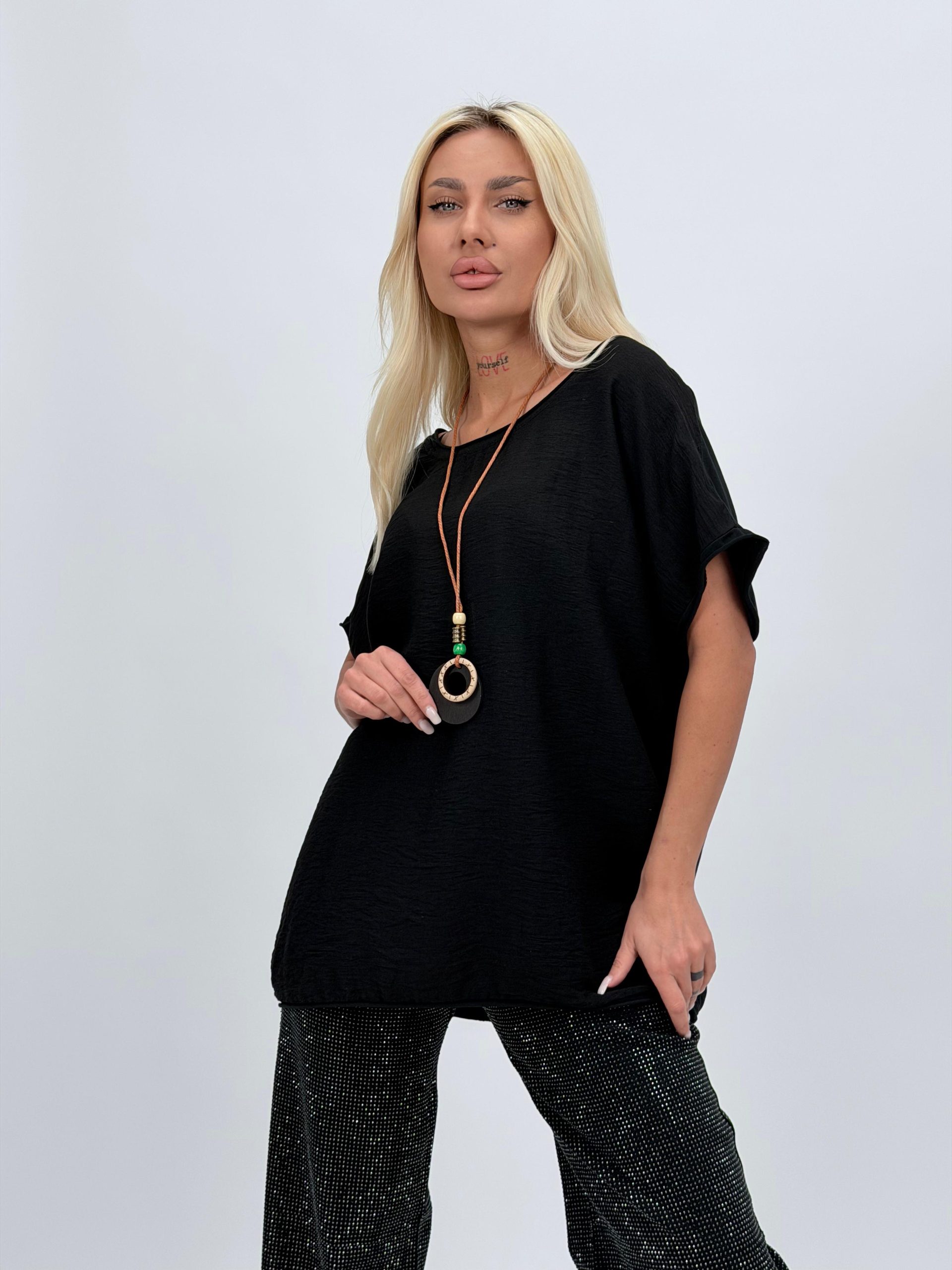 Bluza este concepută pentru a adăuga o notă subtilă de rafinament oricărei ținute. Colierul adaugă un element chic și elimina necesitatea de a accesoriza separat. Cu o croială lejeră și mâneci scurte, aceasta este alegerea perfectă pentru zilele de vară sau pentru straturi subtile în sezonul rece.