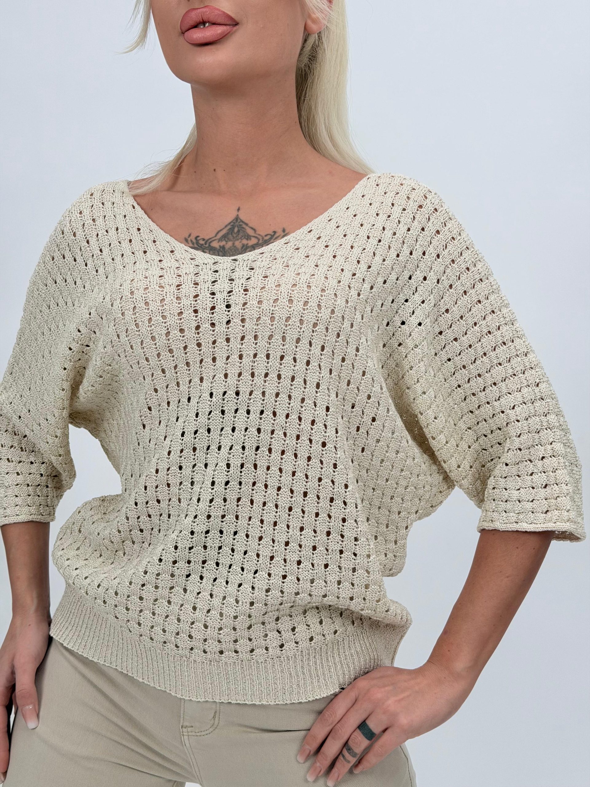 Bluză din tricot cu lurex și nasturi la spate Prețul inițial a fost: 369,90 lei.Prețul curent este: 149,90 lei.