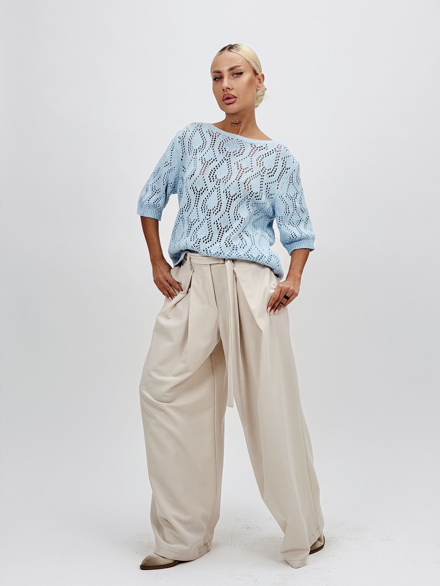 Bluza din tricot cu model perforat este alegerea ideală pentru un look casual, feminin și aerisit. Textura perforată oferă un efect vizual delicat și permite pielii să respire, fiind perfectă pentru zilele mai calde sau pentru layering ușor. Se integrează natural în garderobă, fiind versatilă și ușor de purtat.