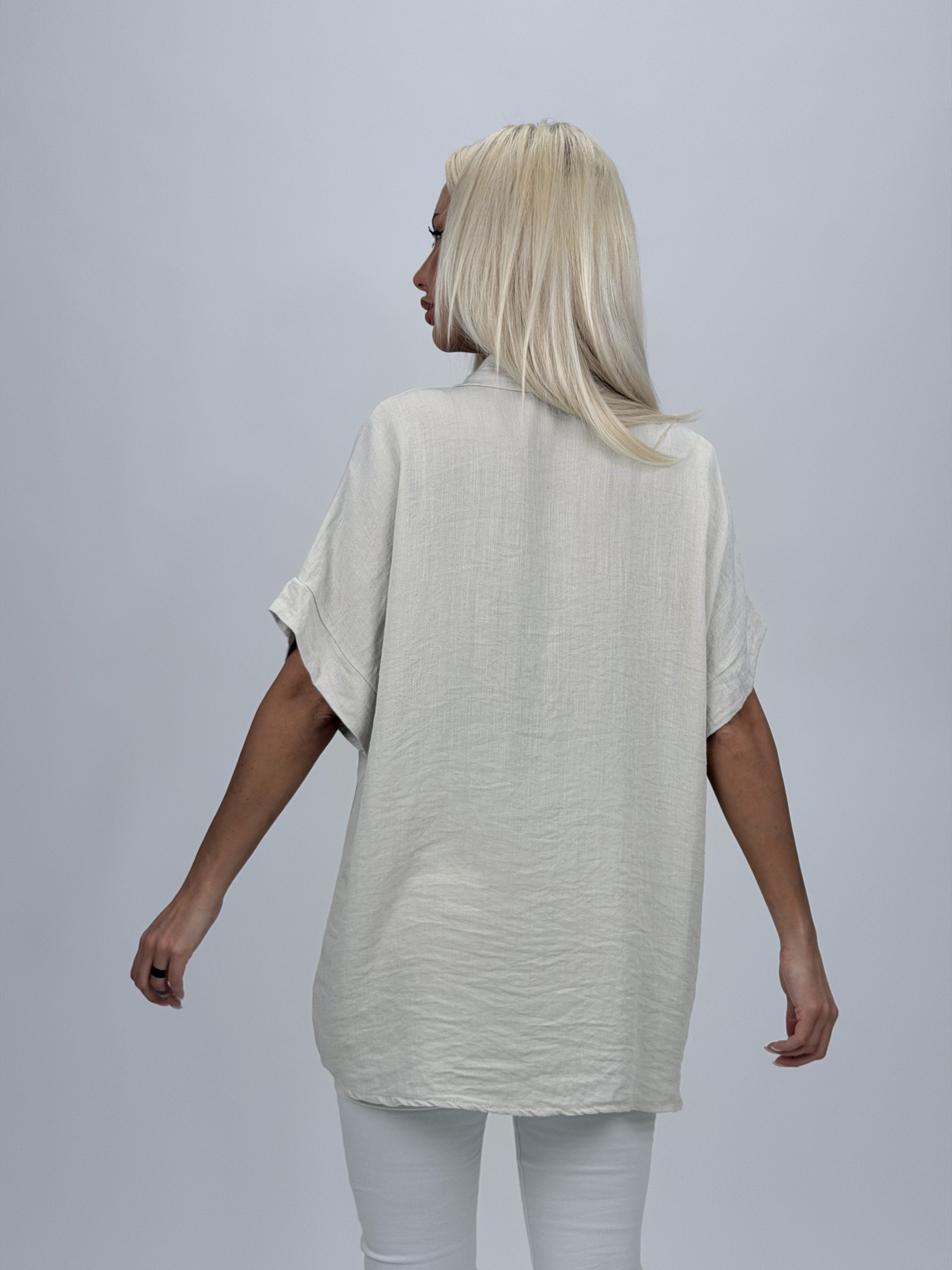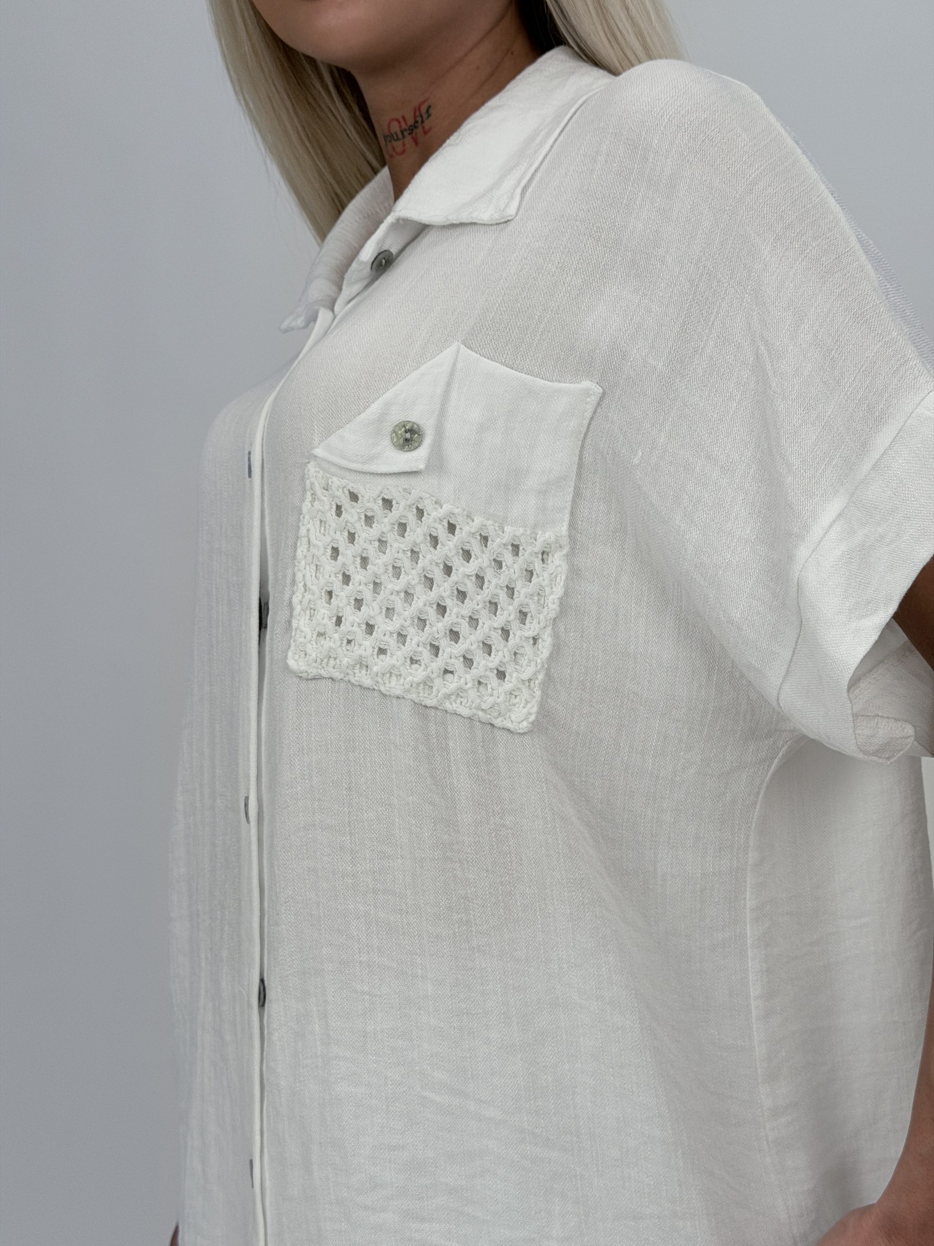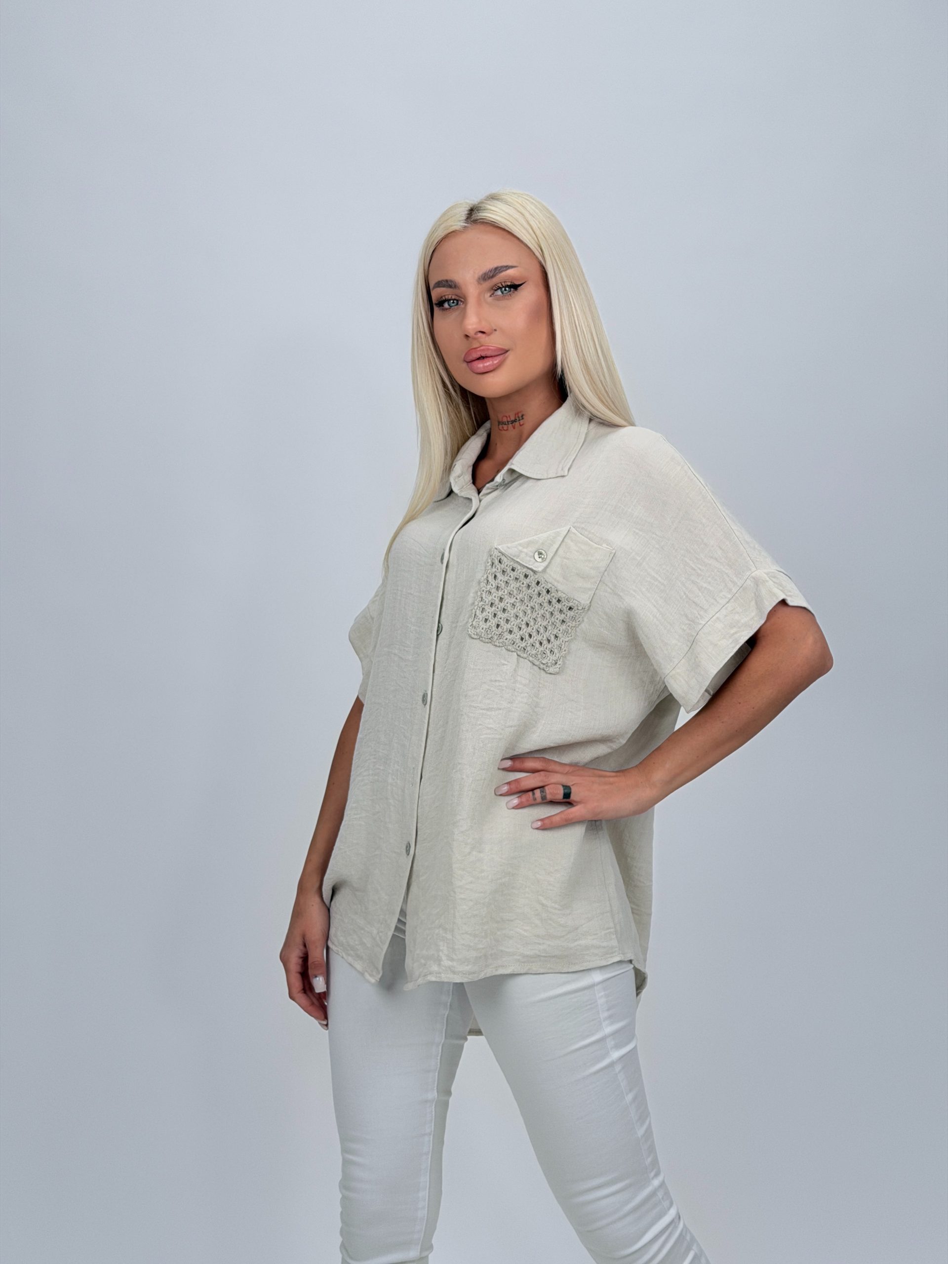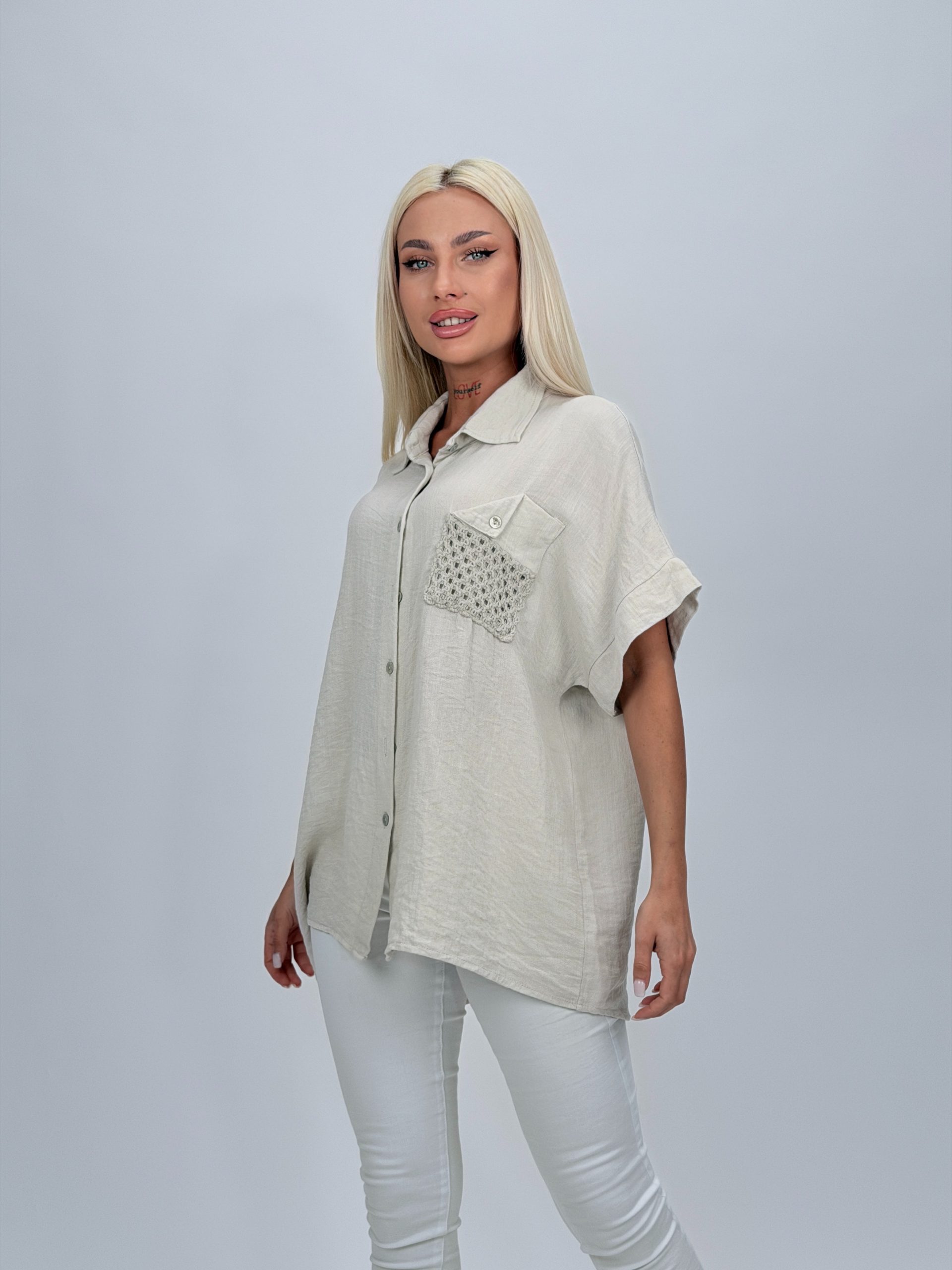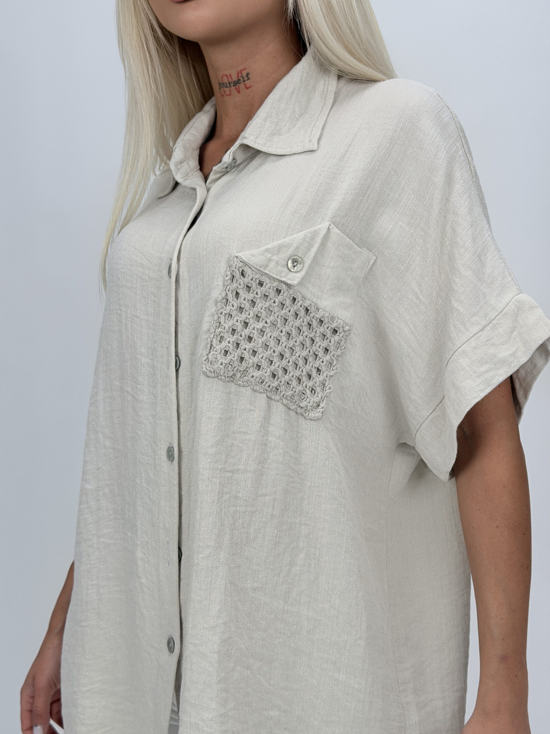 Bluză oversized cu buzunar brodat