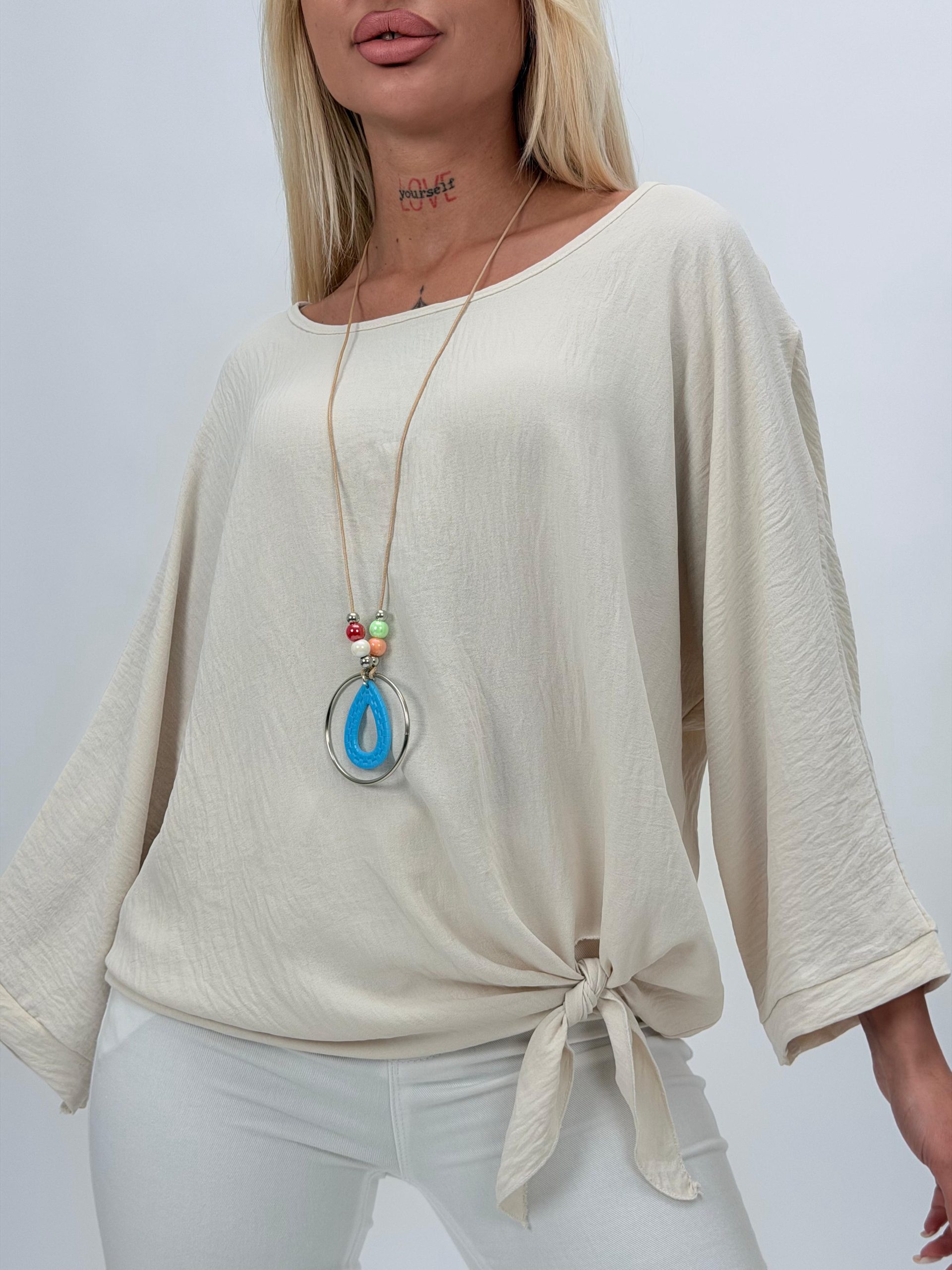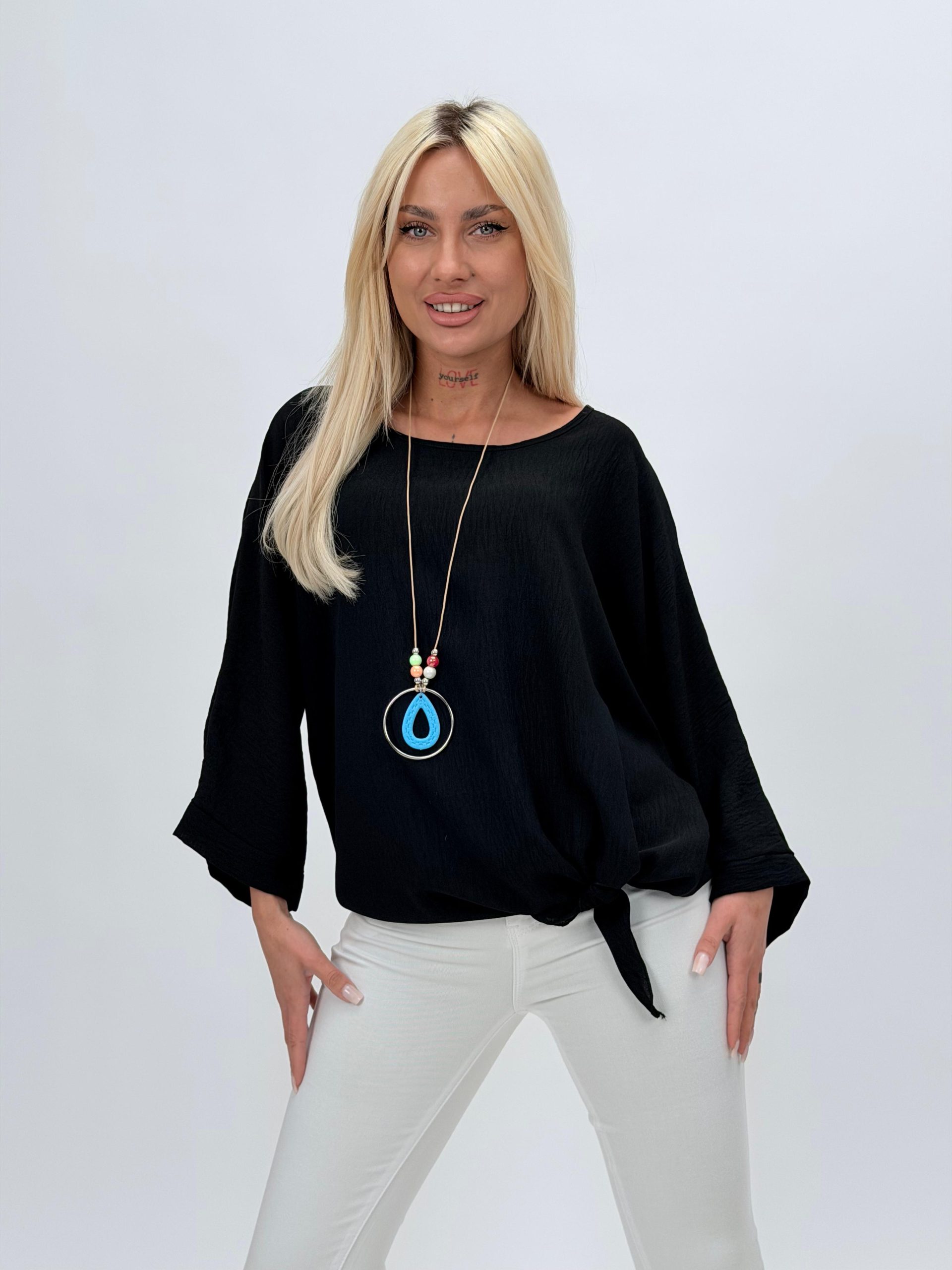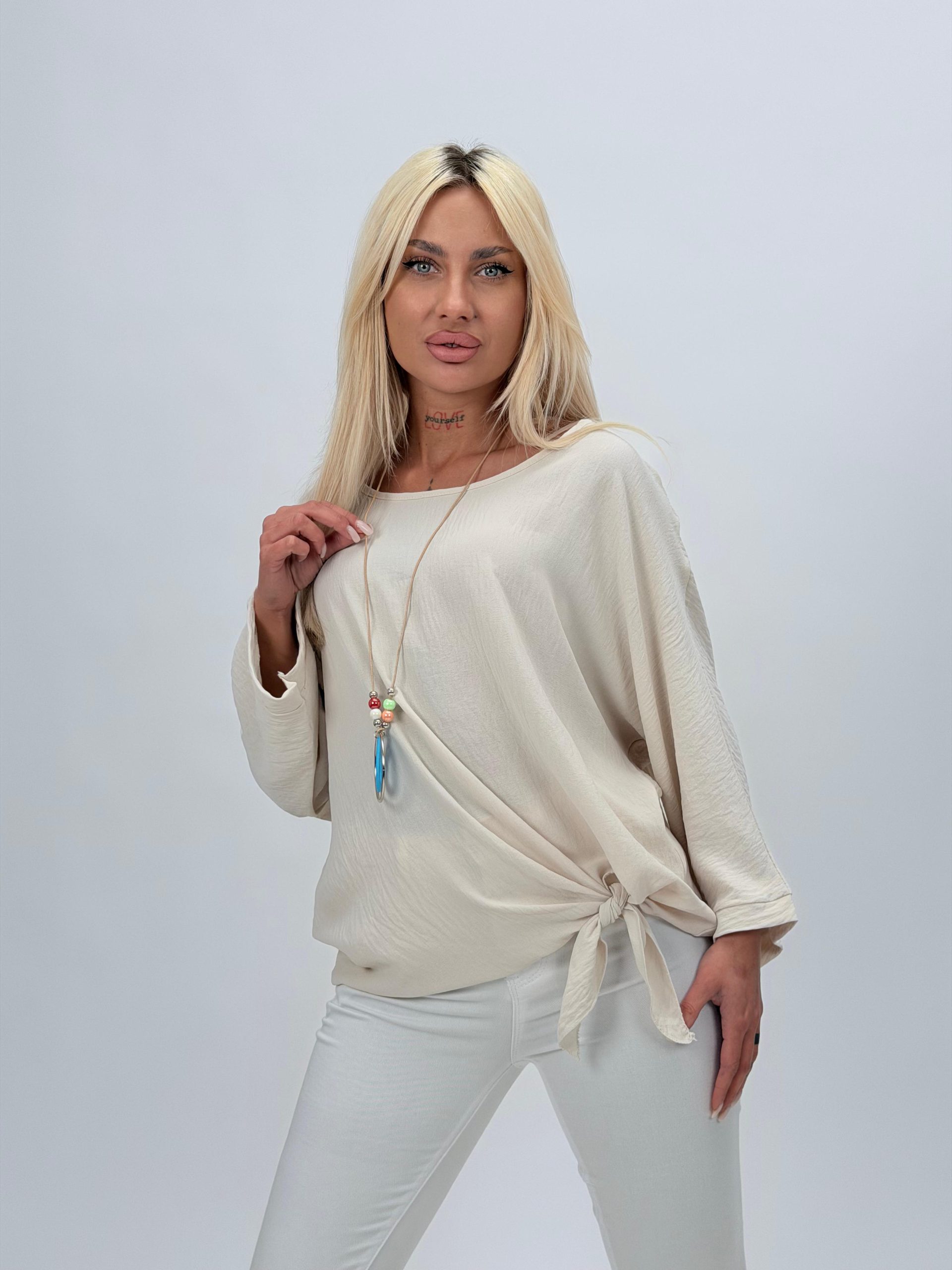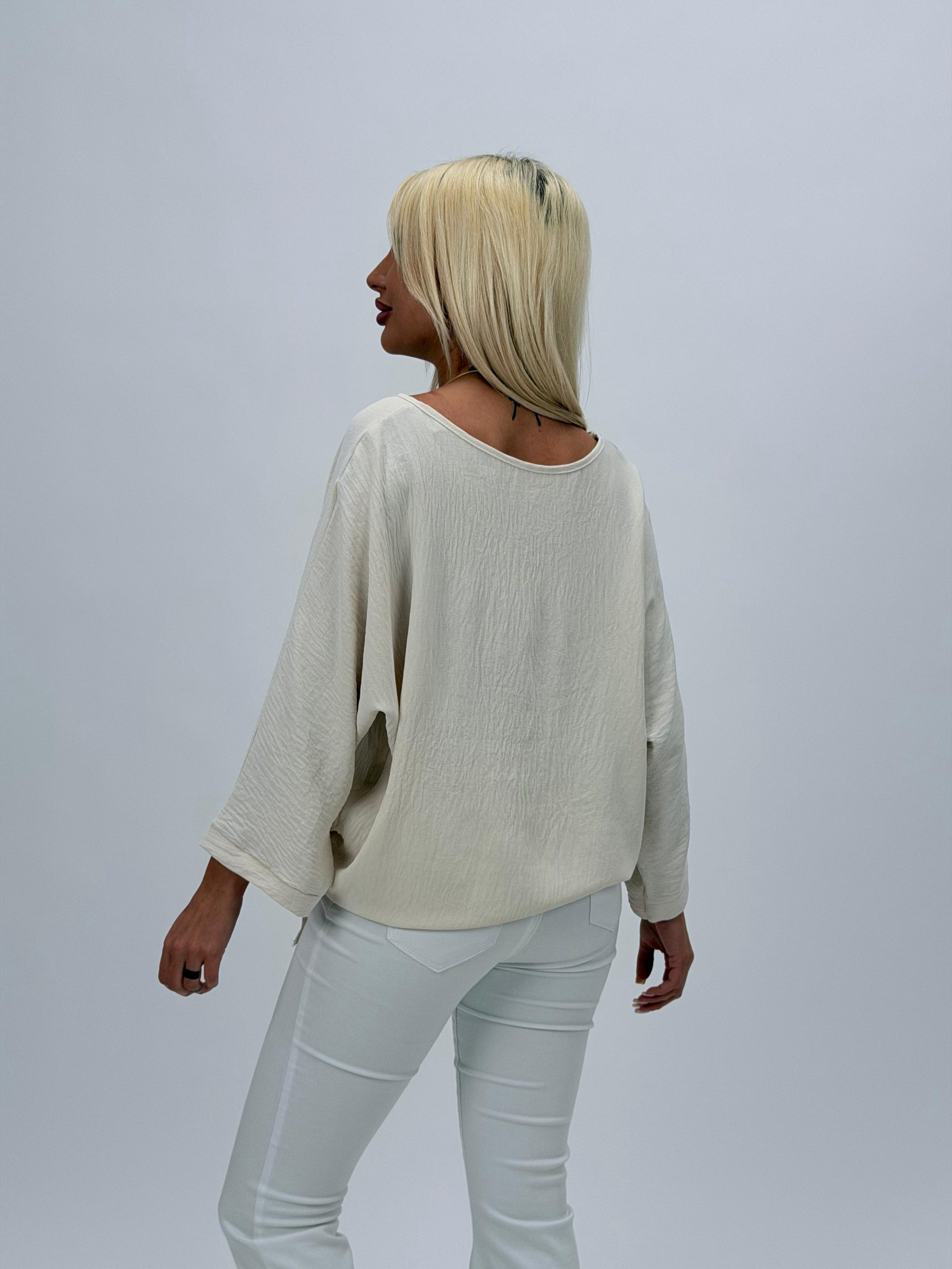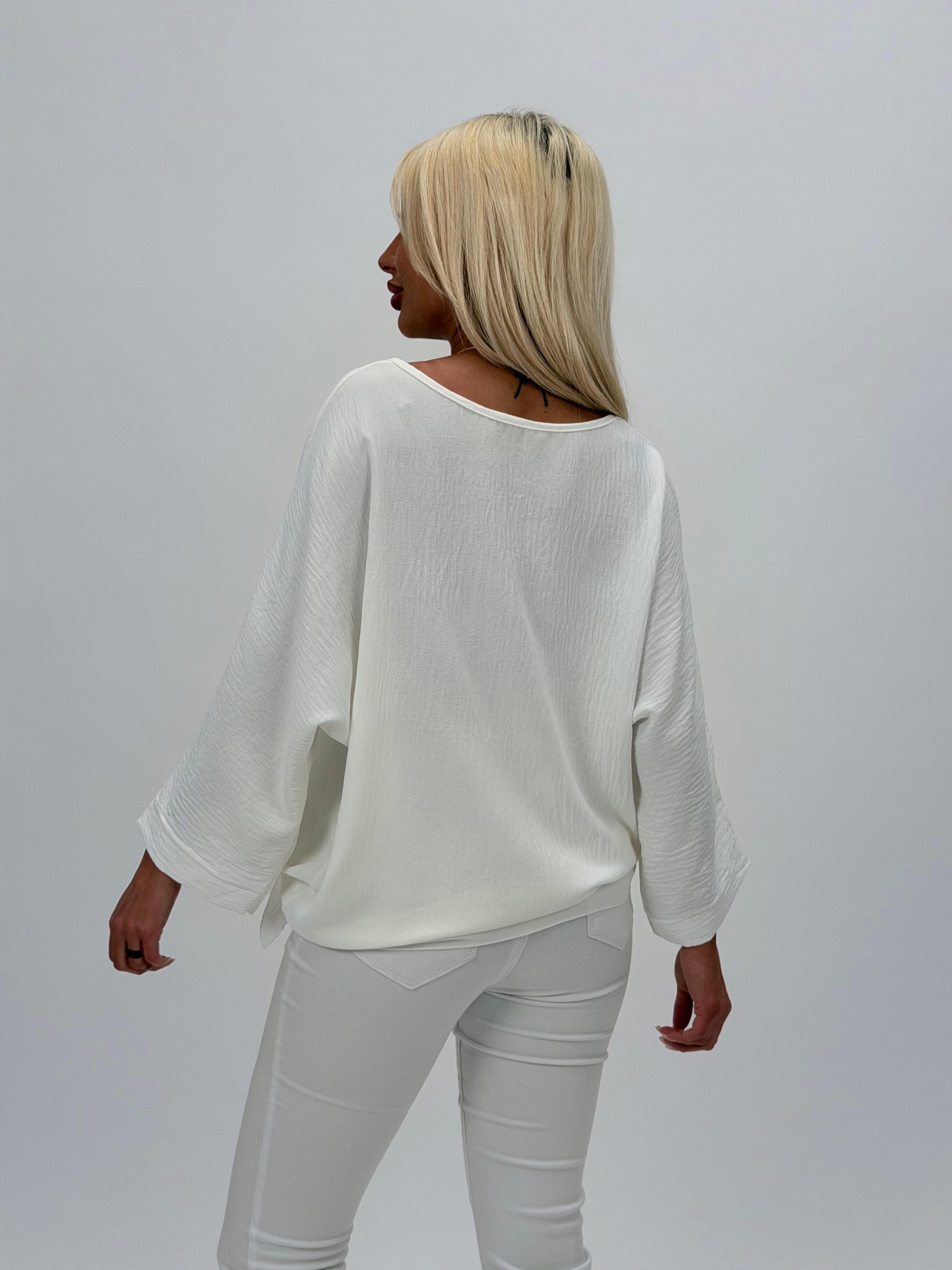Bluză raglan din voal cu colier