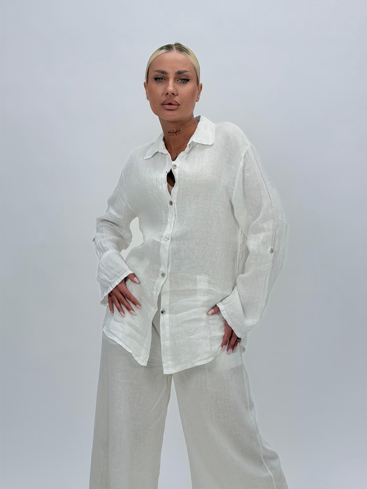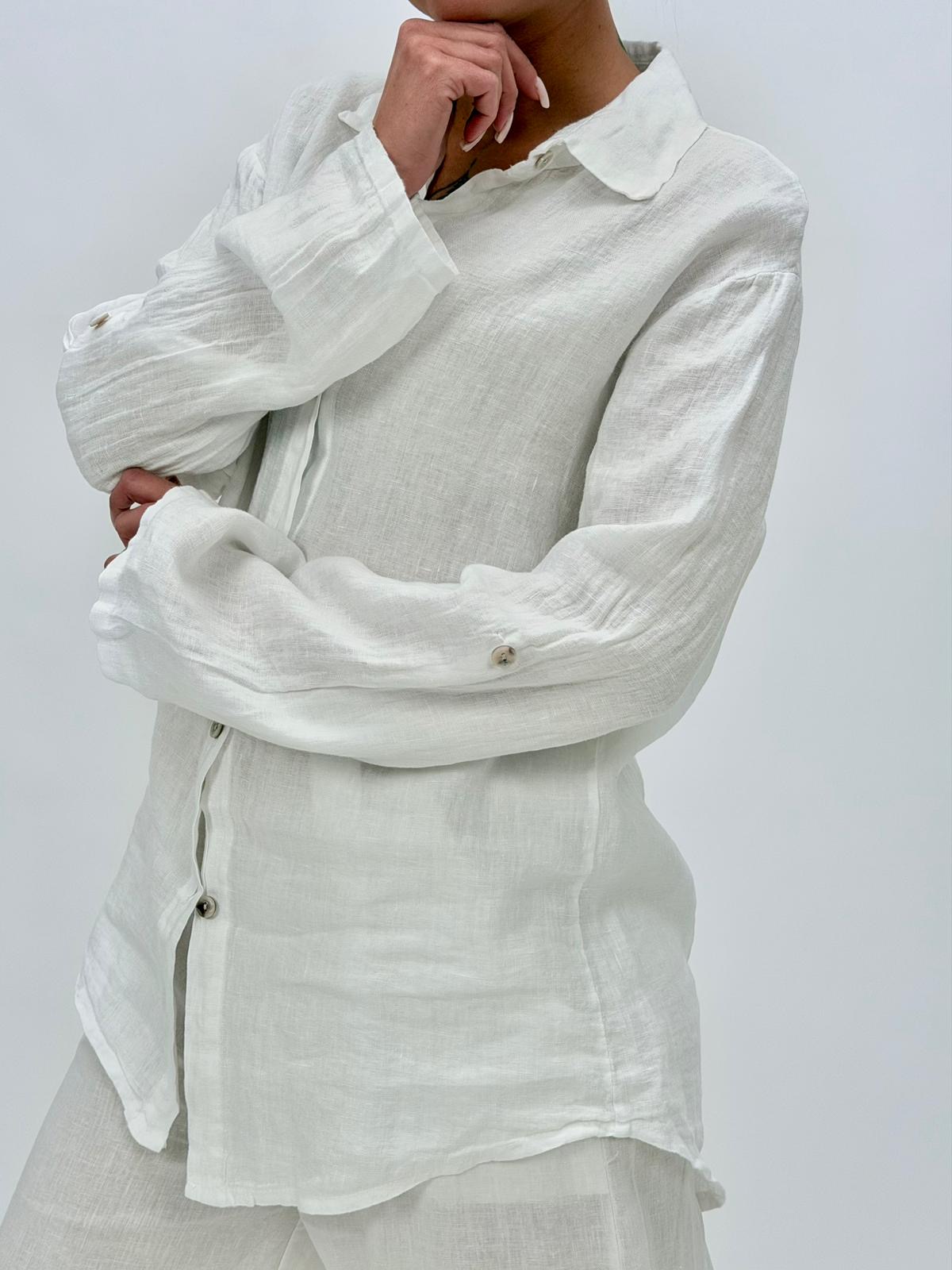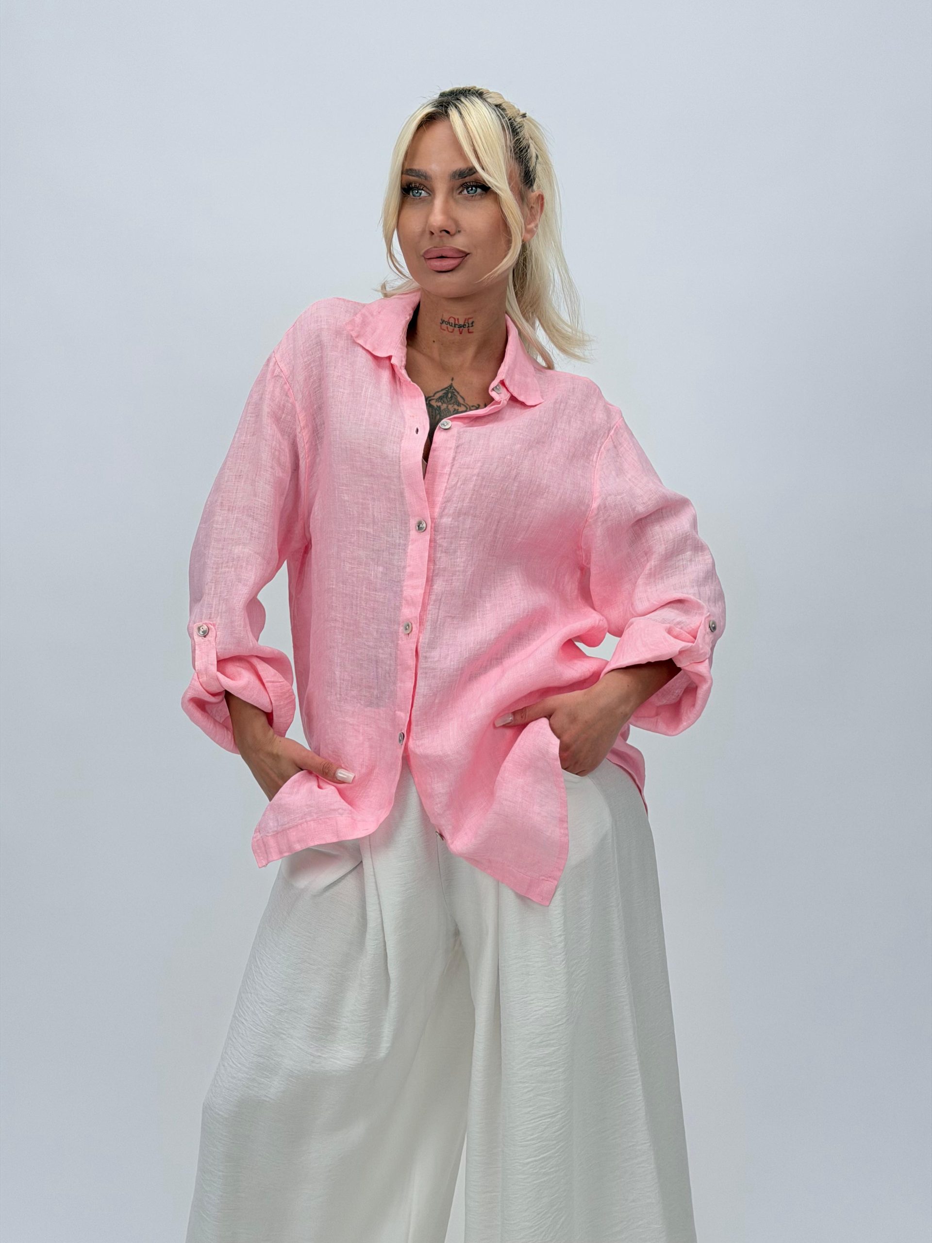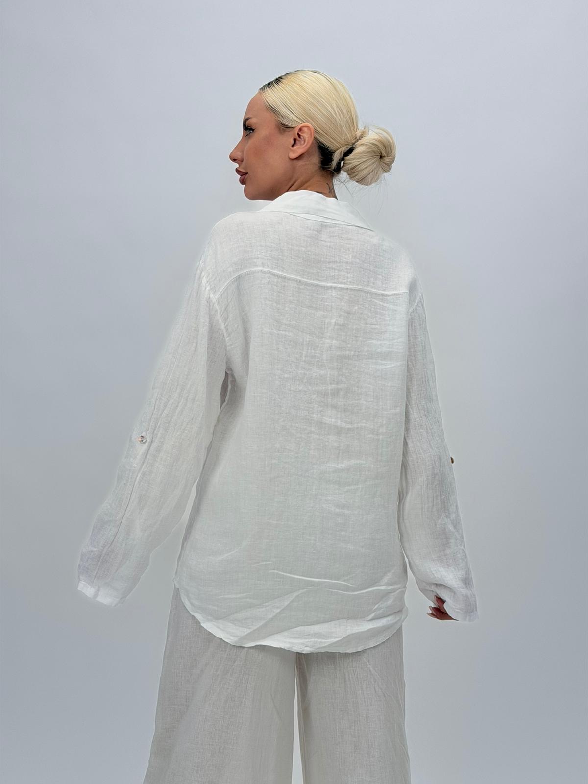 Cu un design feminin și o croială elegantă, cămașa din in se distinge prin simplitatea sa rafinată. Este o opțiune ideală pentru o zi de lucru la birou sau pentru o ieșire casual în oraș, oferind un echilibru perfect între stil și confort.
