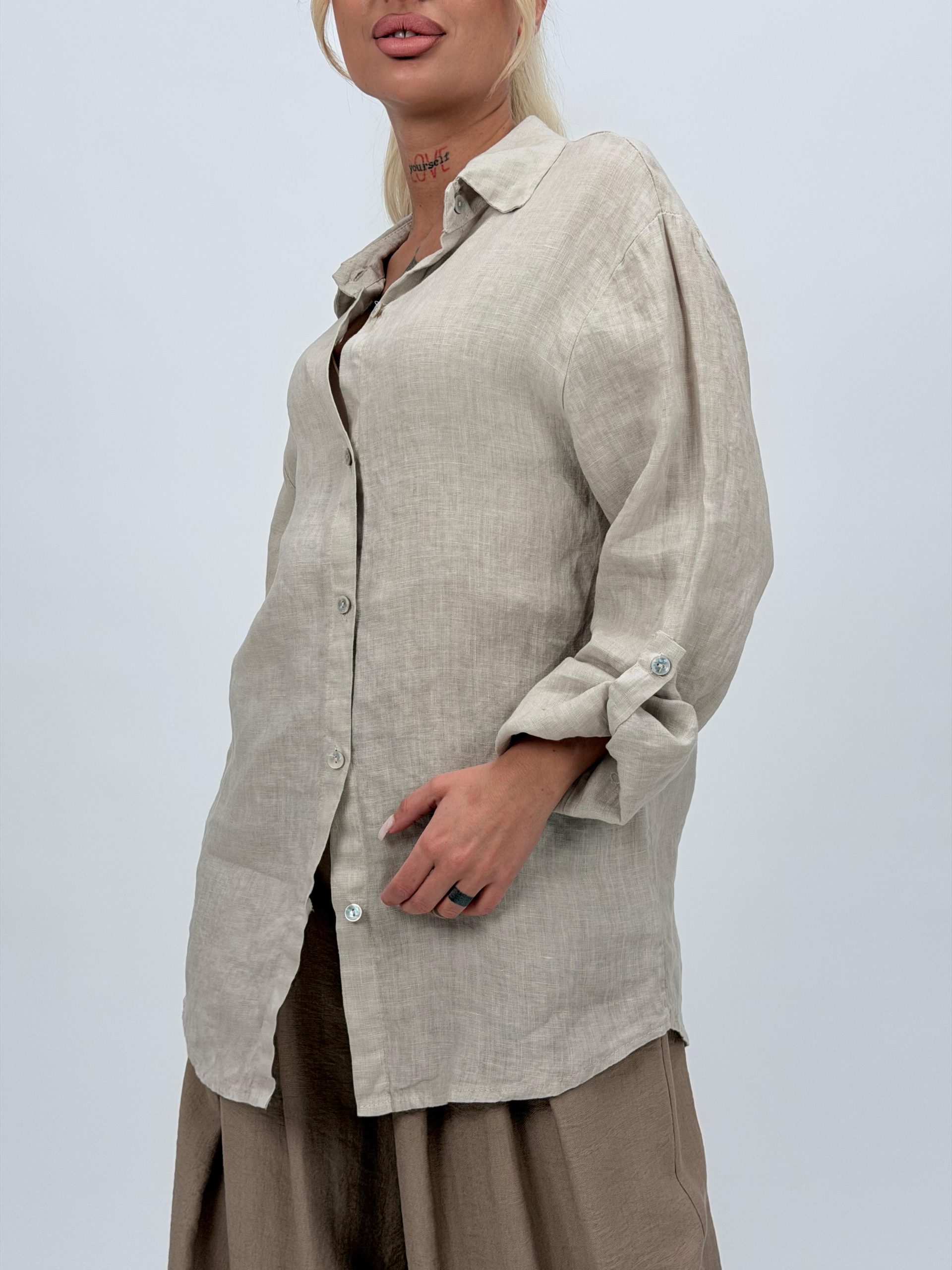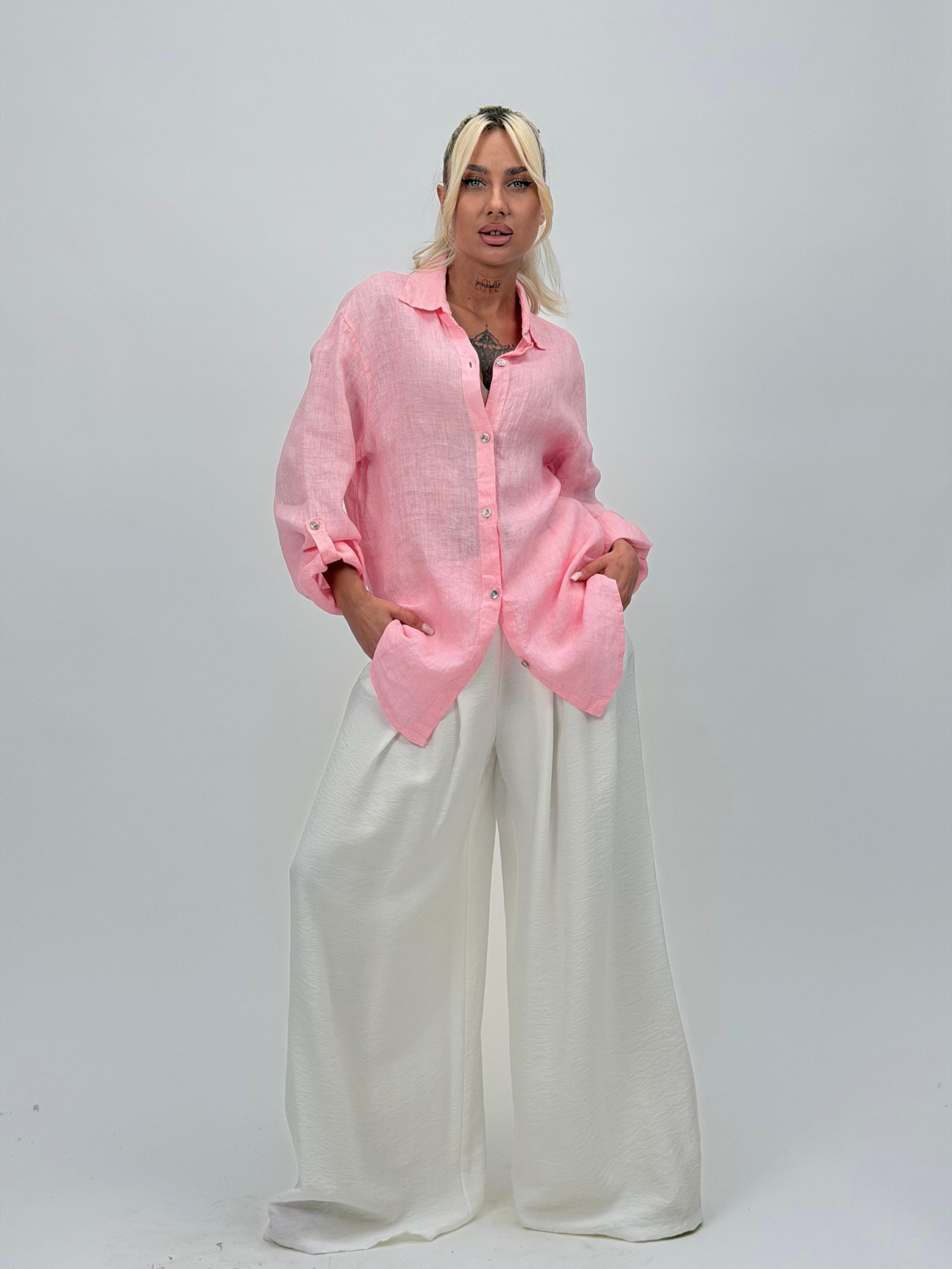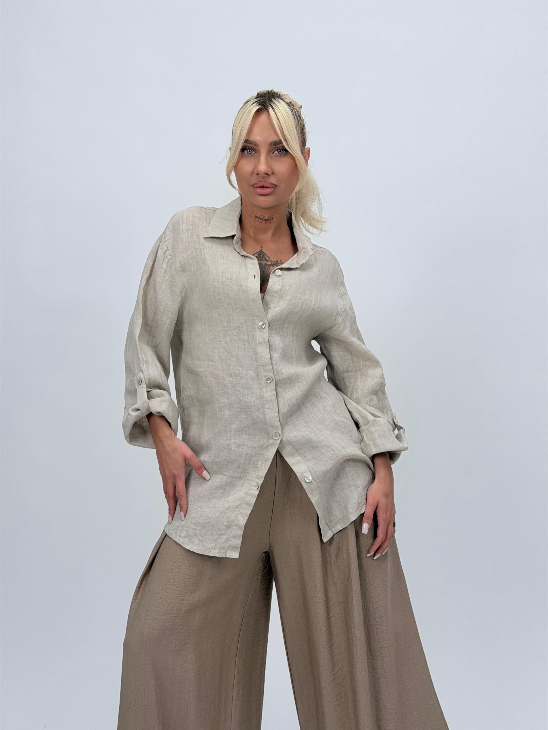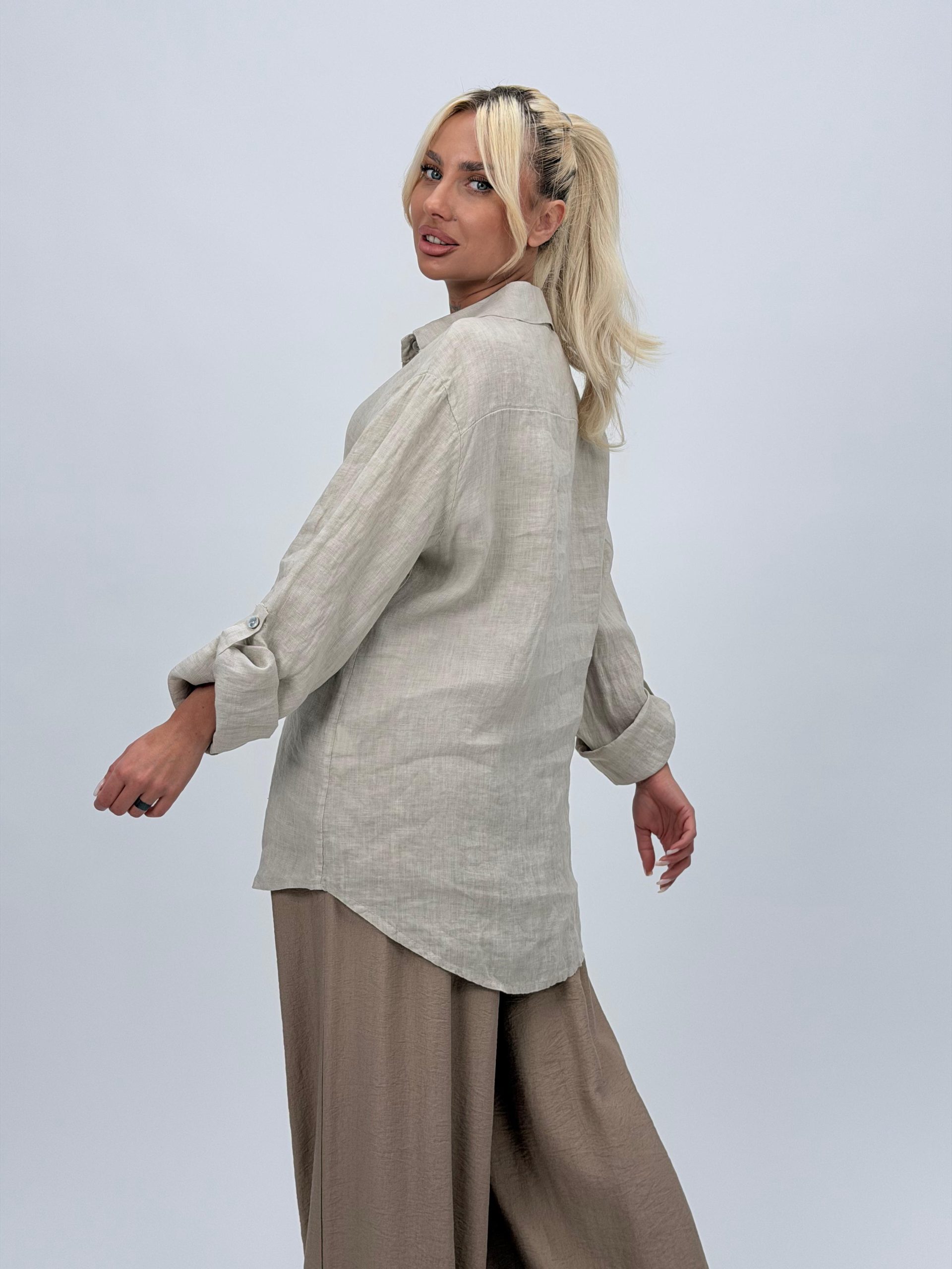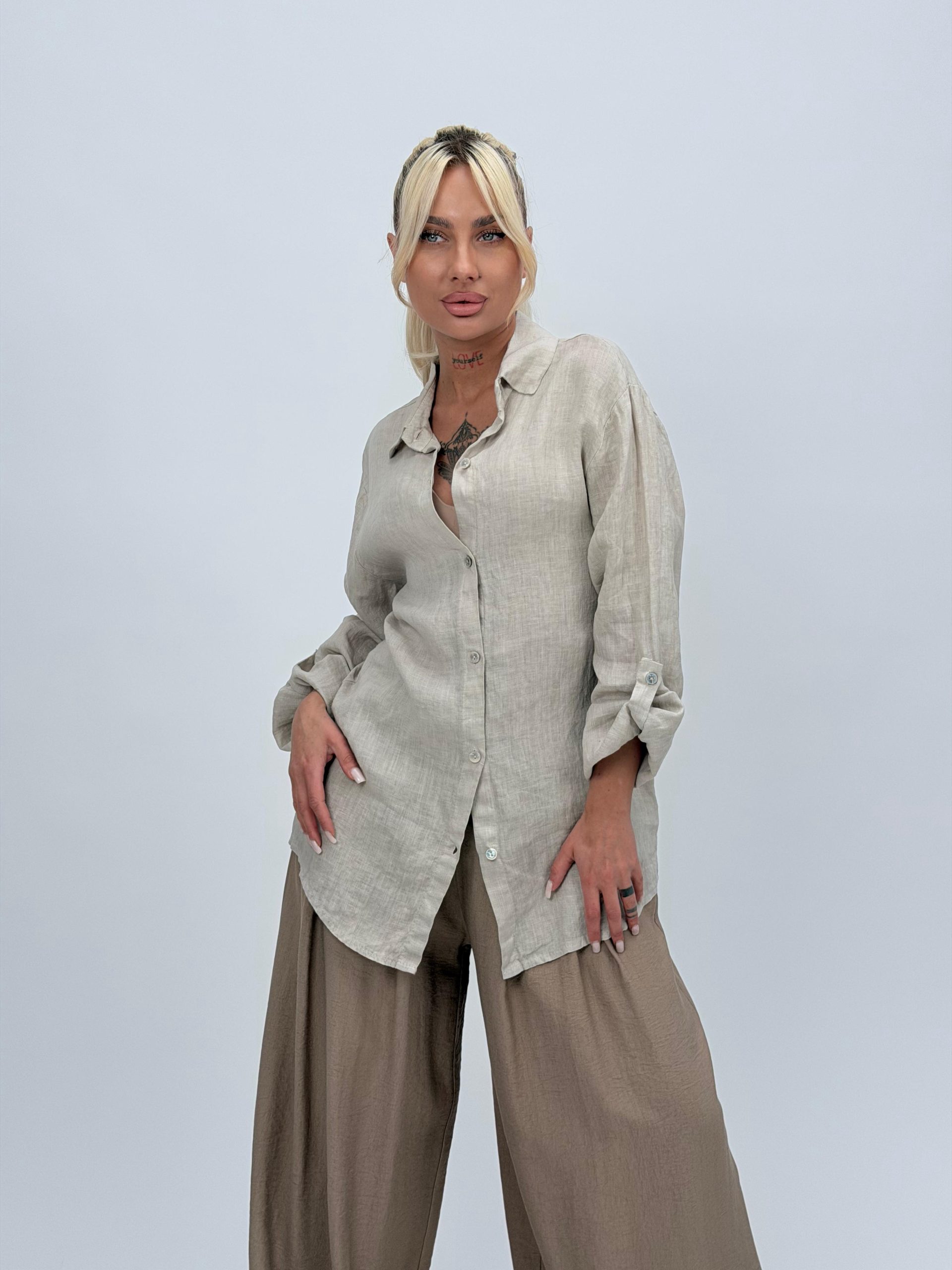 Cu un design feminin și o croială elegantă, cămașa din in se distinge prin simplitatea sa rafinată. Este o opțiune ideală pentru o zi de lucru la birou sau pentru o ieșire casual în oraș, oferind un echilibru perfect între stil și confort.