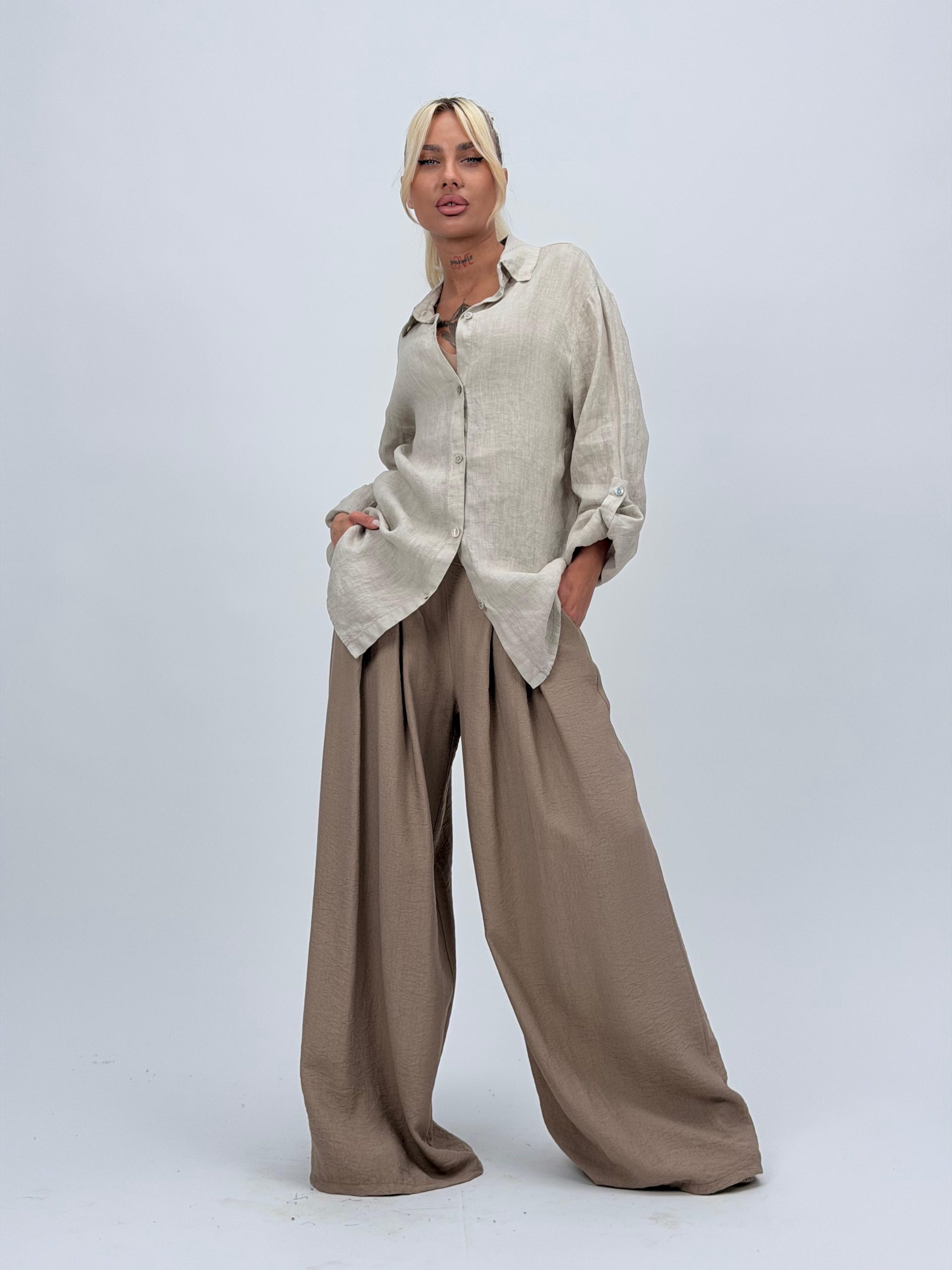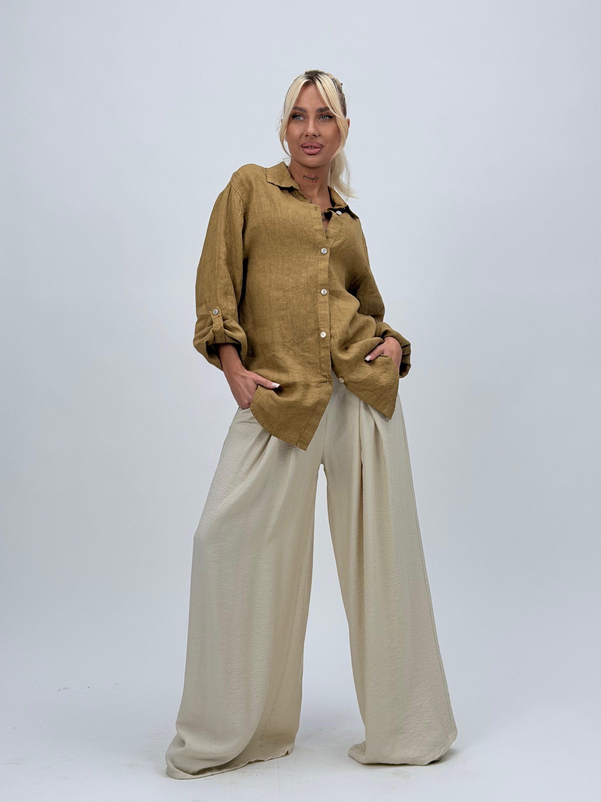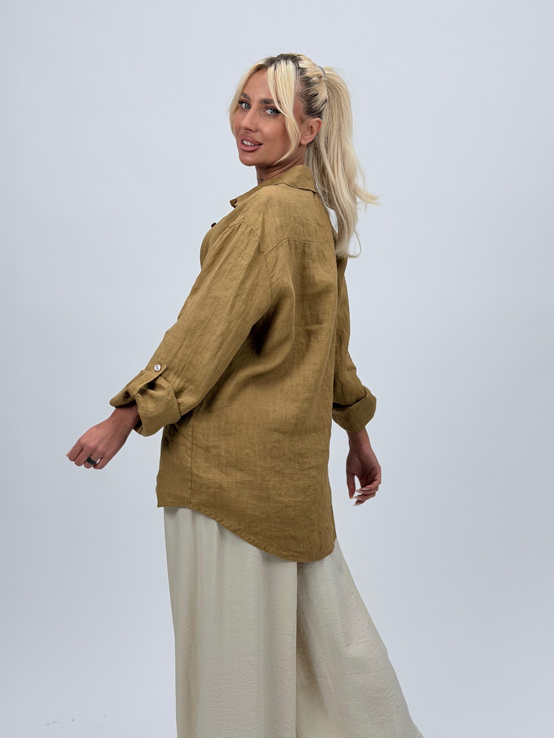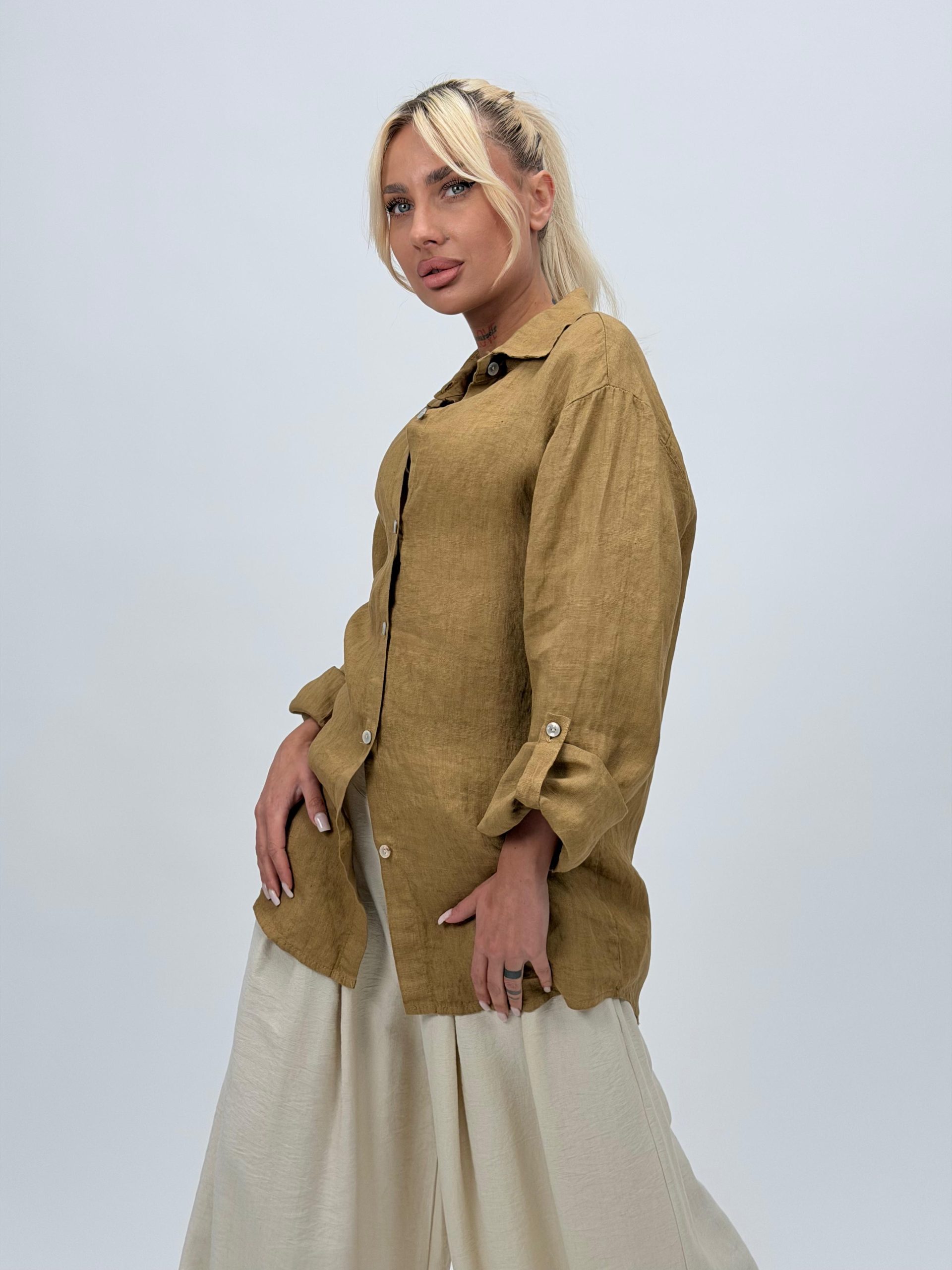 Cu un design feminin și o croială elegantă, cămașa din in se distinge prin simplitatea sa rafinată. Este o opțiune ideală pentru o zi de lucru la birou sau pentru o ieșire casual în oraș, oferind un echilibru perfect între stil și confort.