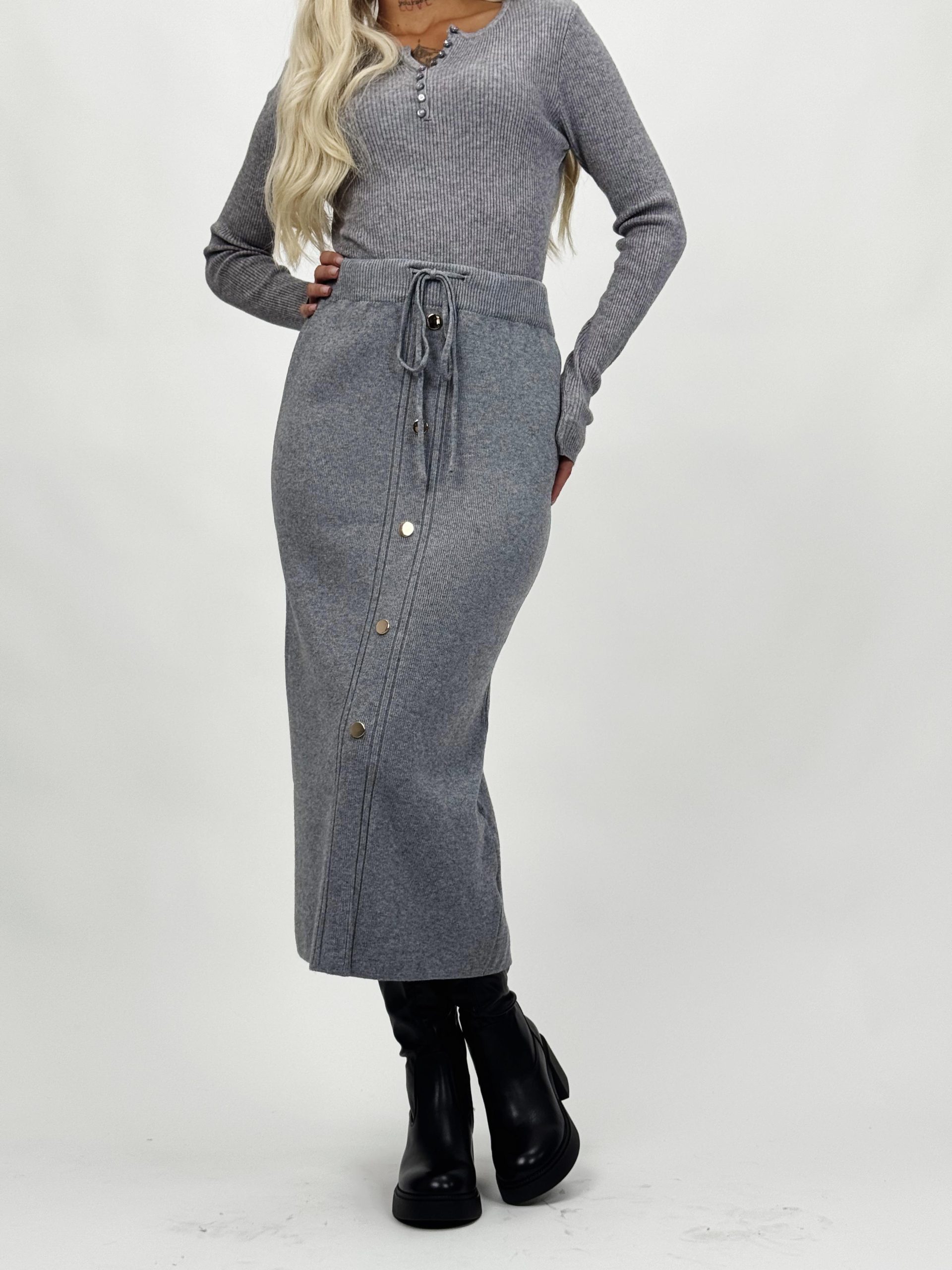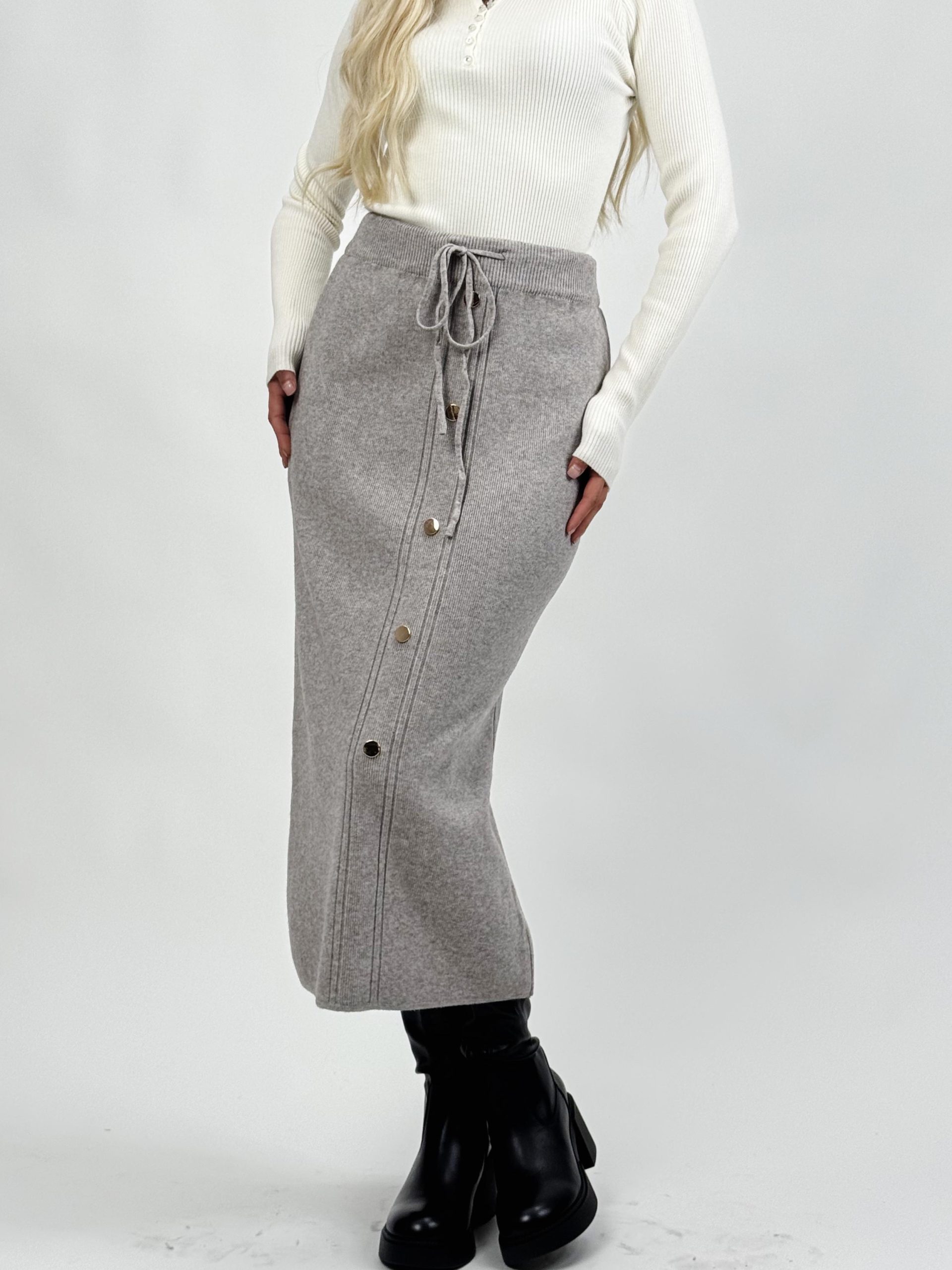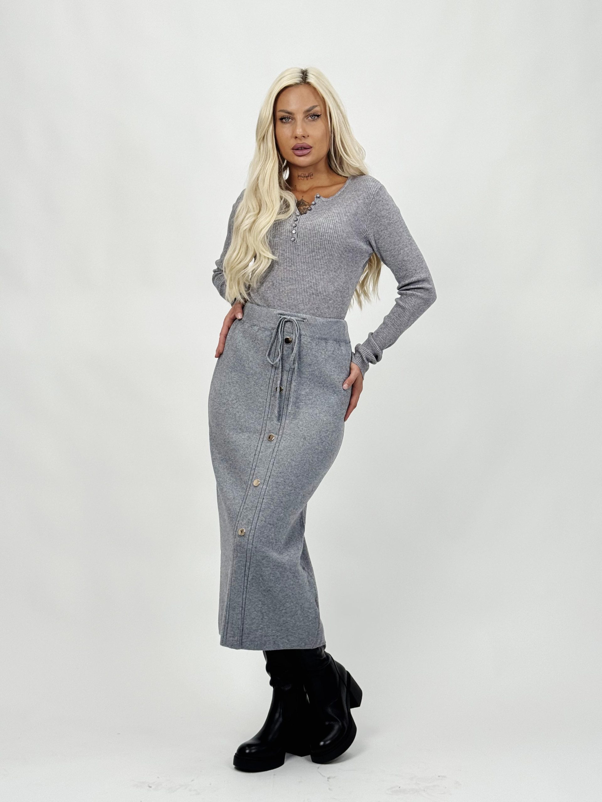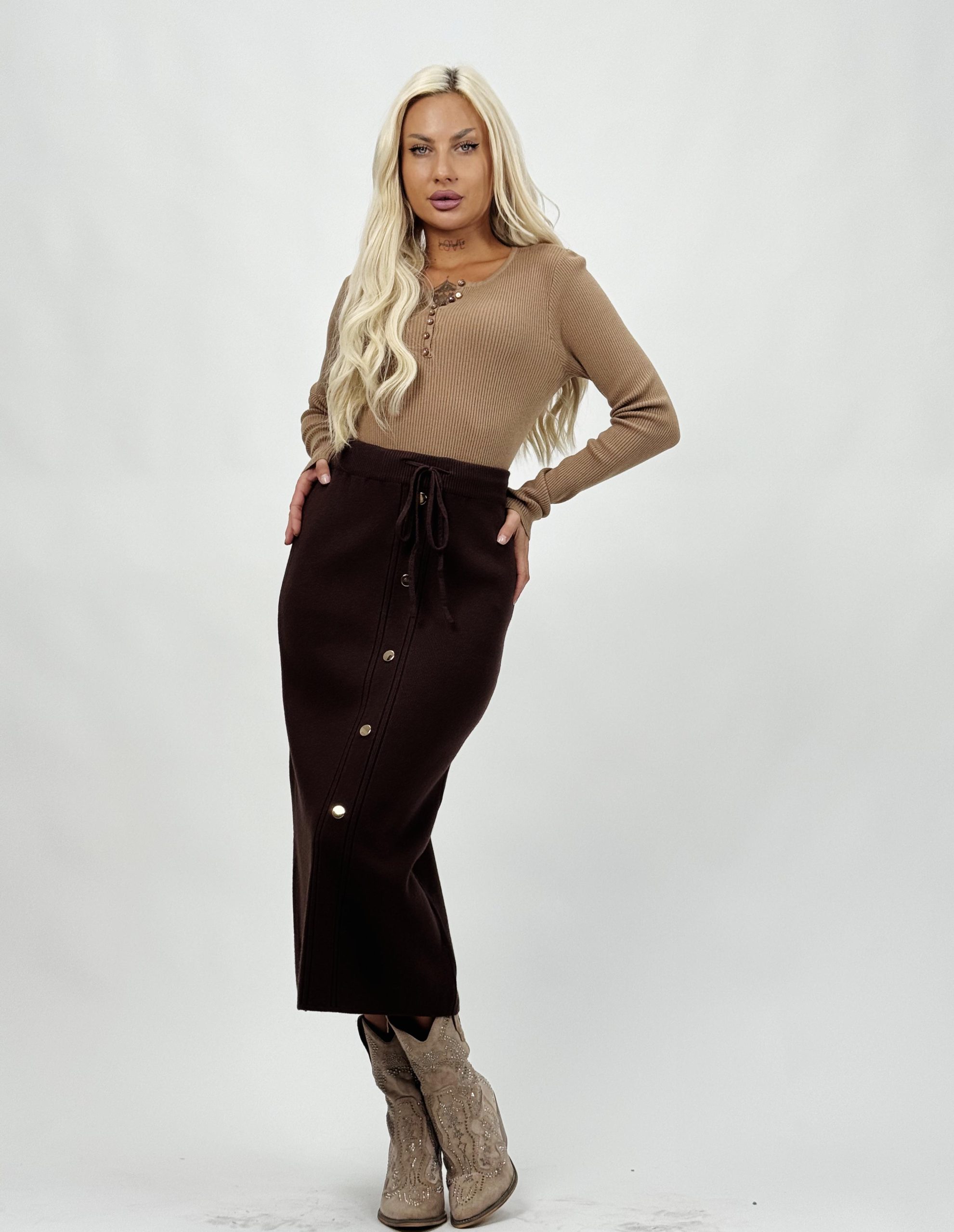 Fustă Lungă din Tricot cu Butoni – Eleganță și Confort