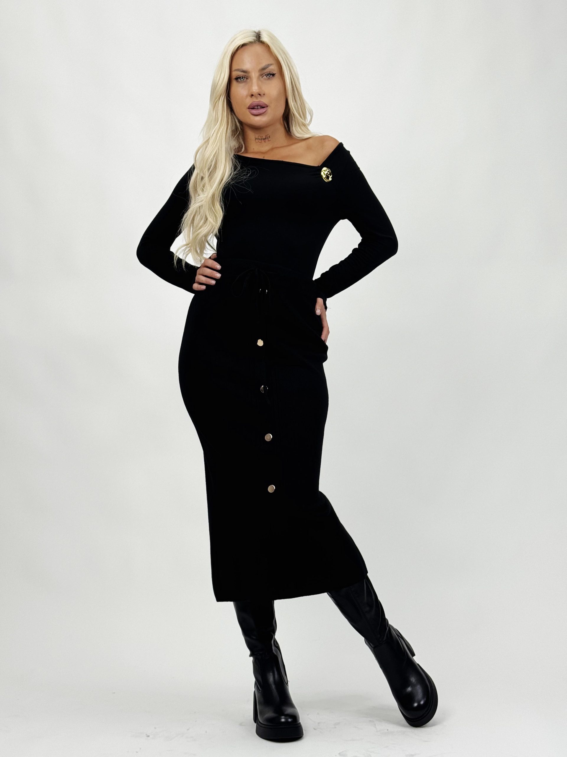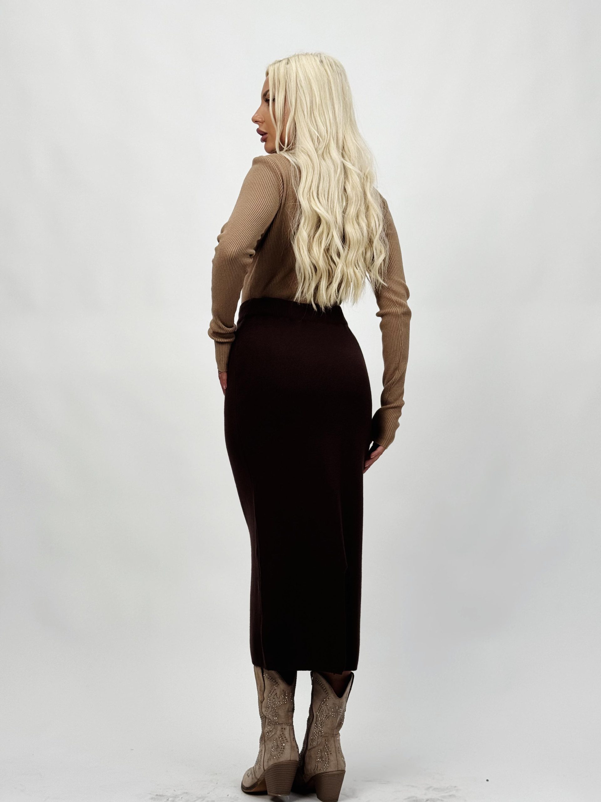 Fustă Lungă din Tricot cu Butoni – Must-Have în Garderoba Ta