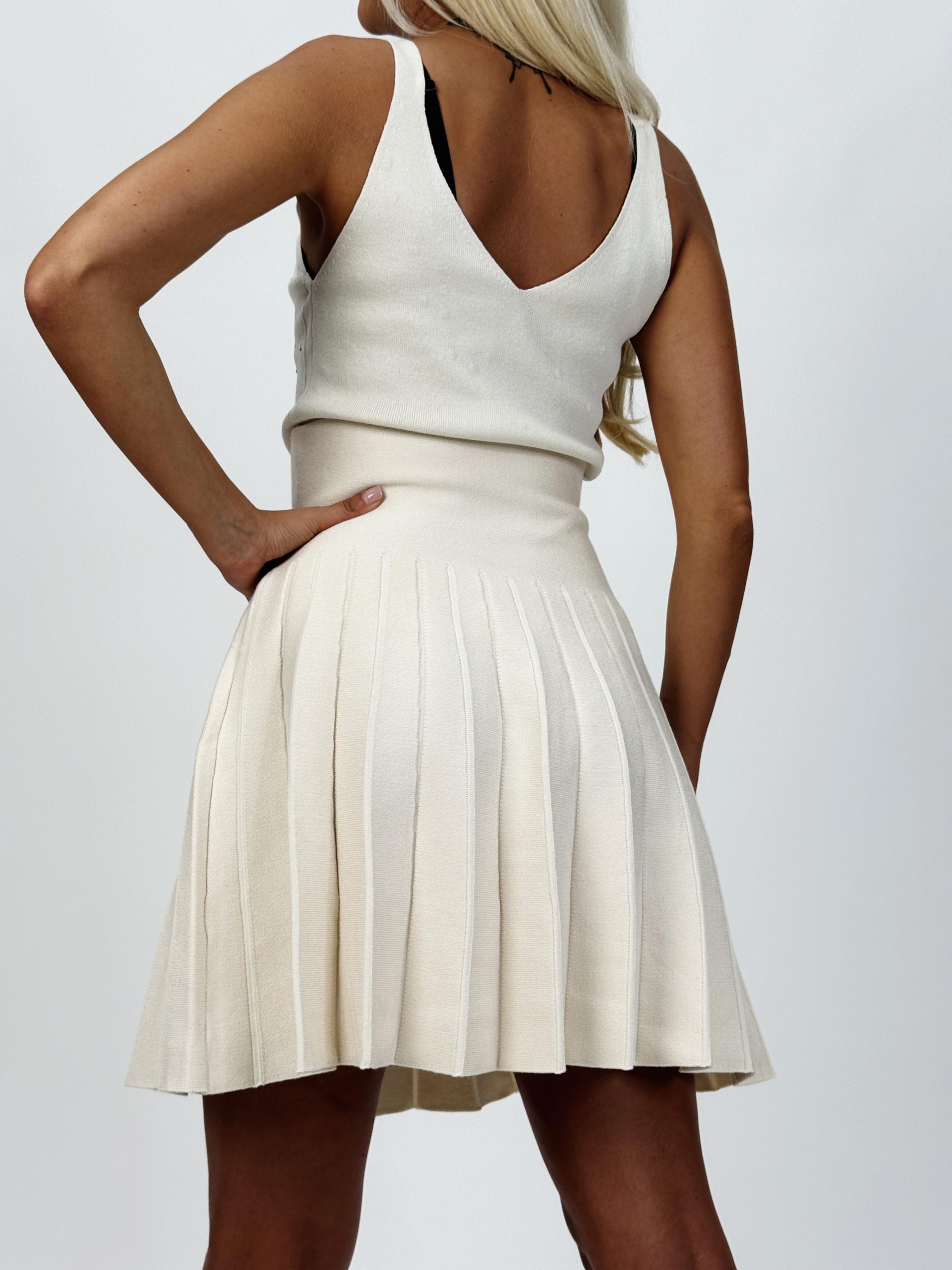 O fustă plisată cu detalii aurii este piesa perfectă pentru garderoba ta, oferind posibilitatea de a crea ținute variate, de la casual la elegante, păstrând mereu un aer rafinat și modern.
