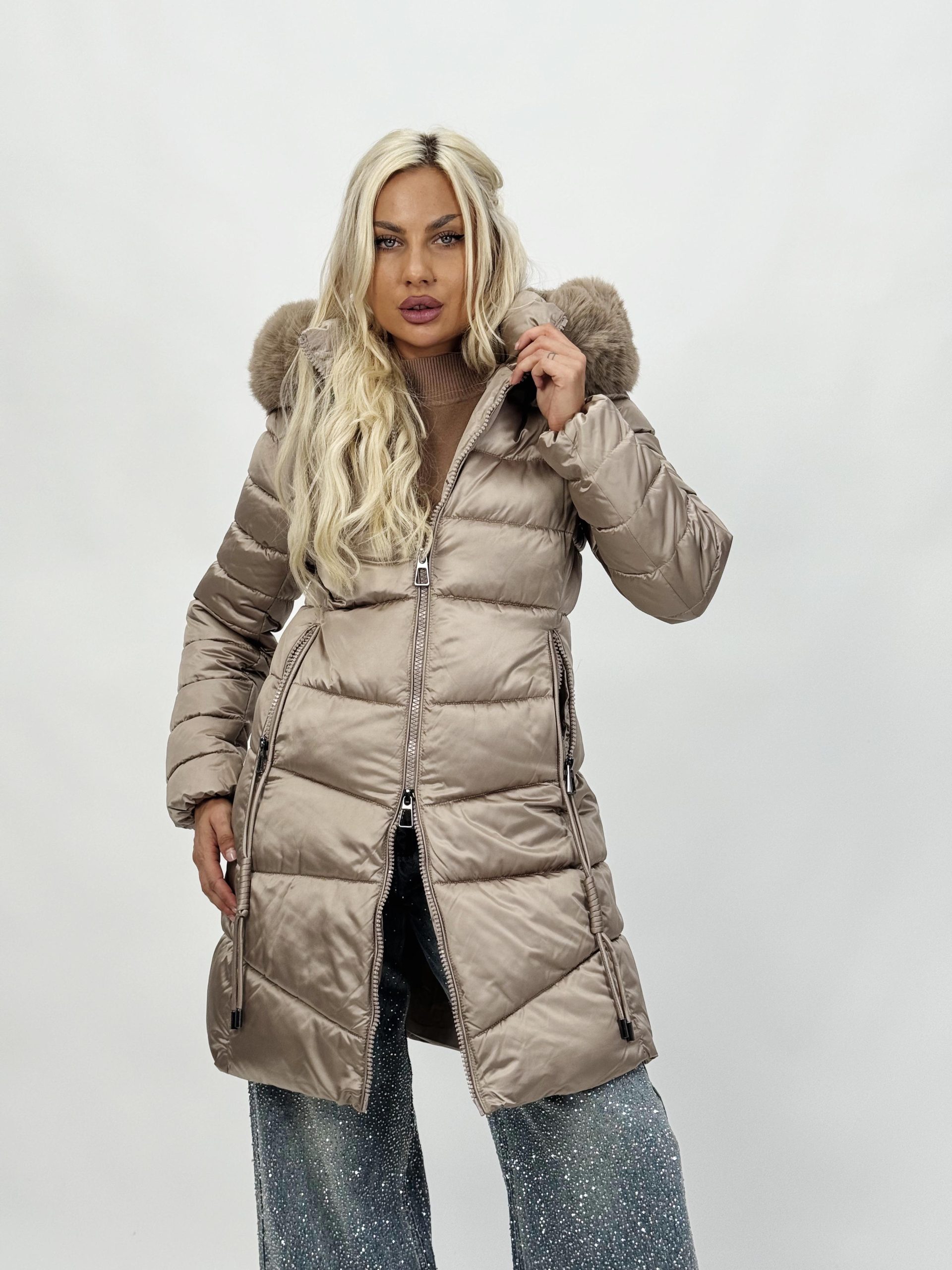 Această jachetă este perfectă dacă îți dorești un echilibru între funcționalitate și eleganță. Lungimea 3/4 oferă protecție sporită, iar blana detaliată adaugă un plus de feminitate și rafinament.