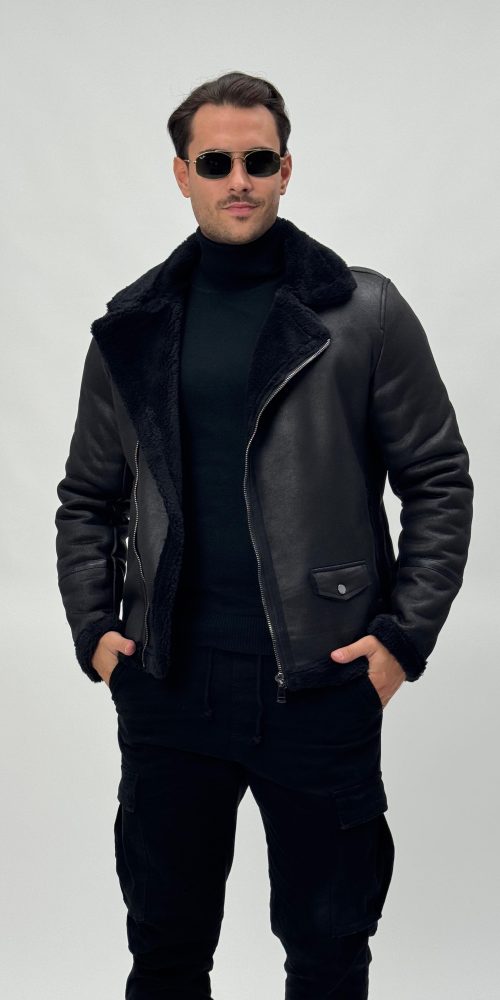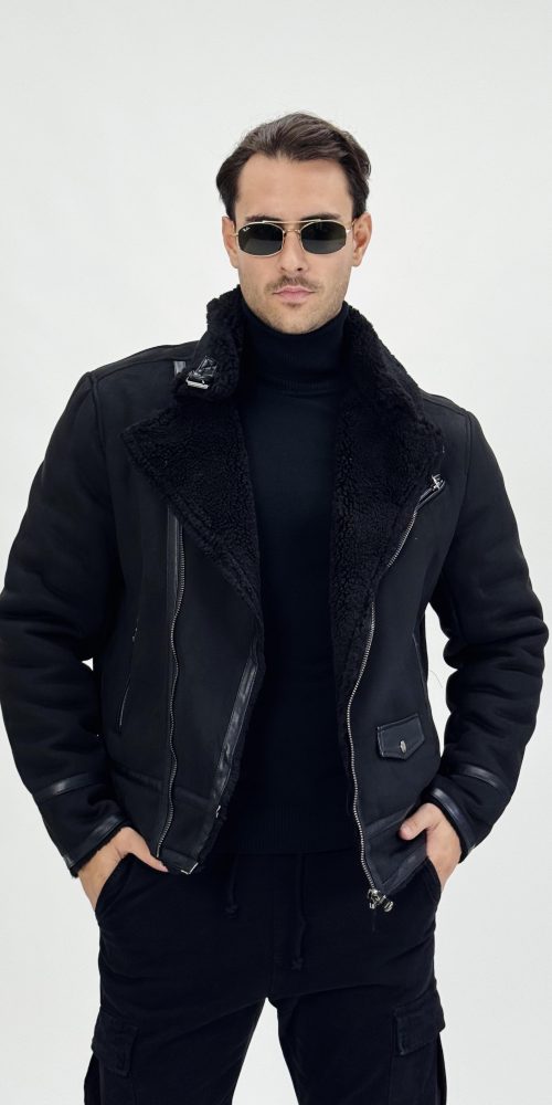Poart-o peste un pulover gros și pantaloni cargo pentru un stil masculin și confortabil.