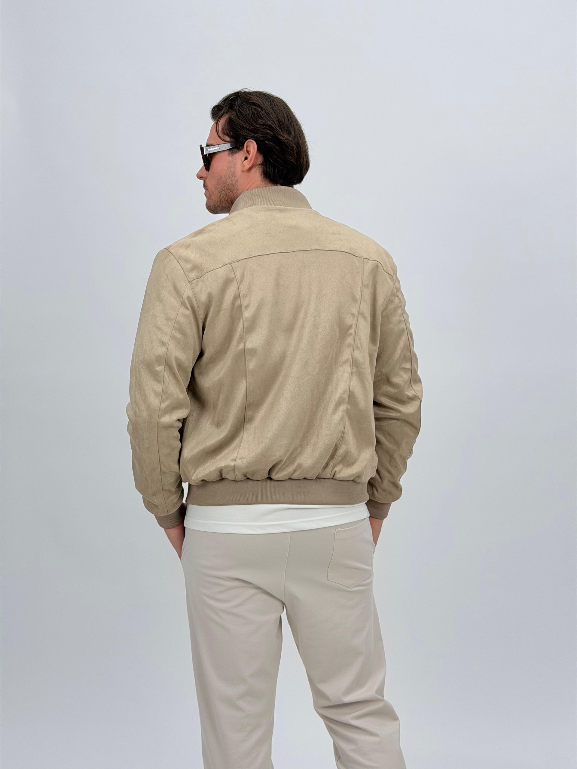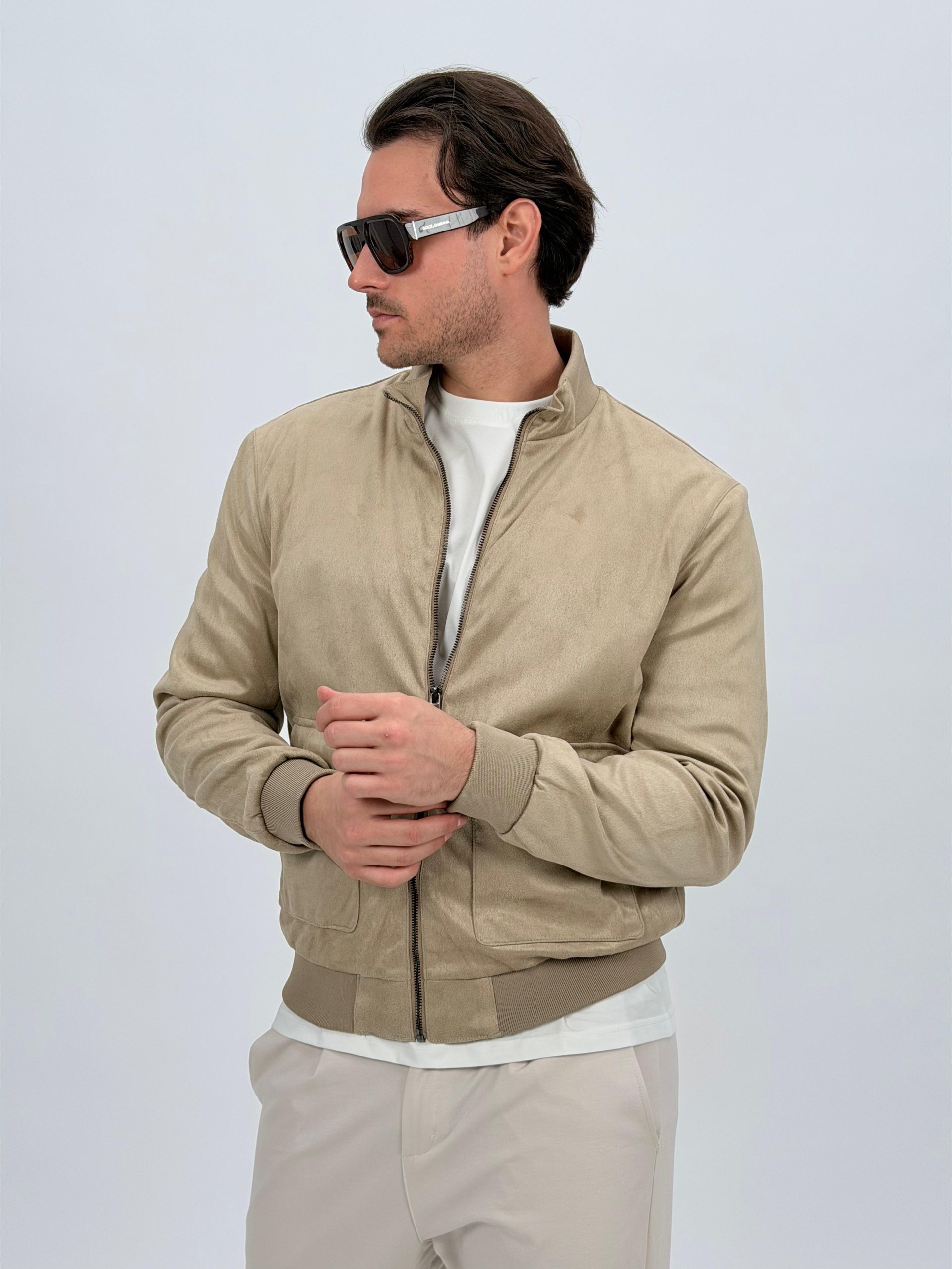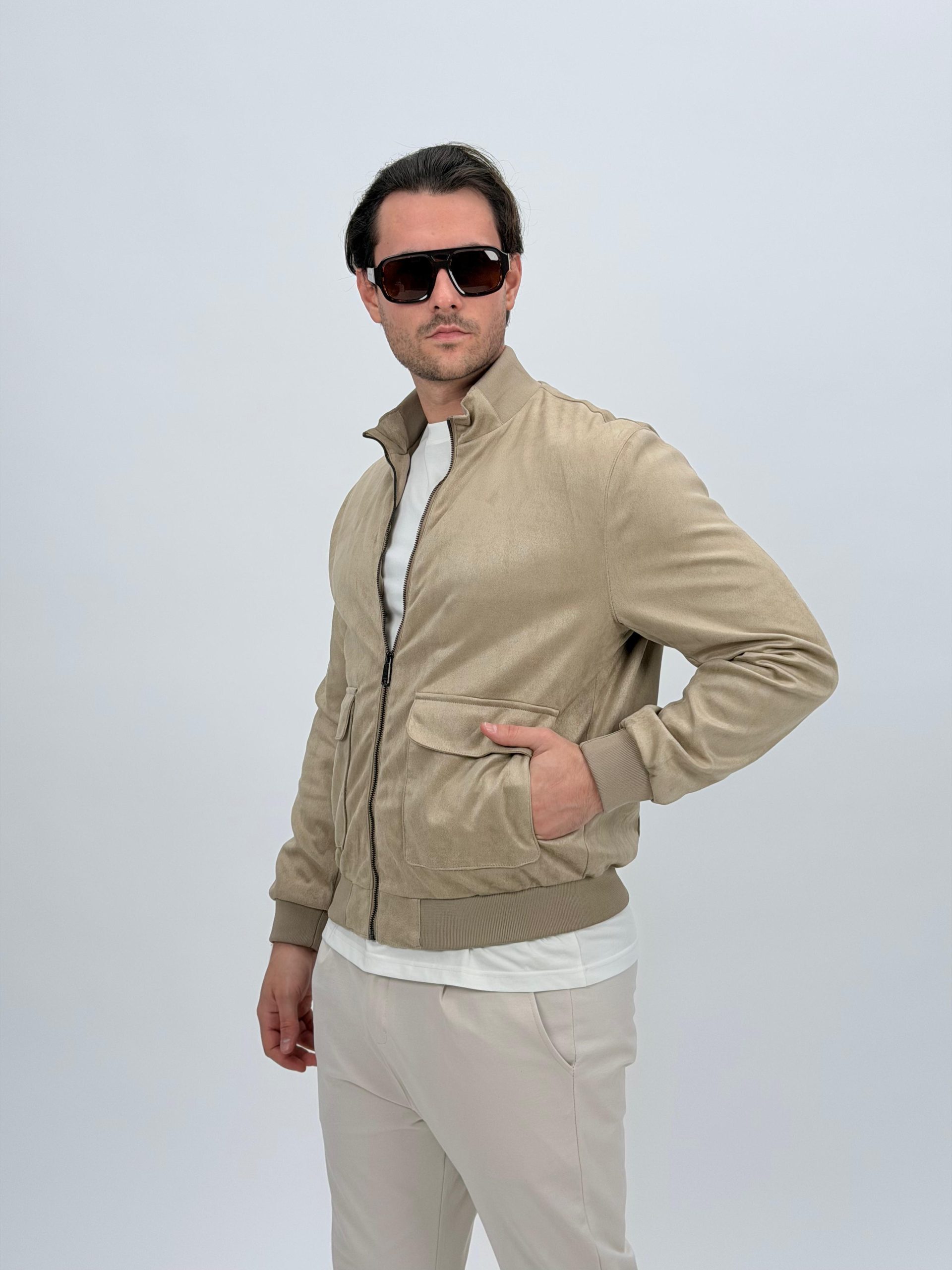 Jachetă bomber cu aspect de piele întoarsă și buzunare vizibile