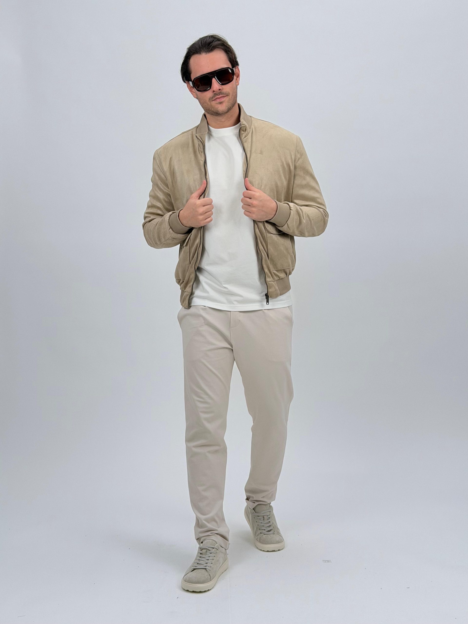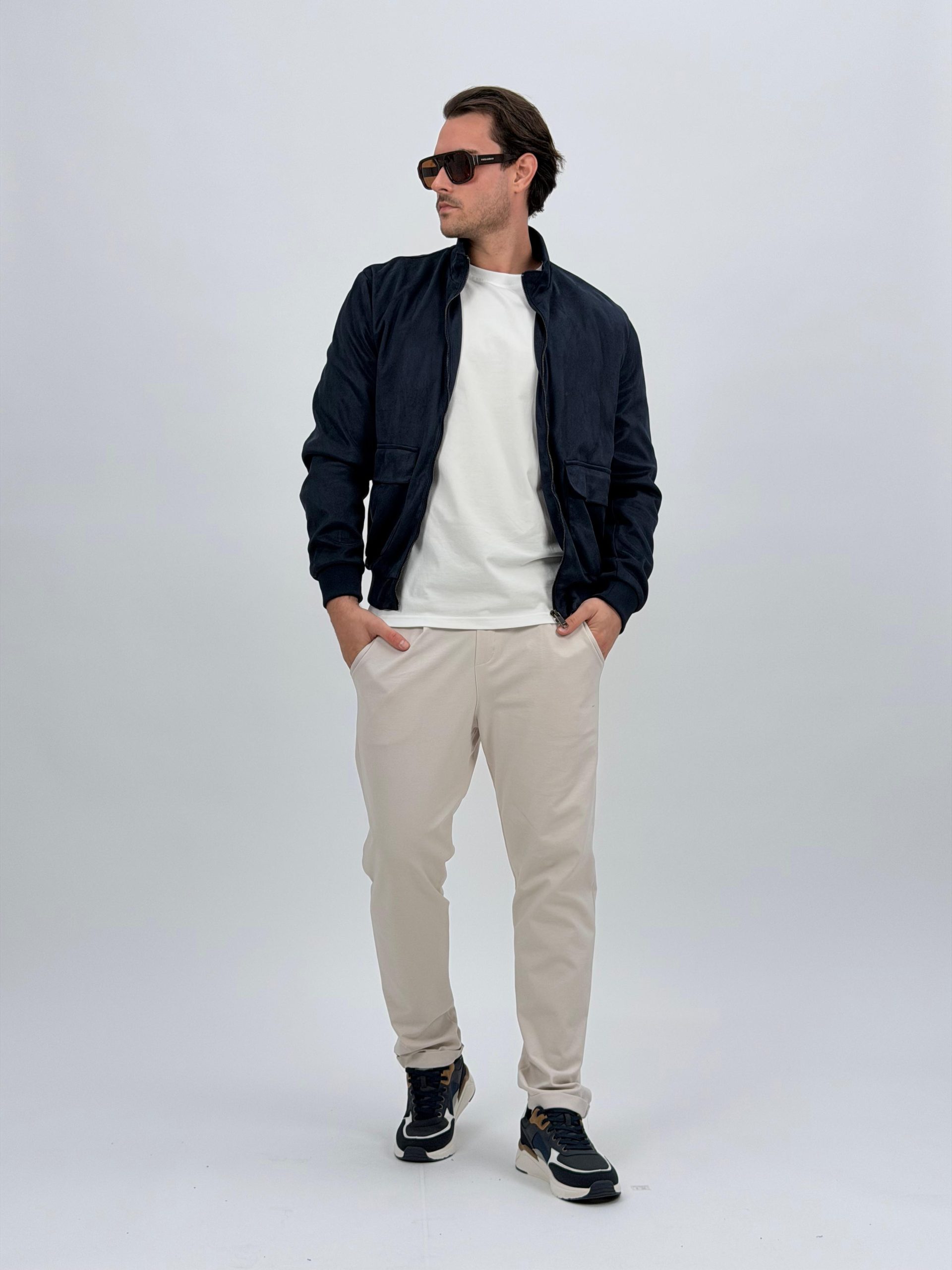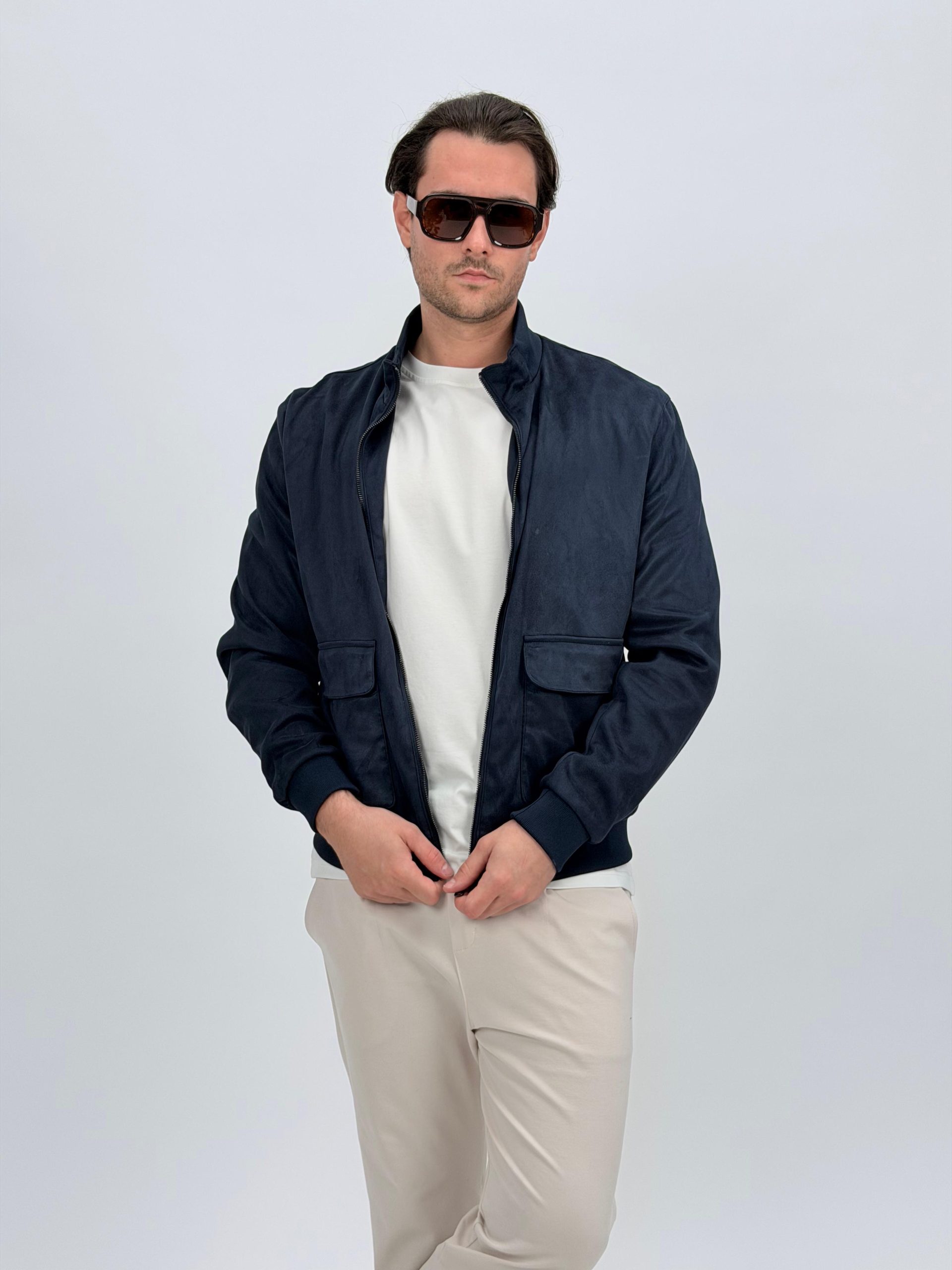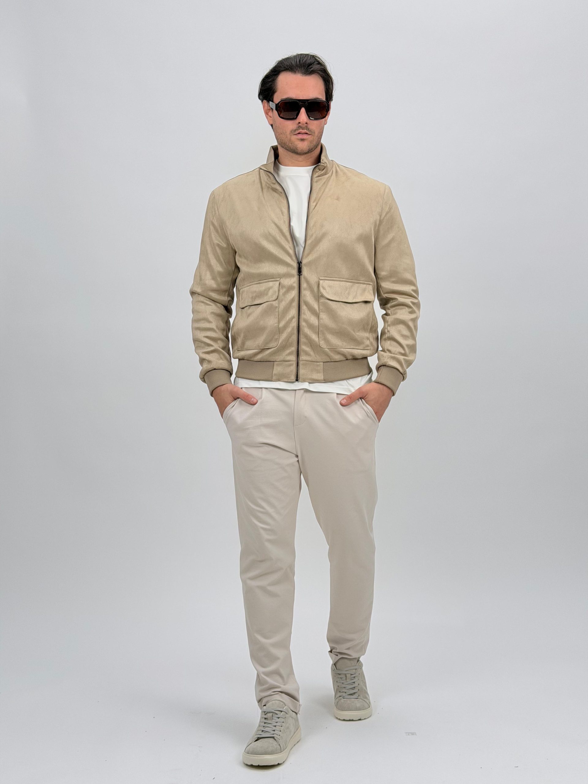 Jachetă bomber cu aspect de piele întoarsă și buzunare vizibile