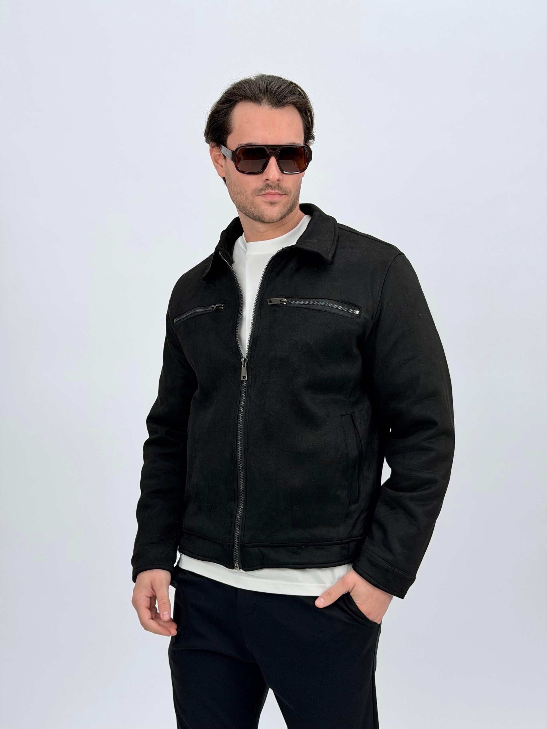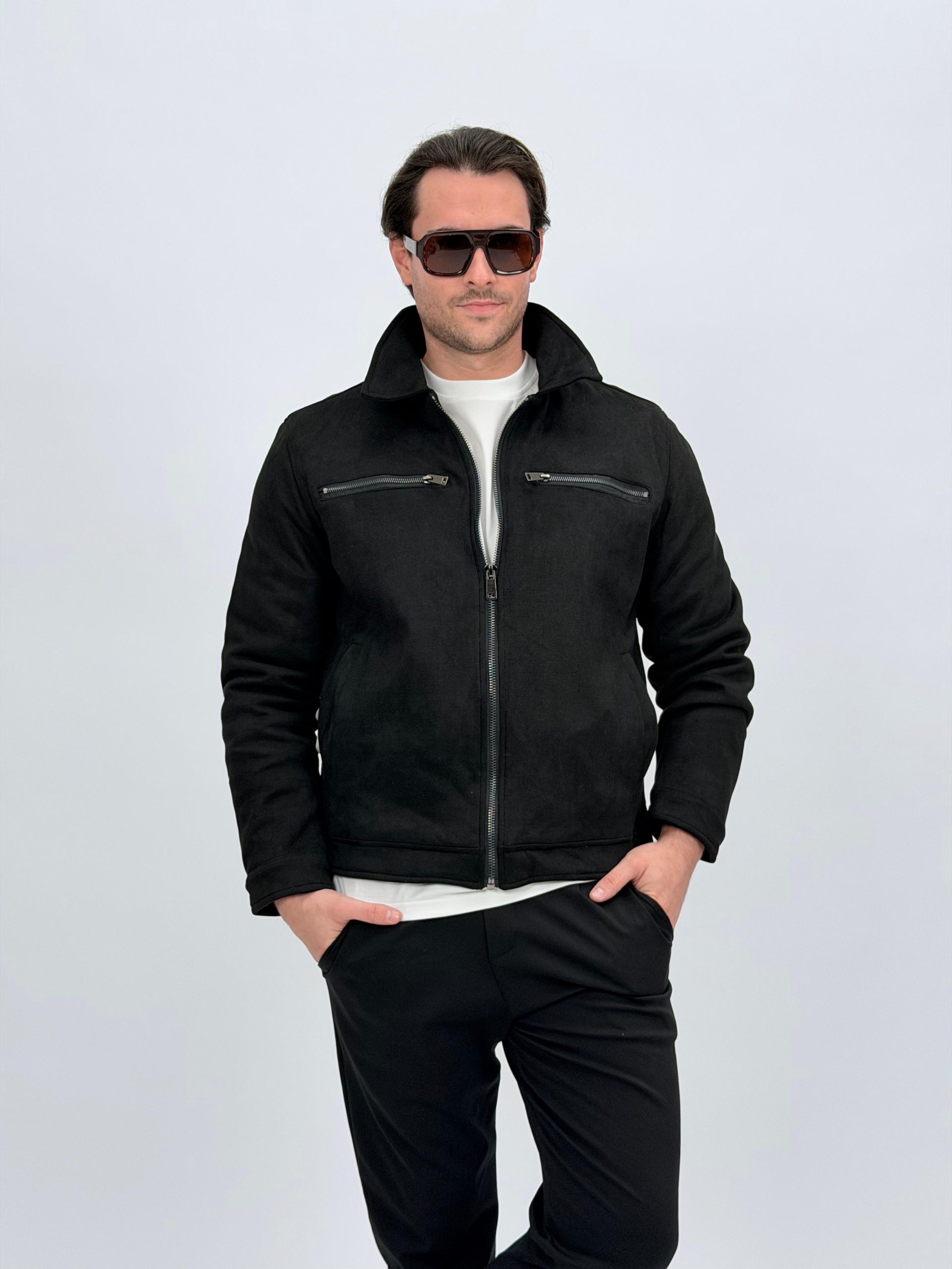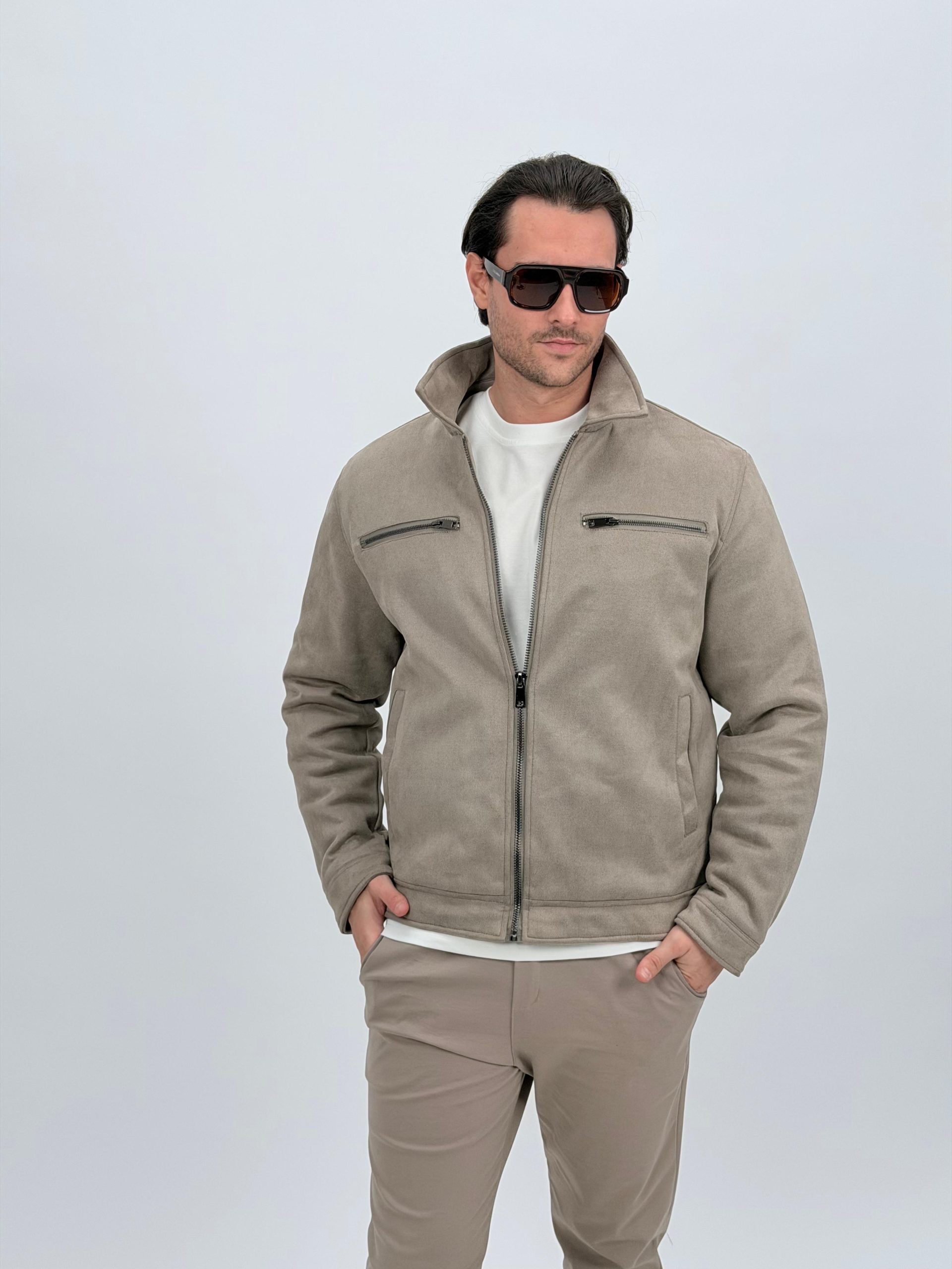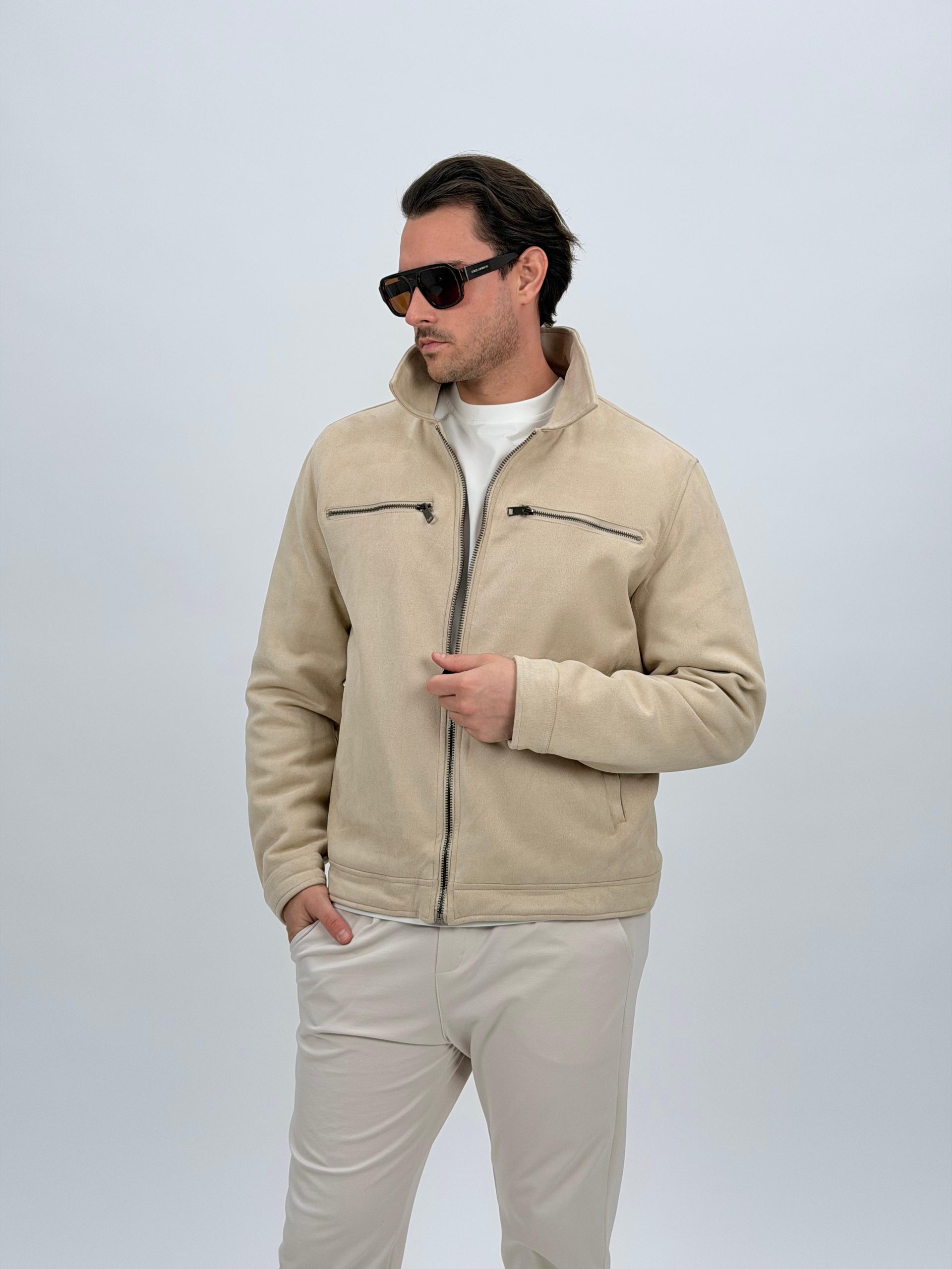 Jachetă bomber cu aspect de piele întoarsă și buzunare vizibile
