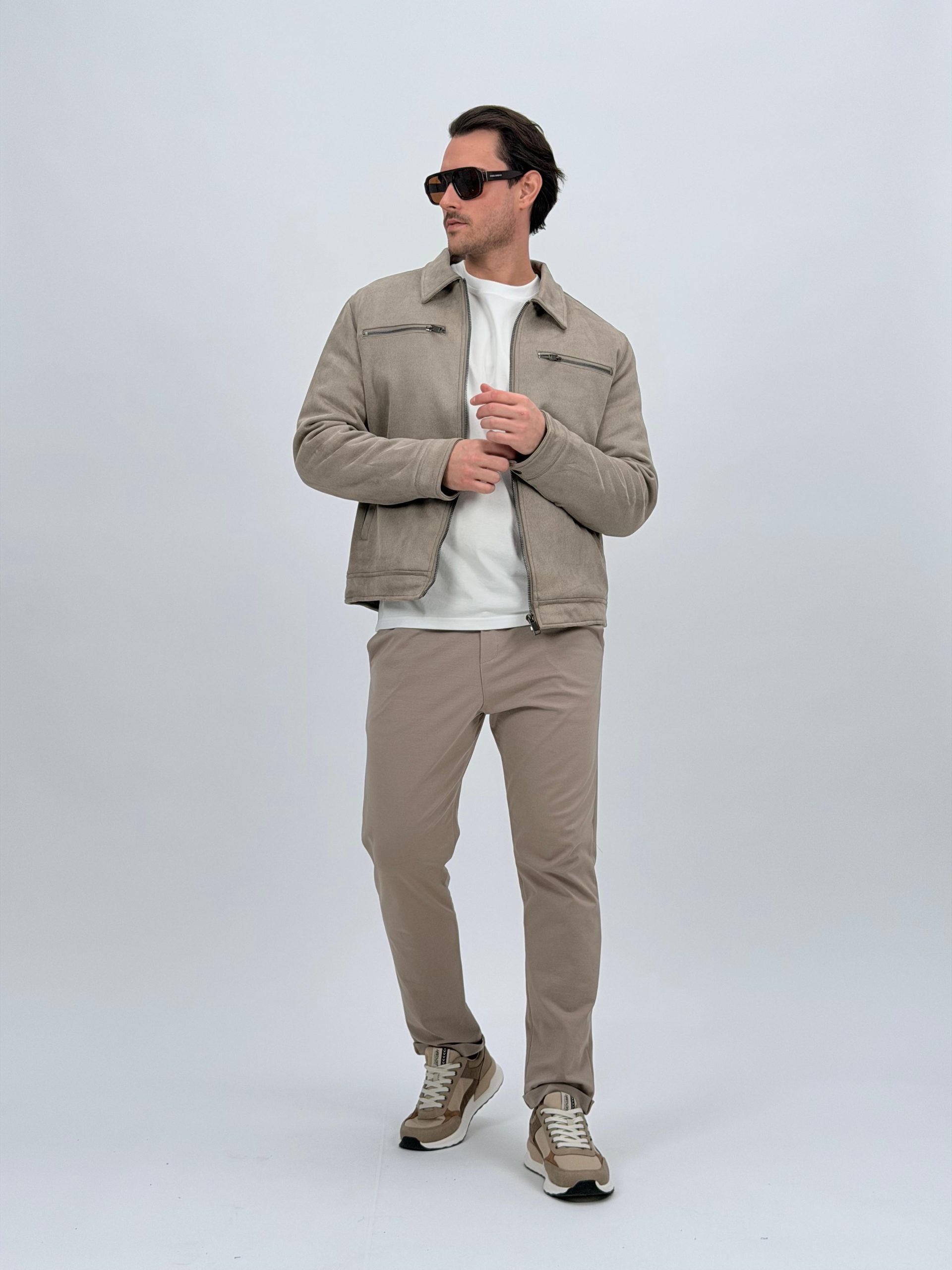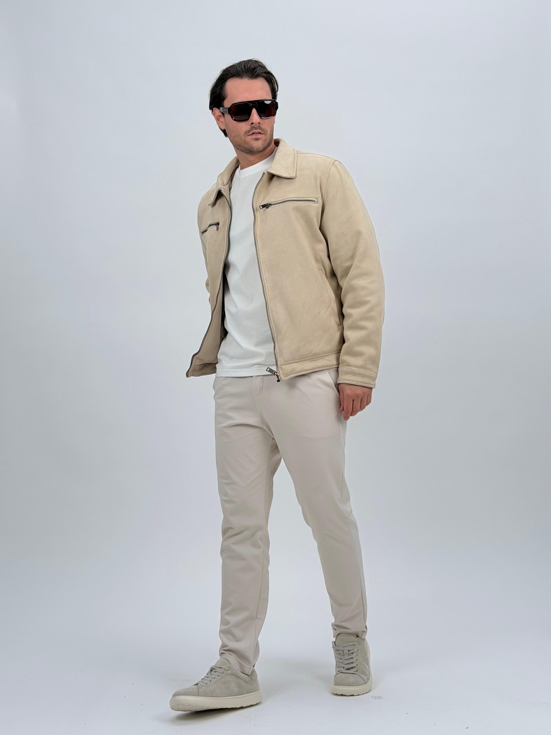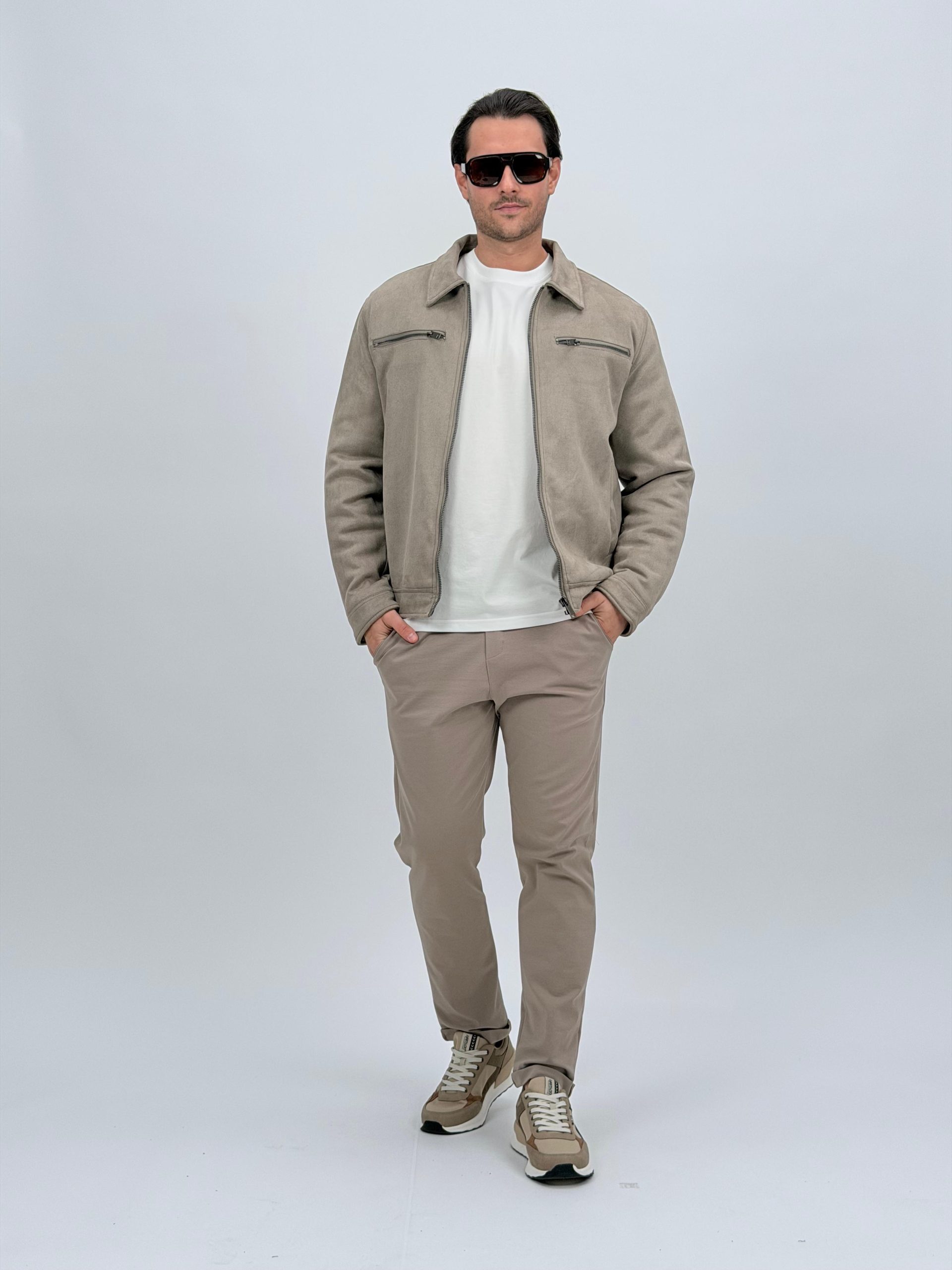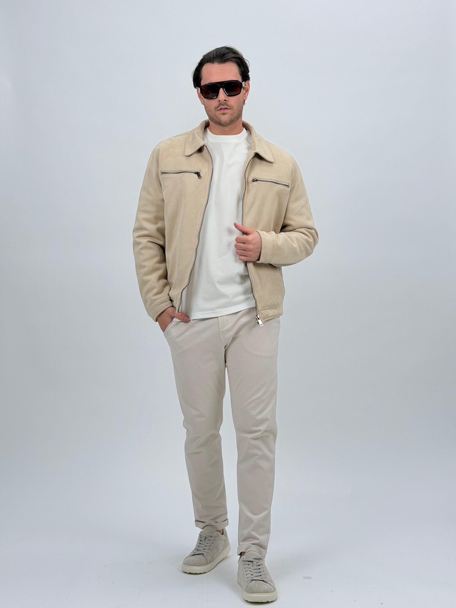 Jachetă bomber cu aspect de piele întoarsă și buzunare vizibile