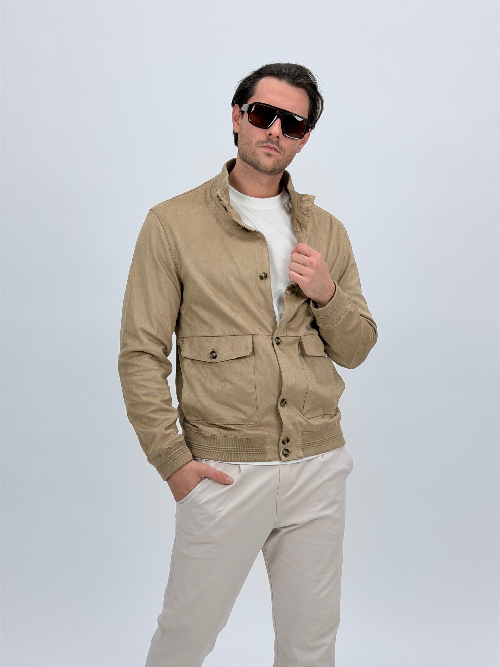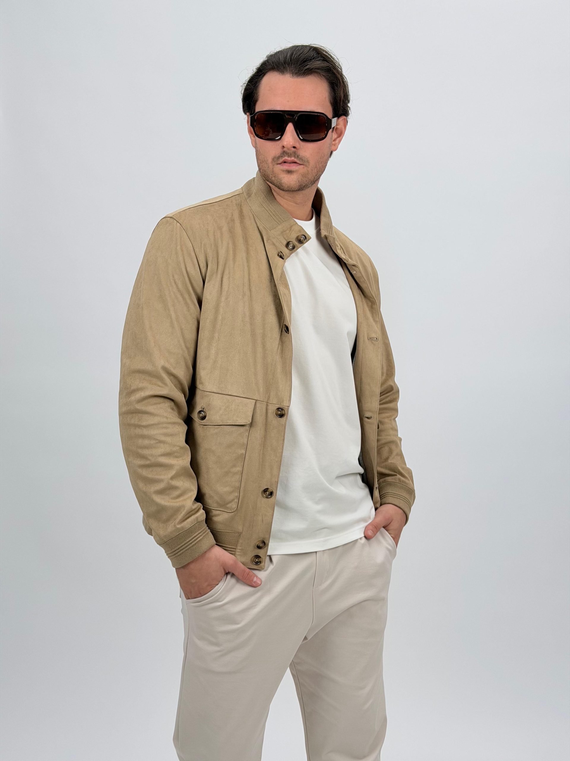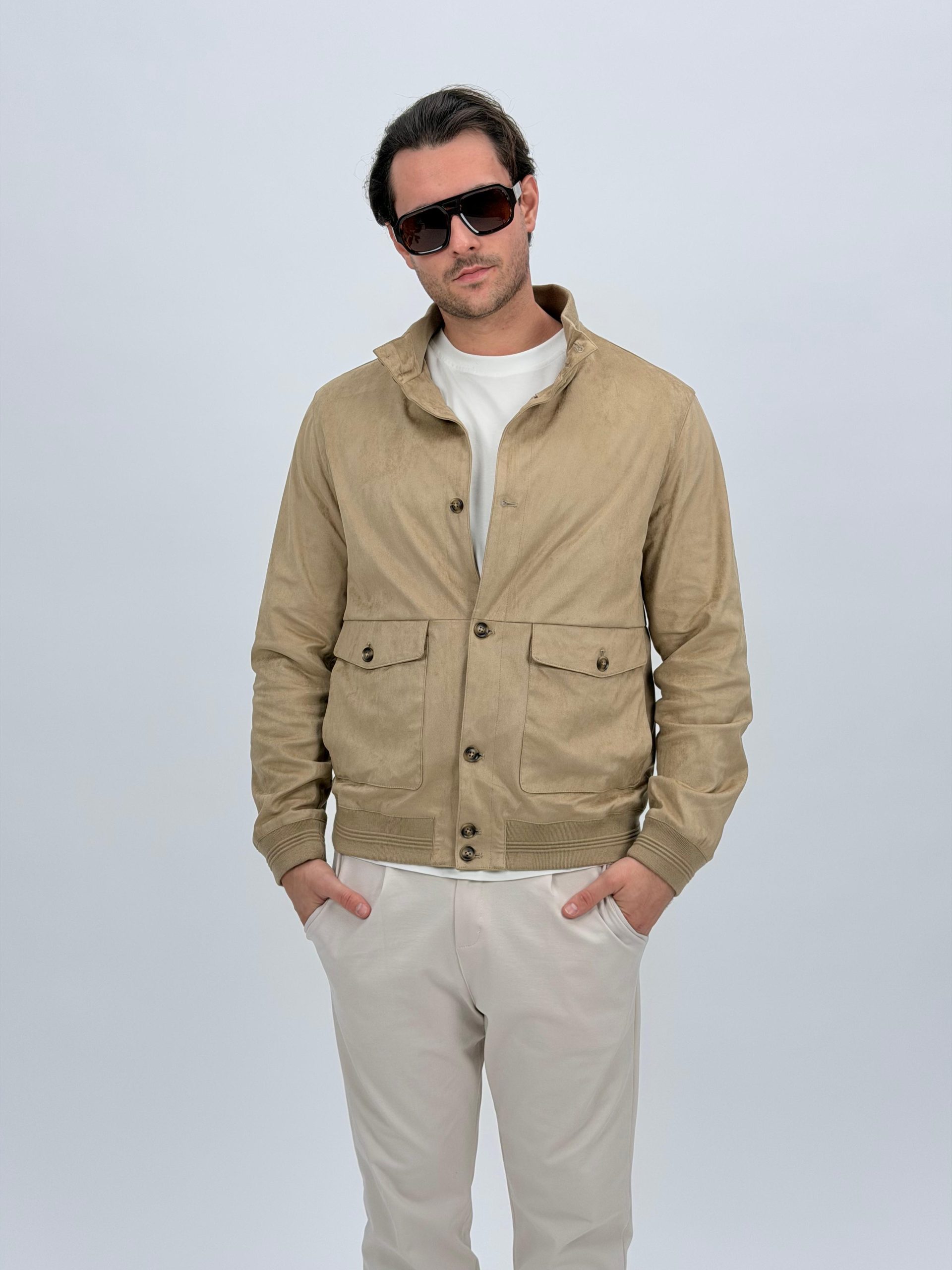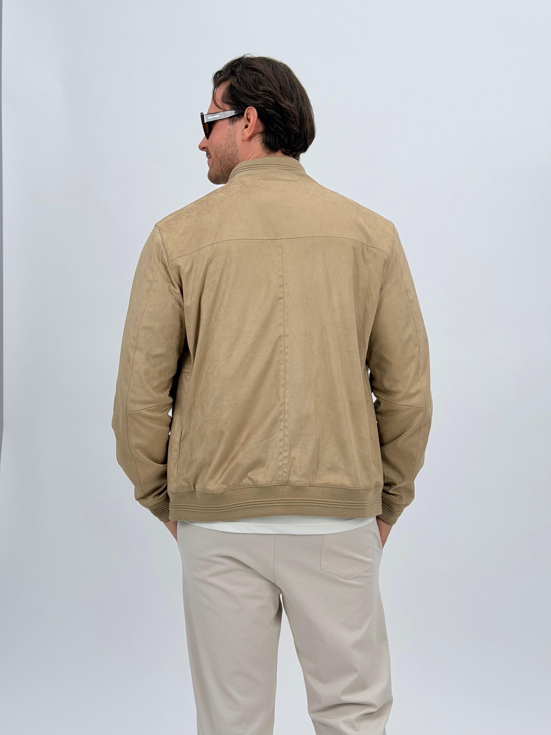 Jachetă bomber cu aspect de piele întoarsă și buzunare vizibile