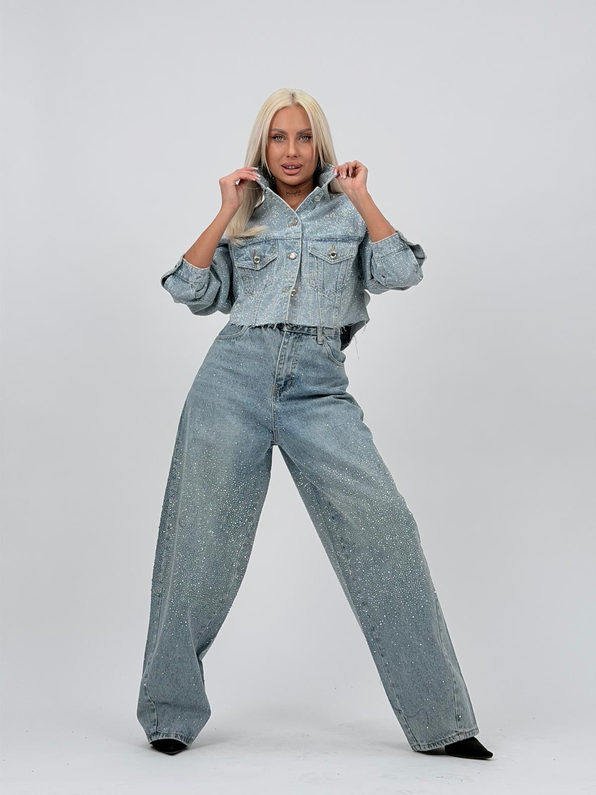 Jachetă de Jeans Full Strass – Strălucire și Stil într-o Singură Piesă