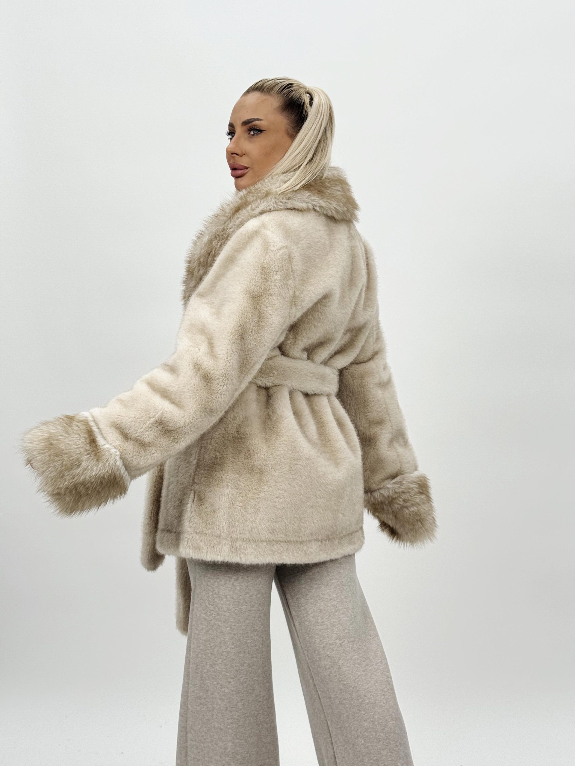 Jachetă din Blană cu Cordon în Talie – Eleganță și Căldură Într-o Singură Piesă
