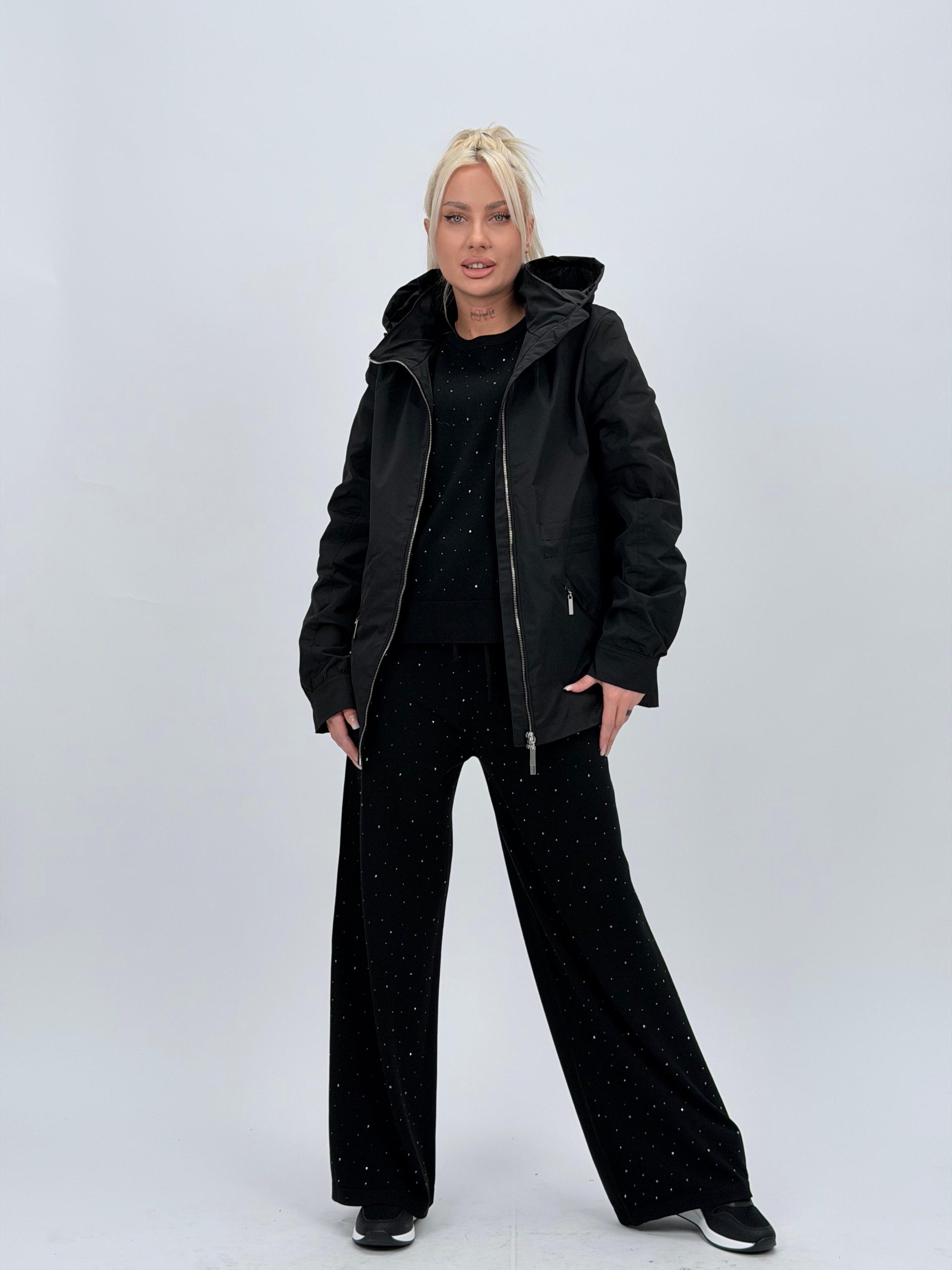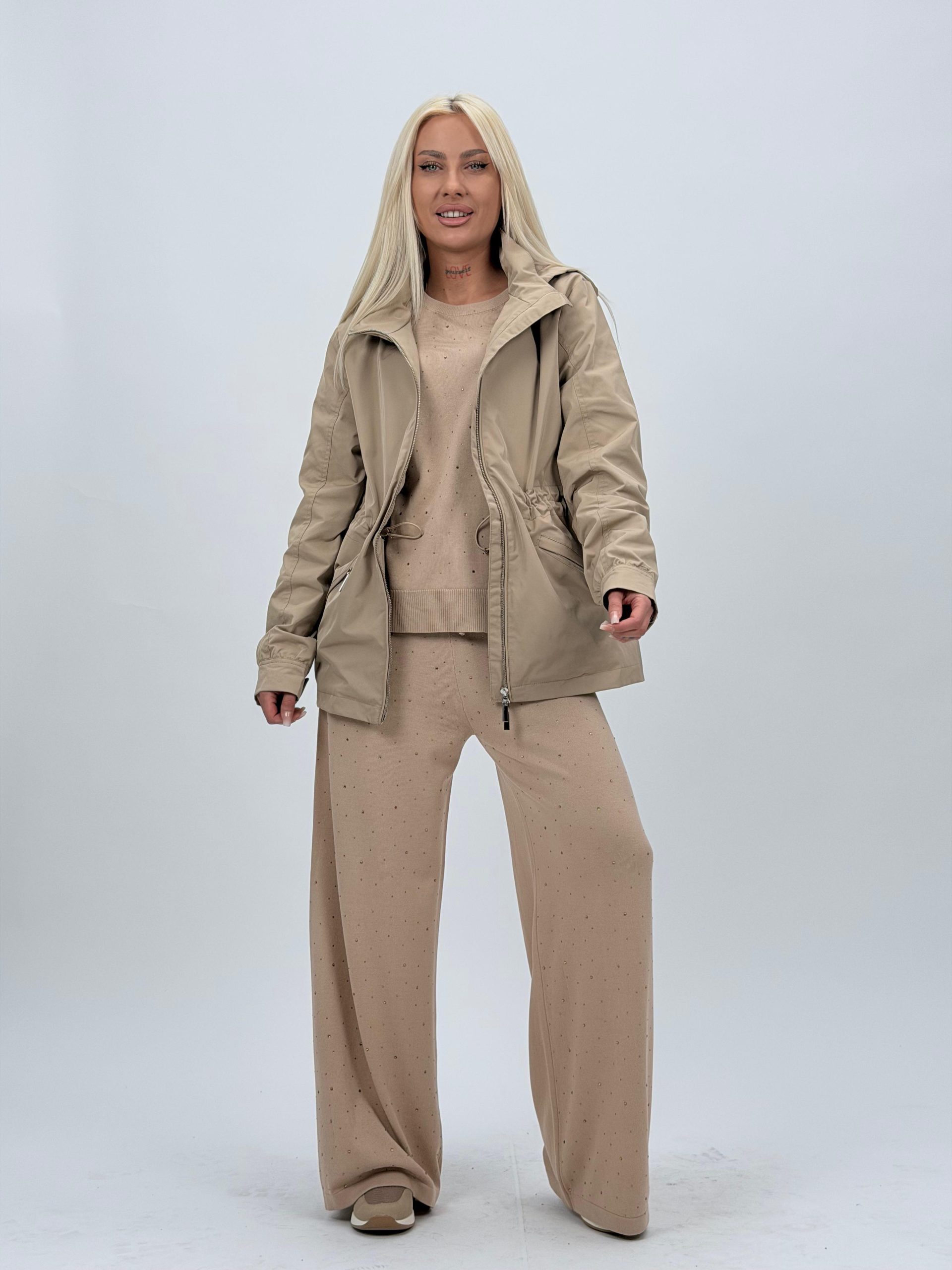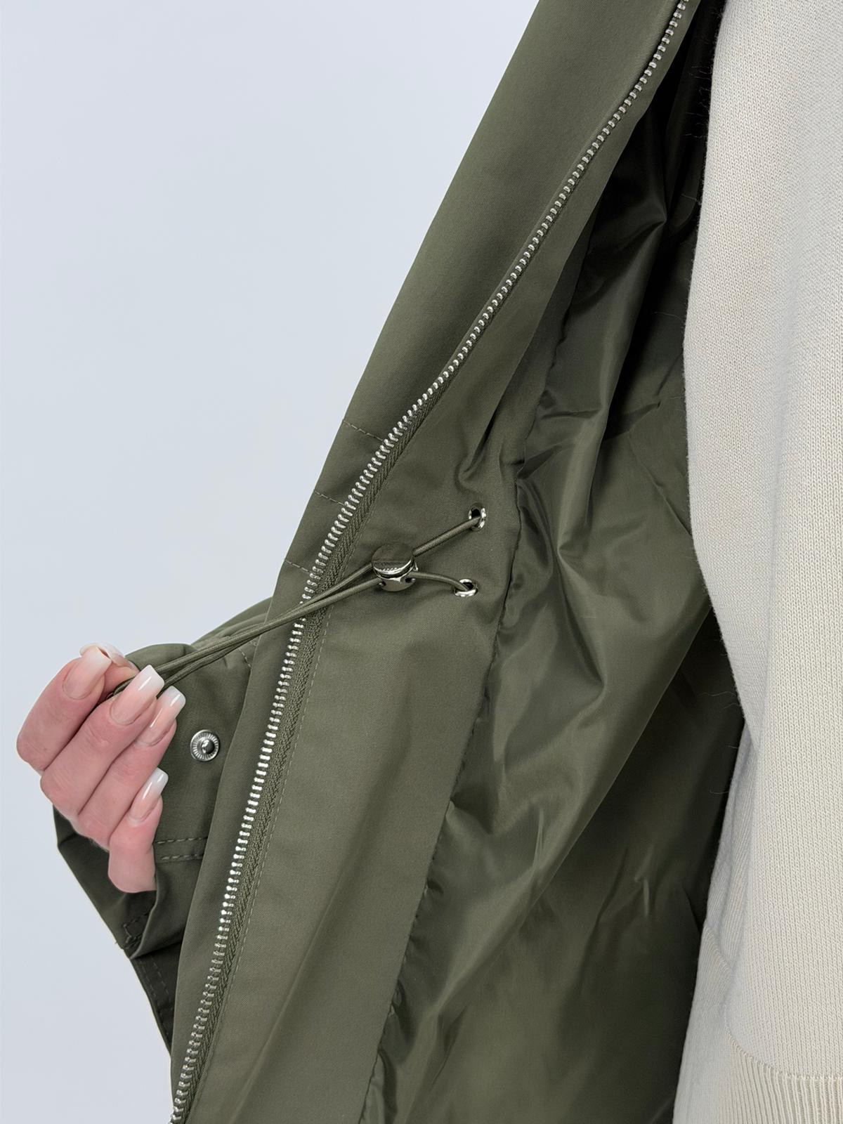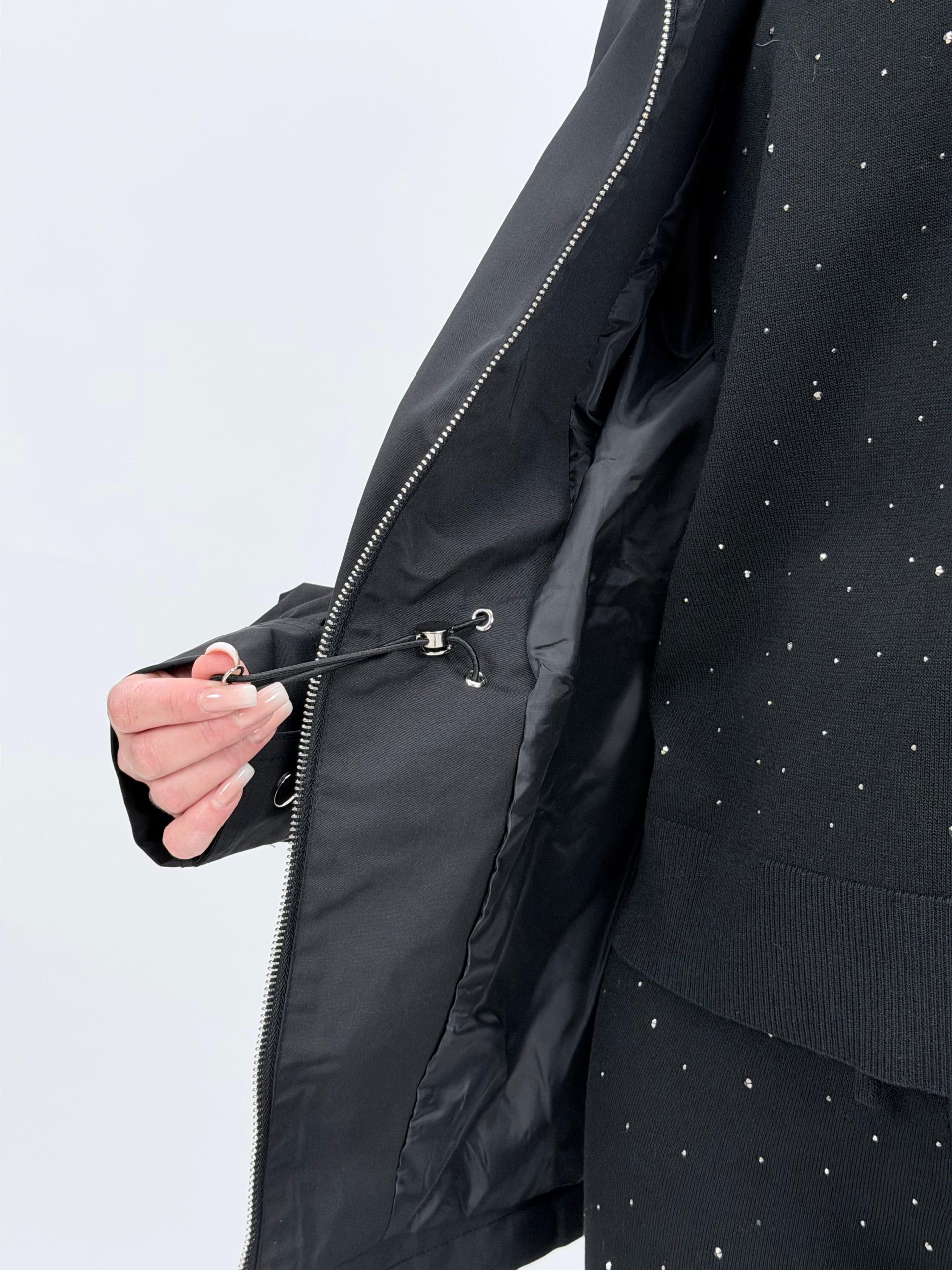 Jachetă din fâș cu fermoar și glugă detașabilă
