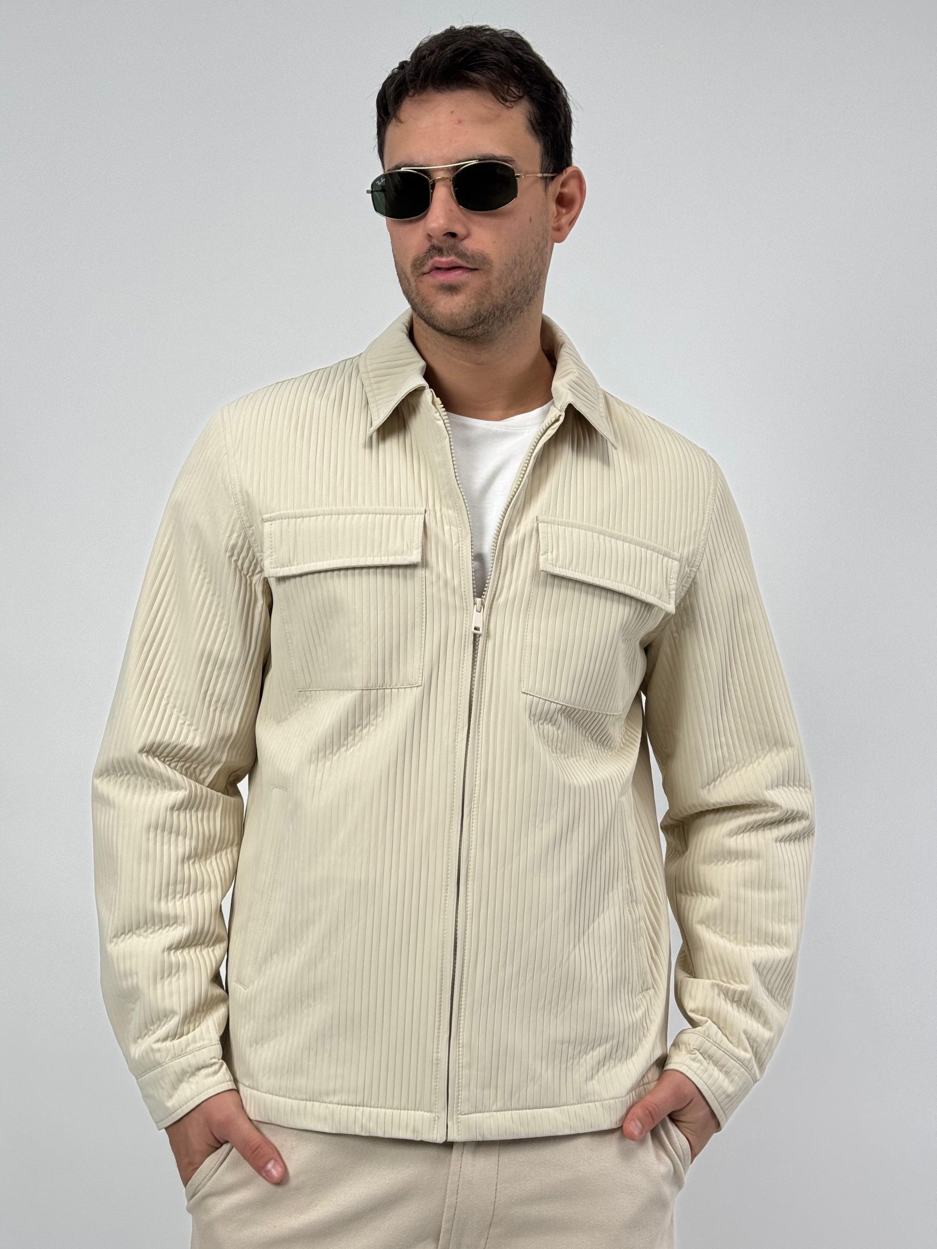 Această jachetă din fâș rigat este suficient de versatilă încât să o poți purta atât cu un look sport, cât și cu o ținută casual smart. Se potrivește de minune cu blugi drepți, pantaloni cargo sau joggers, iar în partea de sus poți alege între un tricou simplu, o helancă sau un hanorac oversized. Culoarea neutră și textura rigată permit o mulțime de combinații vestimentare.