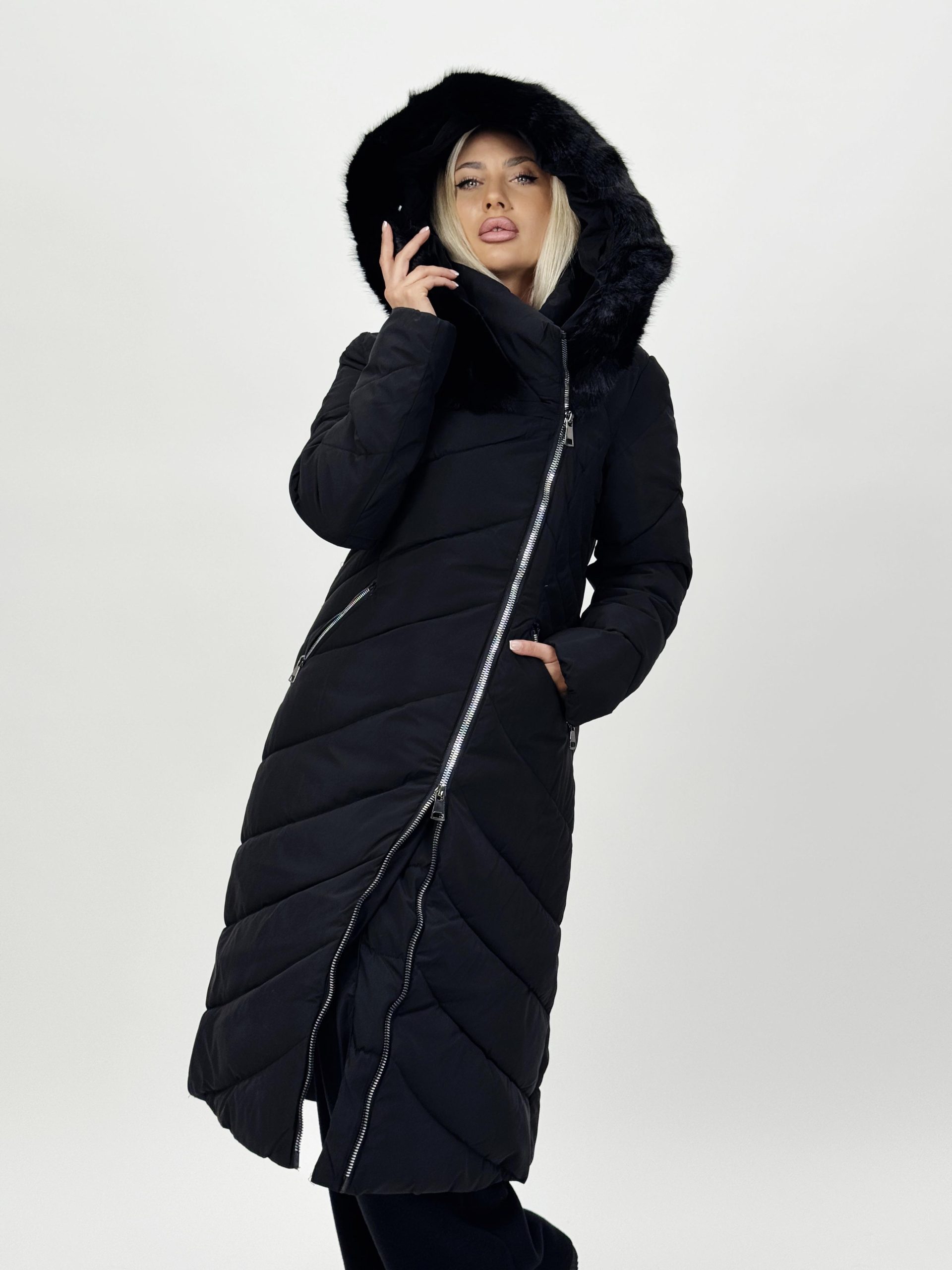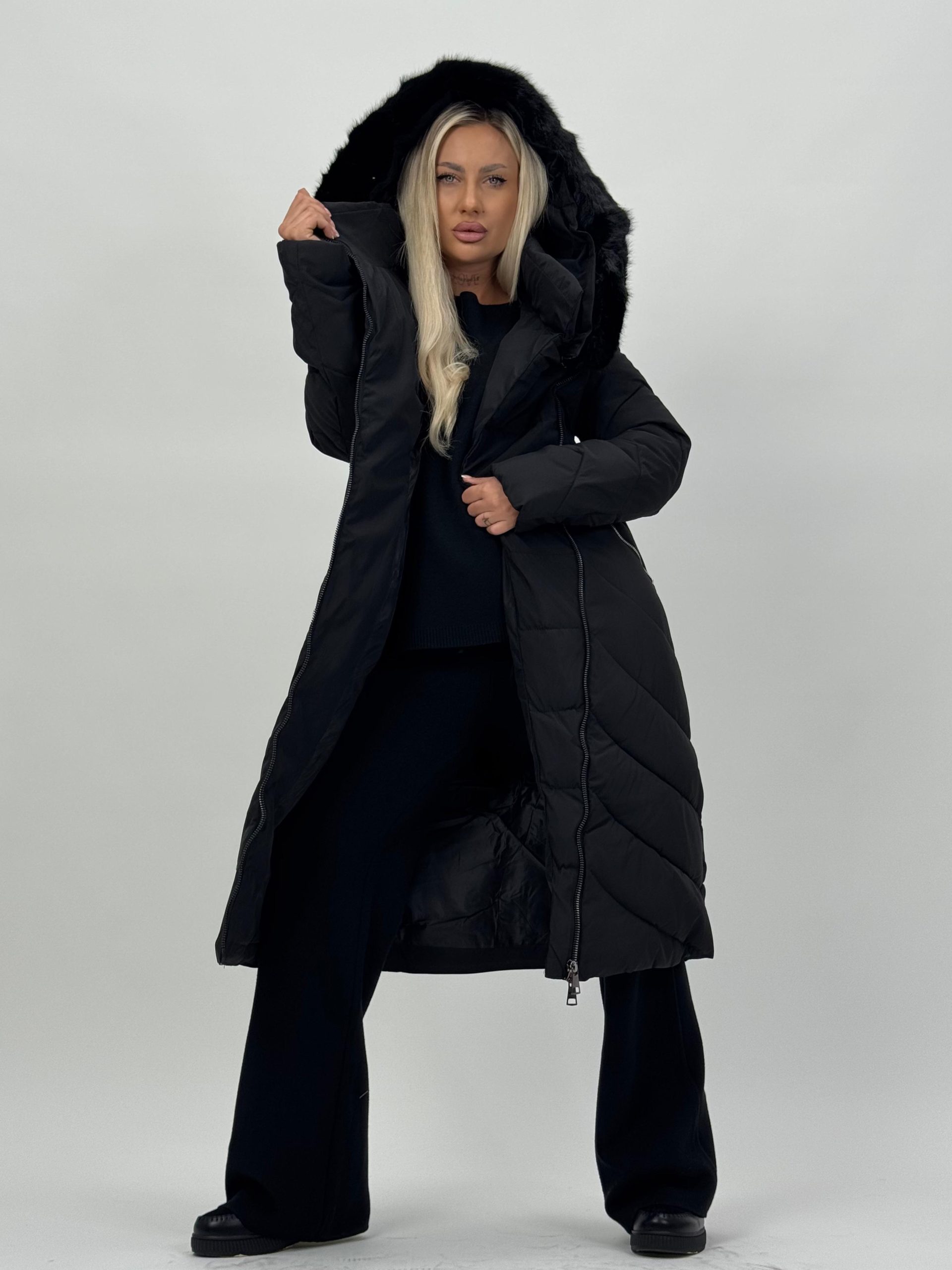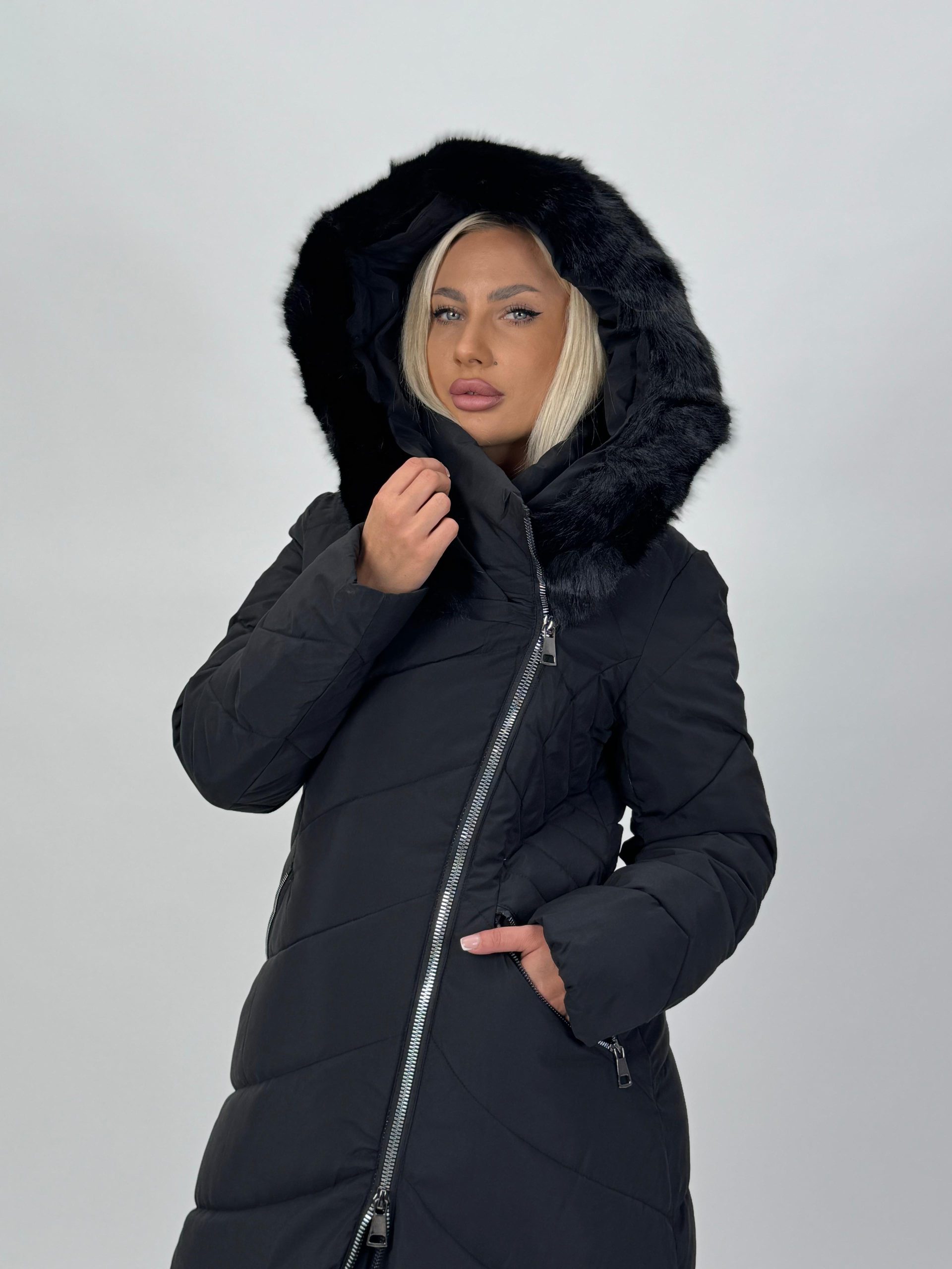 Jacheta lungă cu fermoar pe diagonală adaugă un aer modern și elegant garderobei tale. Croiala lungă protejează împotriva frigului, în timp ce fermoarul asimetric conferă un detaliu stilat și contemporan. Materialul moale și călduros oferă confort și libertate de mișcare, fiind ideală pentru ținute casual, urbane sau office.