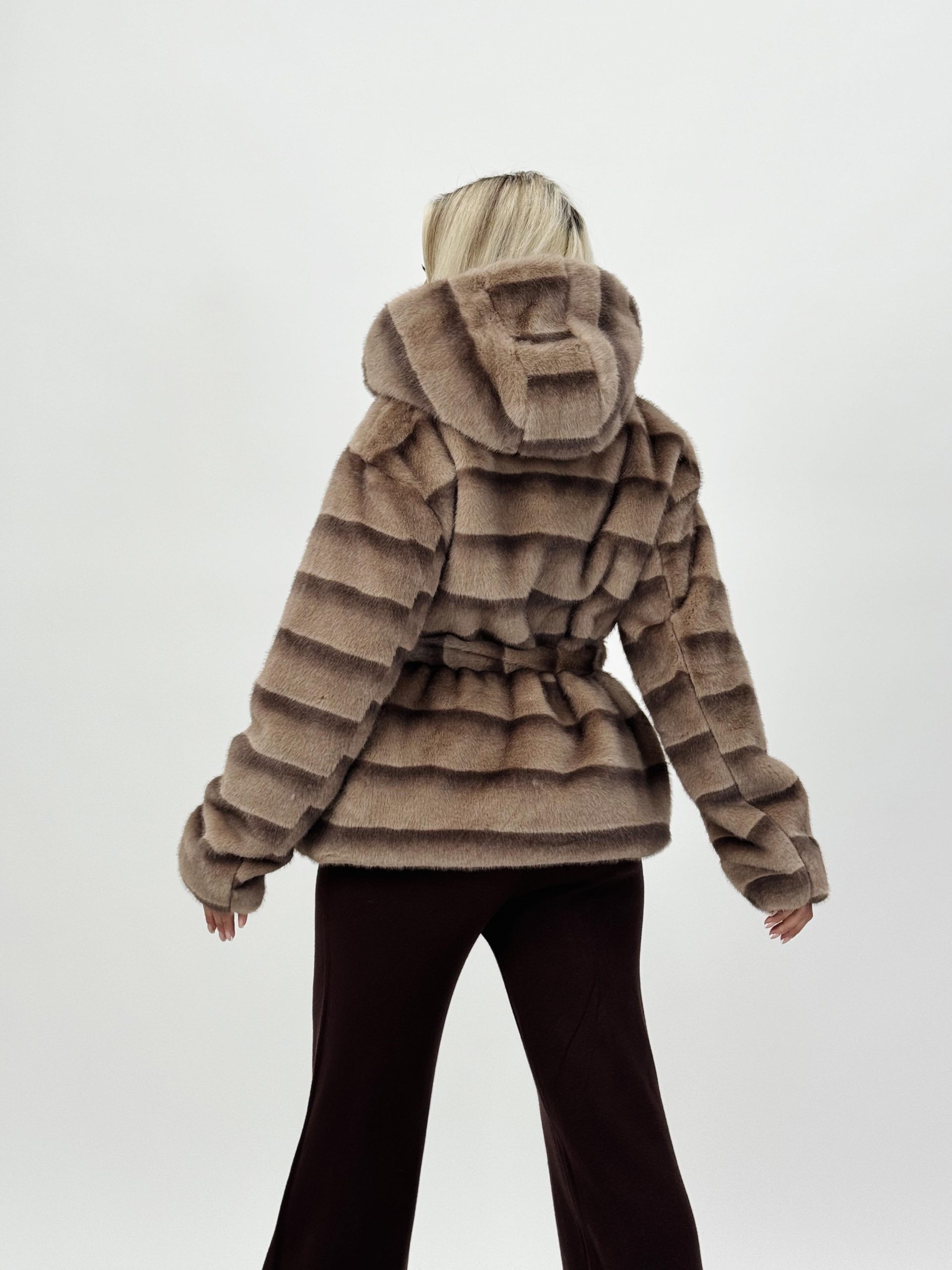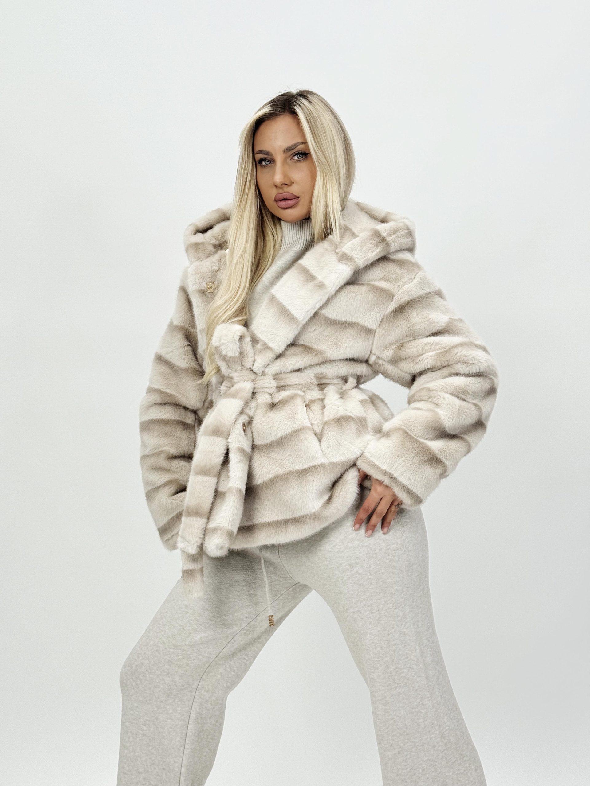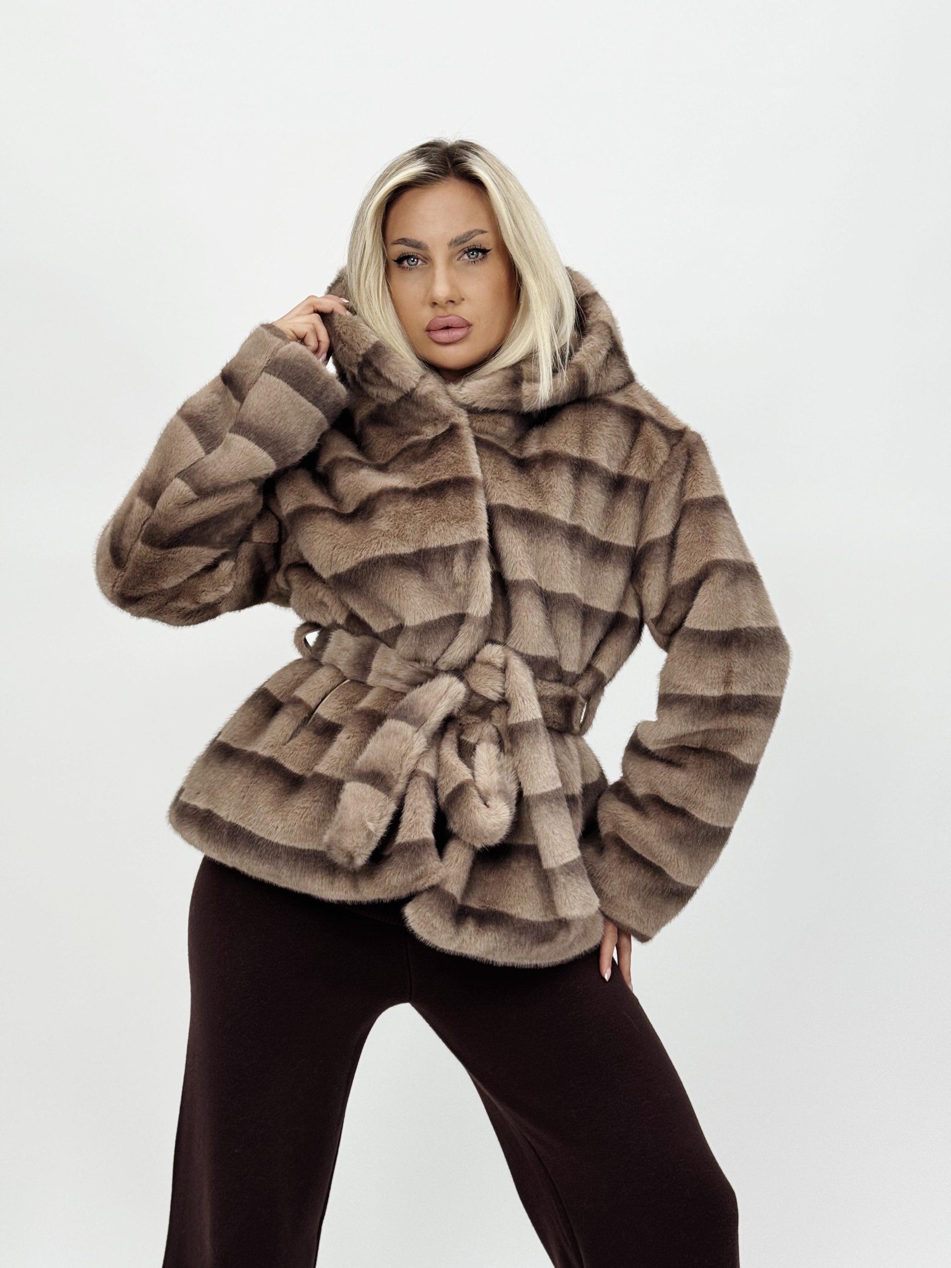 Jachetă Scurtă din Blană cu Glugă și Cordon – Eleganță și Funcționalitate