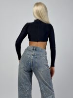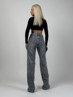 Jeansii wide leg cu ștrasuri sunt creați pentru a oferi o potrivire confortabilă și o siluetă impecabilă. Croiala wide leg și materialul de calitate conferă libertate de mișcare și se adaptează perfect formei corpului, evidențiind frumusețea liniei taliei și a picioarelor.