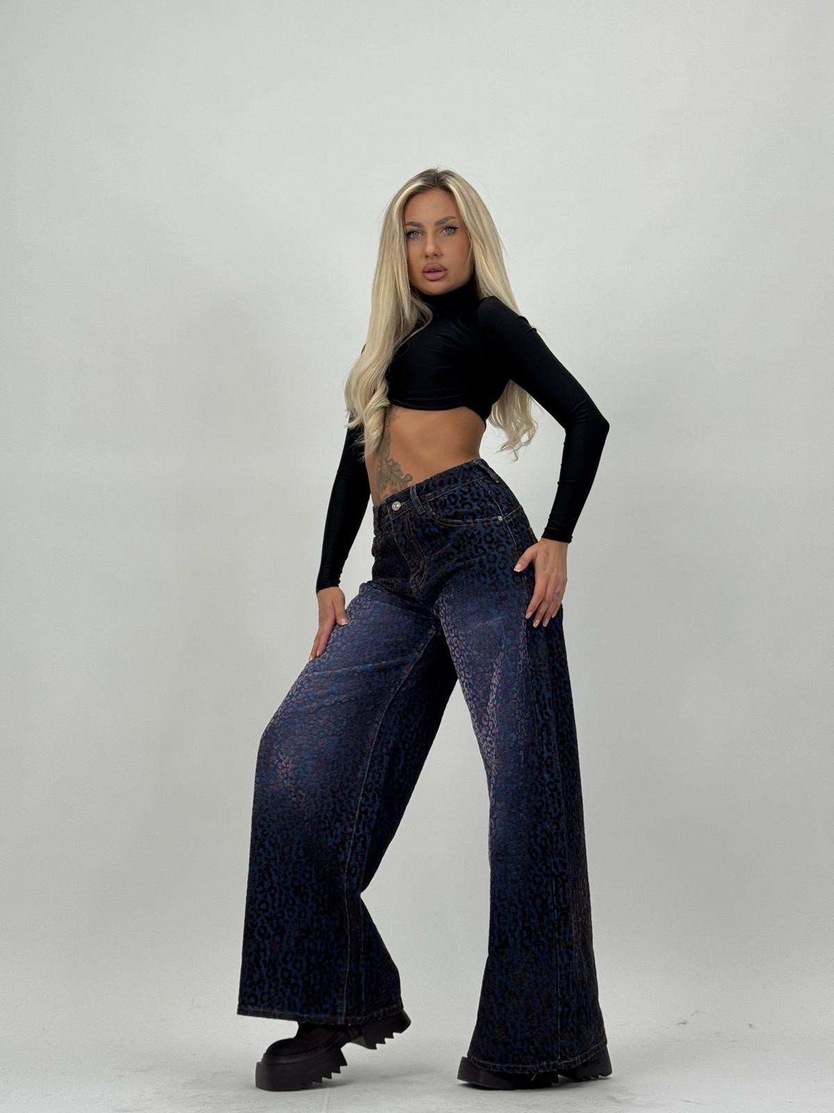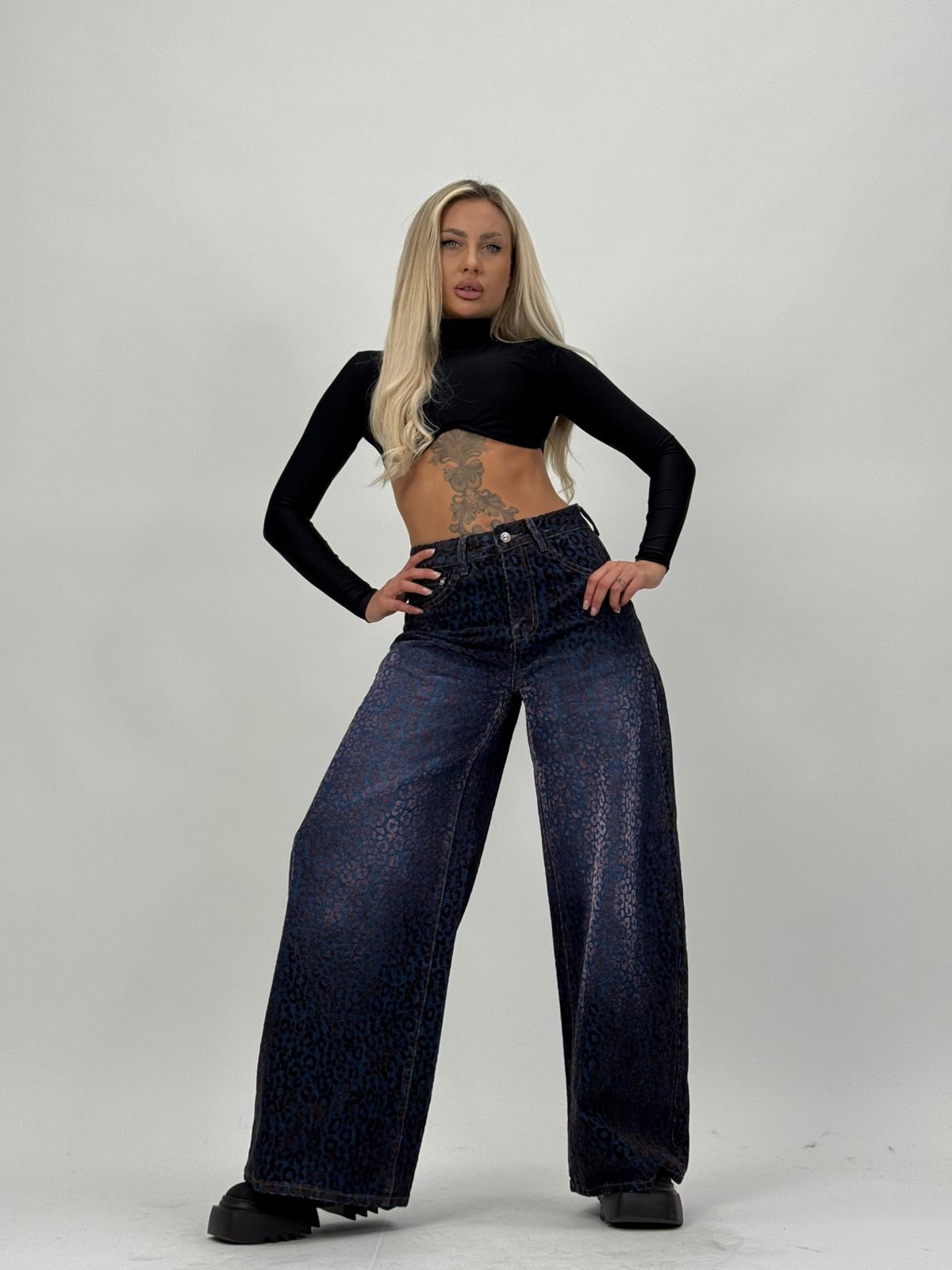 Jeans | Blug baggy cu imprimeu din catifea