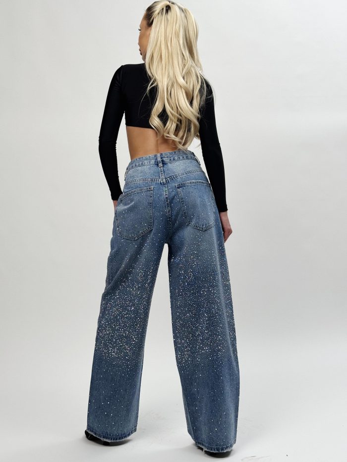 Jeans | Blug Baggy cu Ștrasuri – Mixul Perfect între Confort și Strălucire