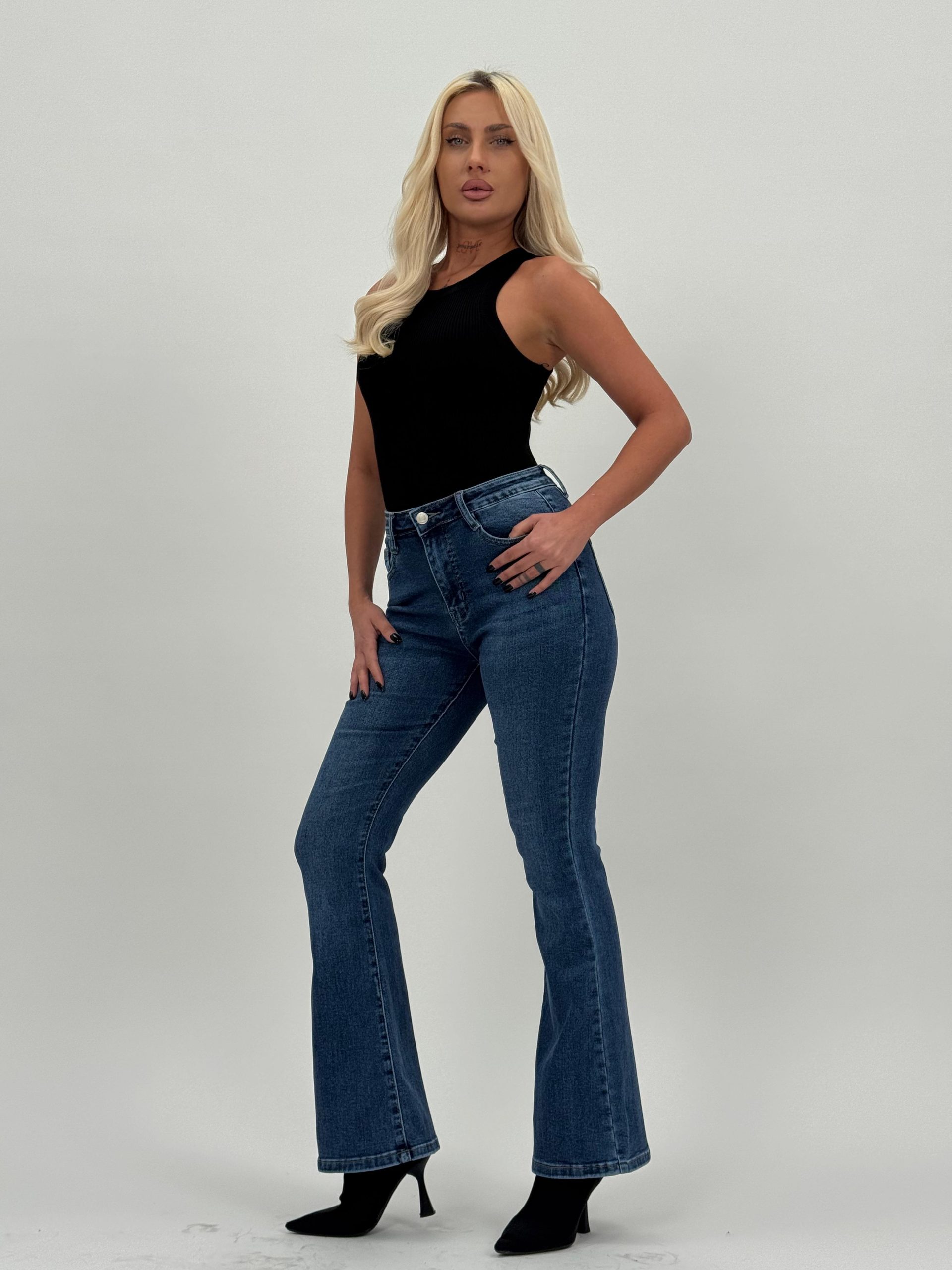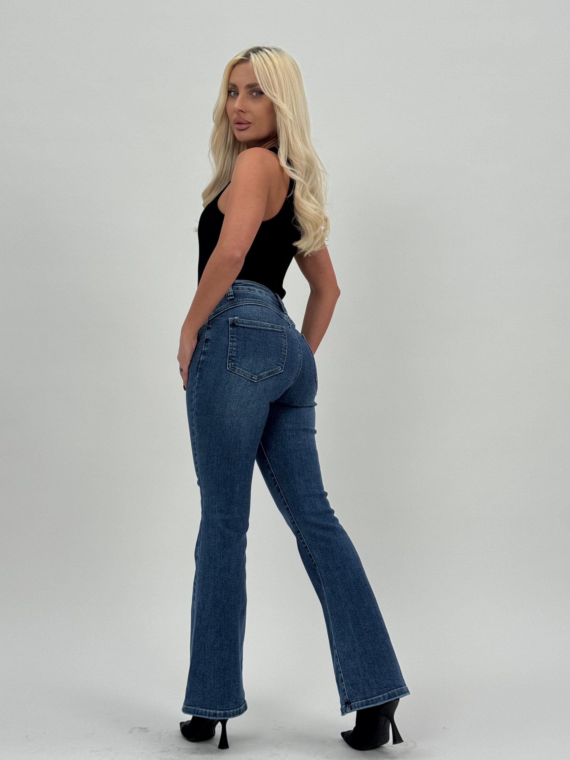 Jeans | Blug Evazat Bleumarin cu Push-Up – Versatilitate și Feminitate în Fiecare Zi