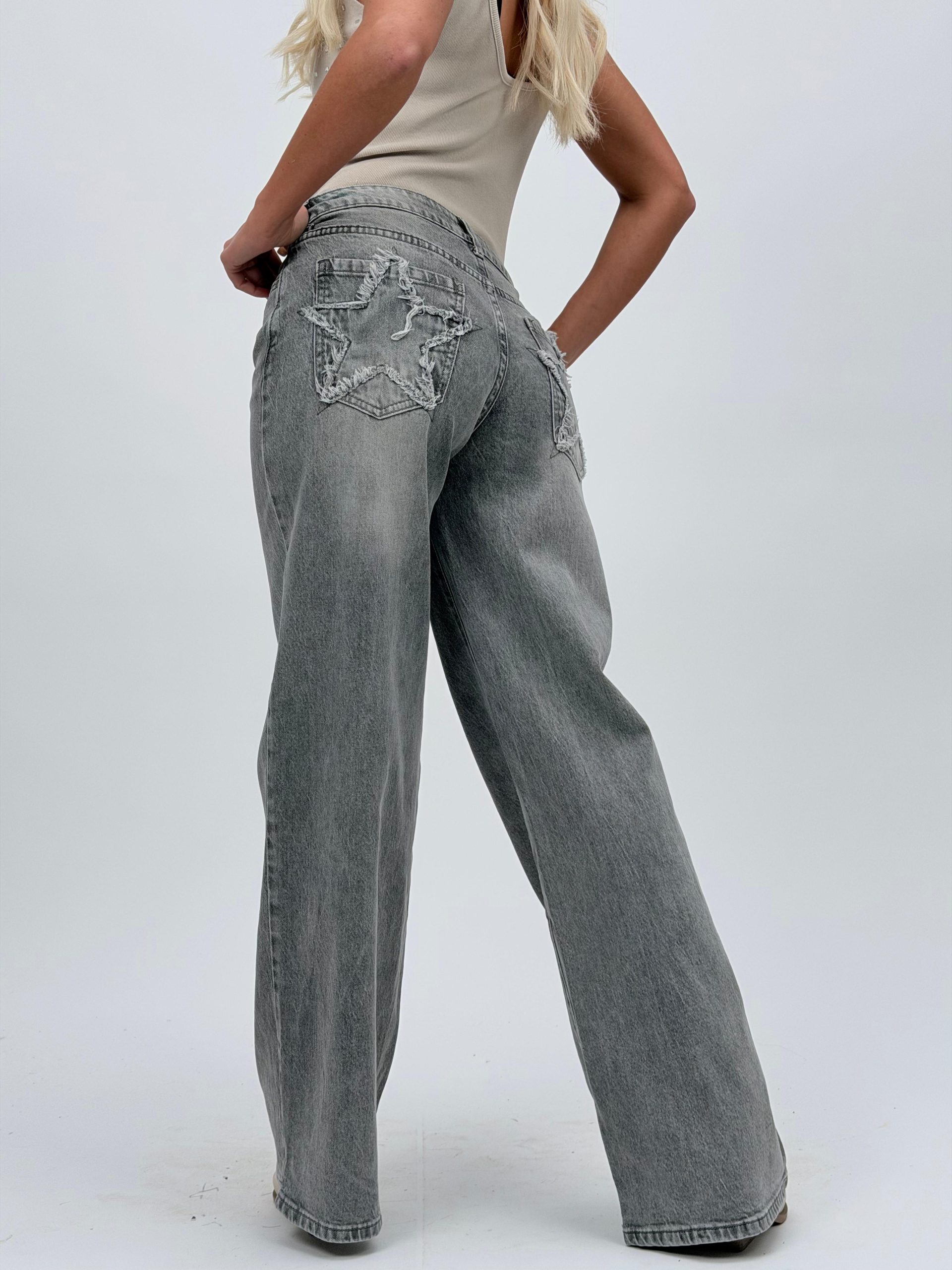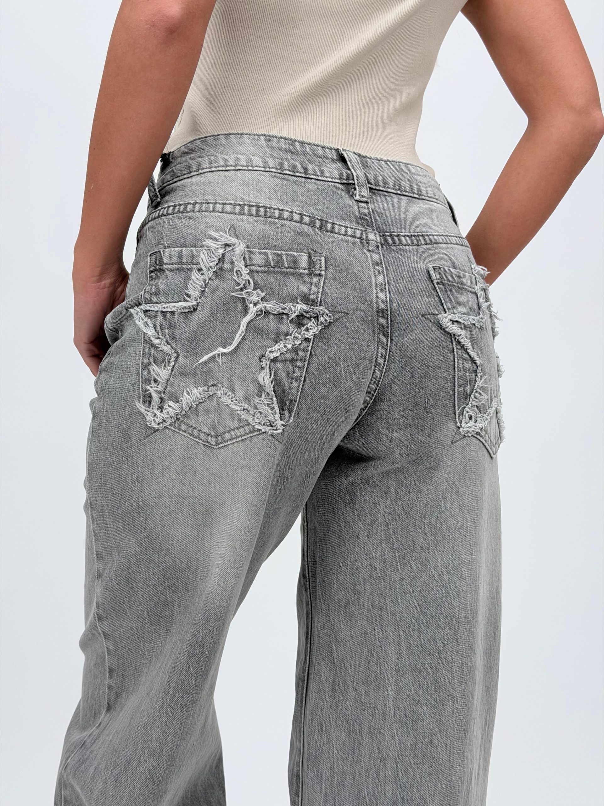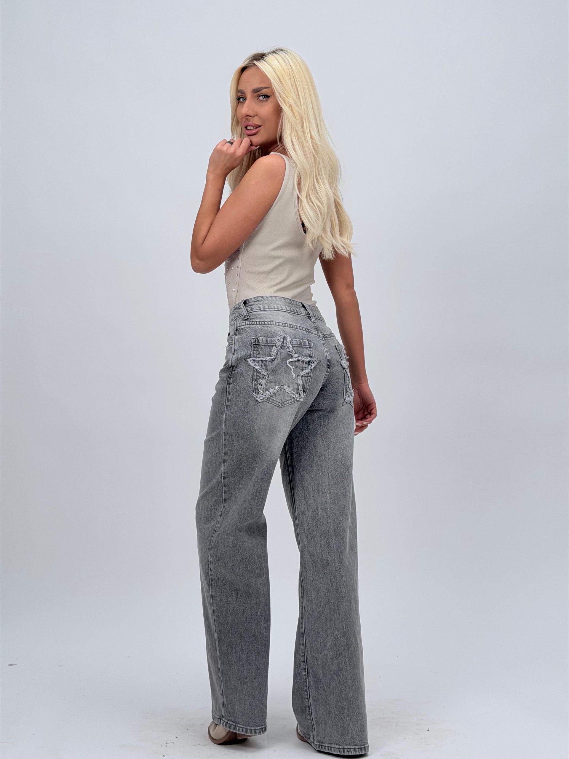 Fii primul care scrii o recenzie pentru „Jeans | Blug gri drept cu model stea la buzunar”