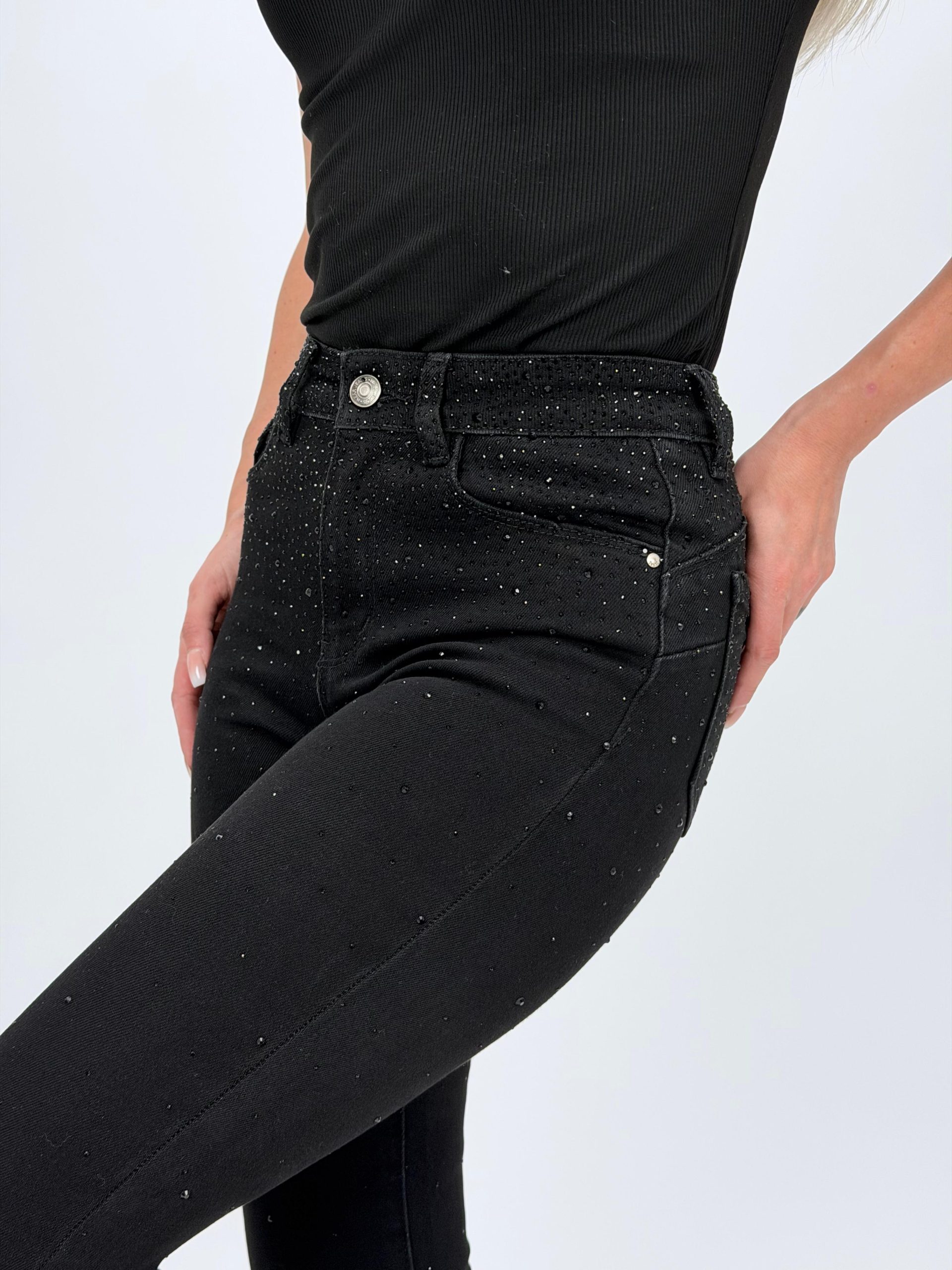 Jeans | Blug negru slim fit cu push-up și ștrasuri