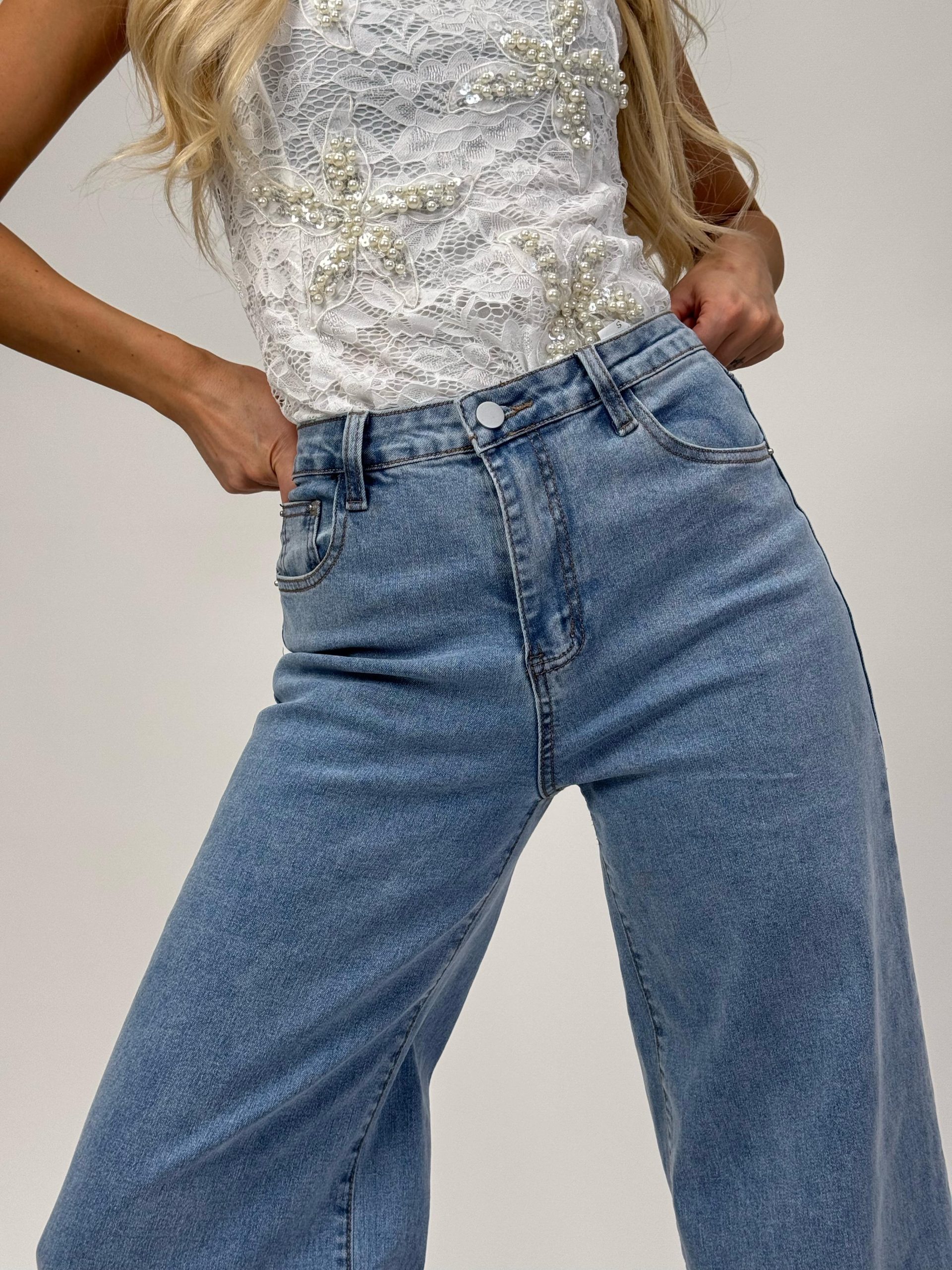 Cum să porți Jeans | Blug Wide Leg Albastru
