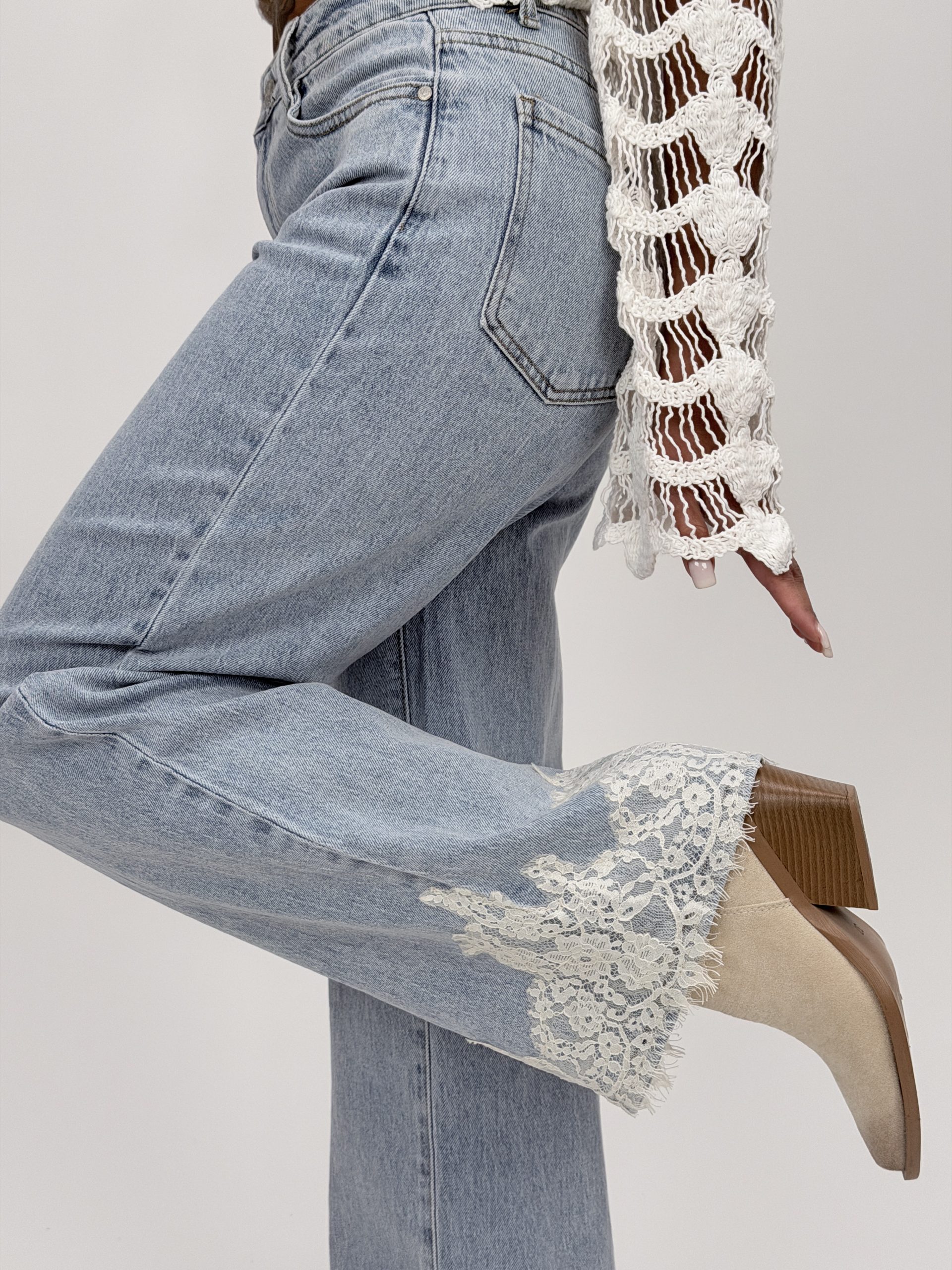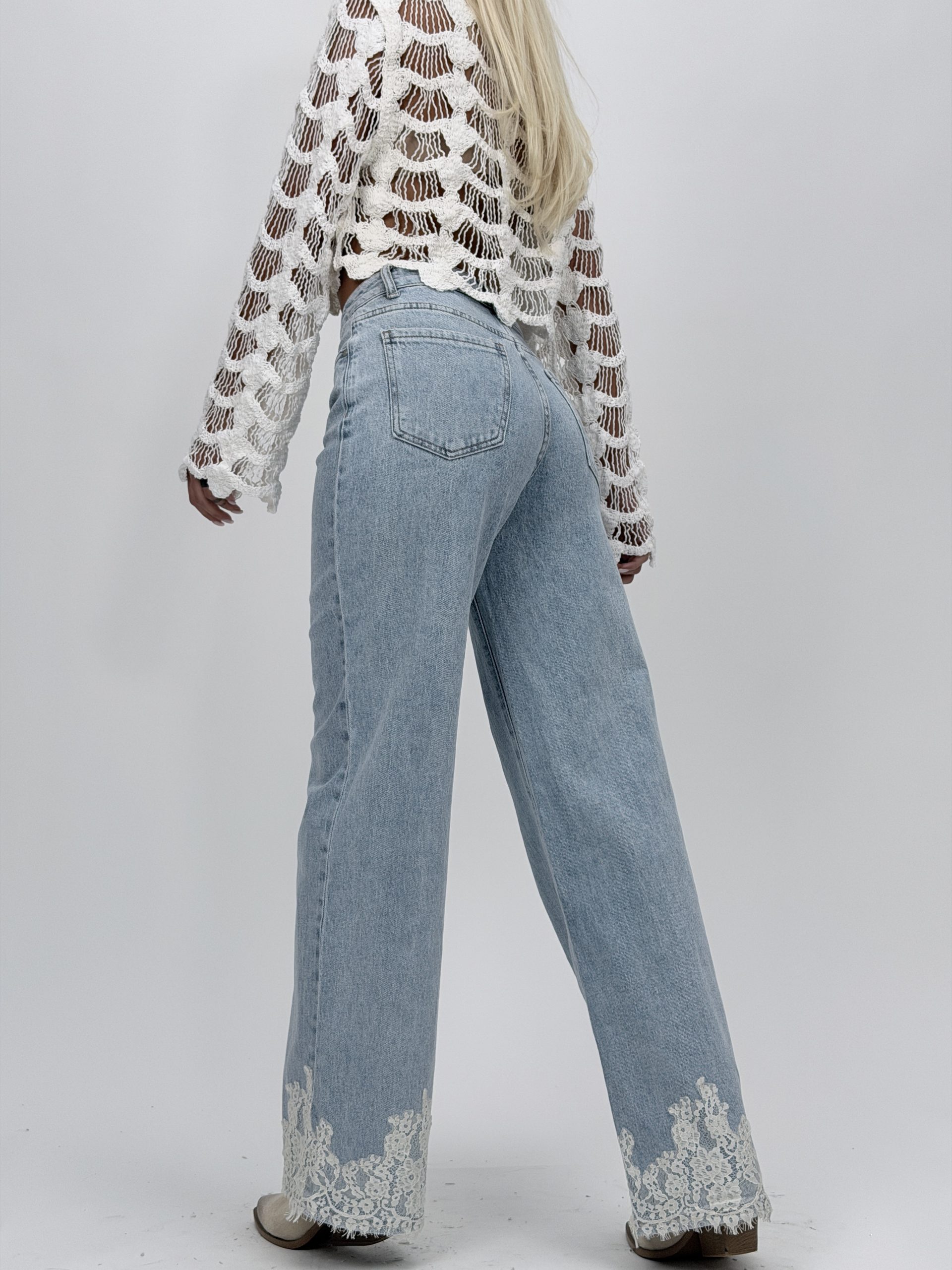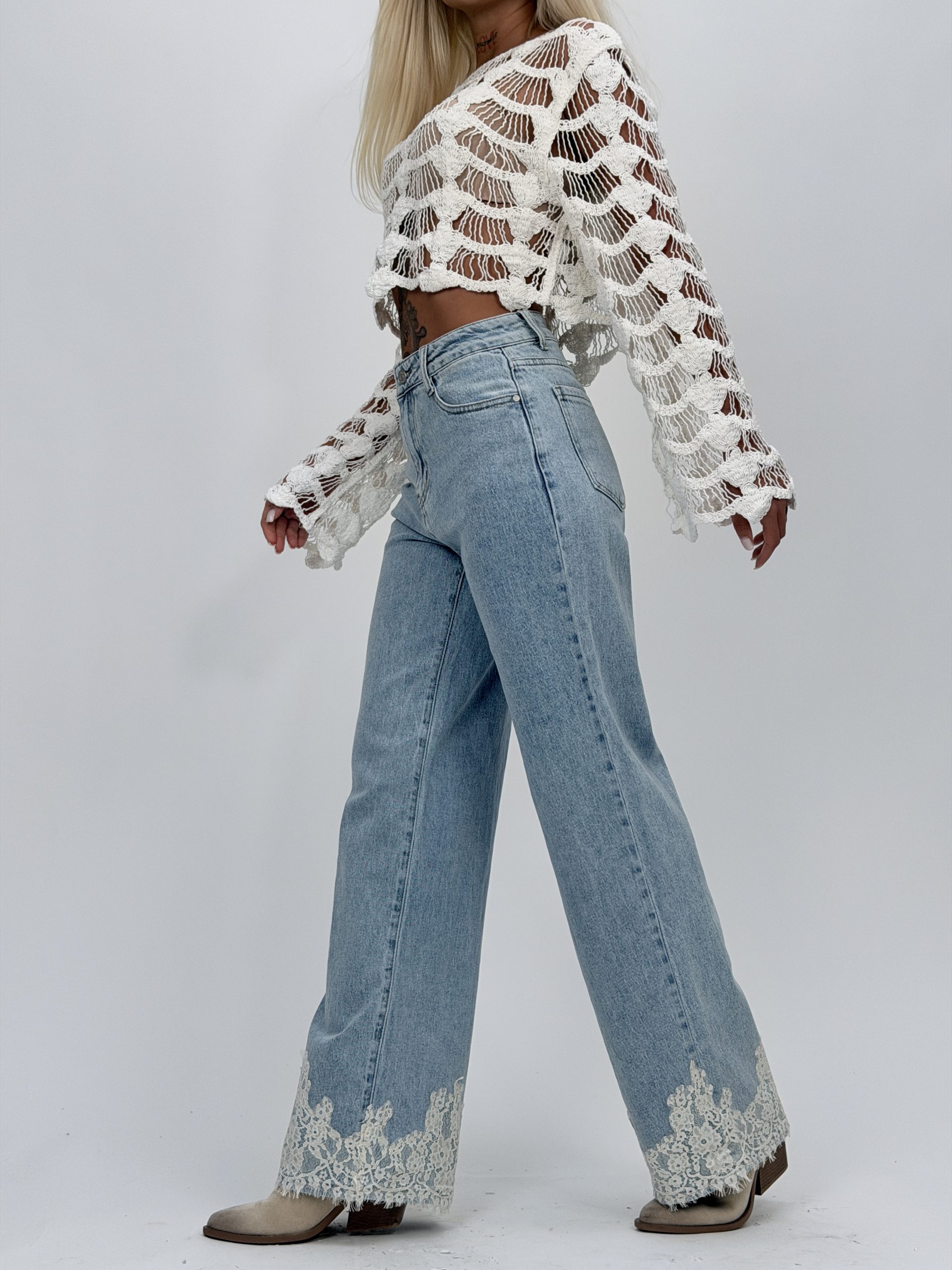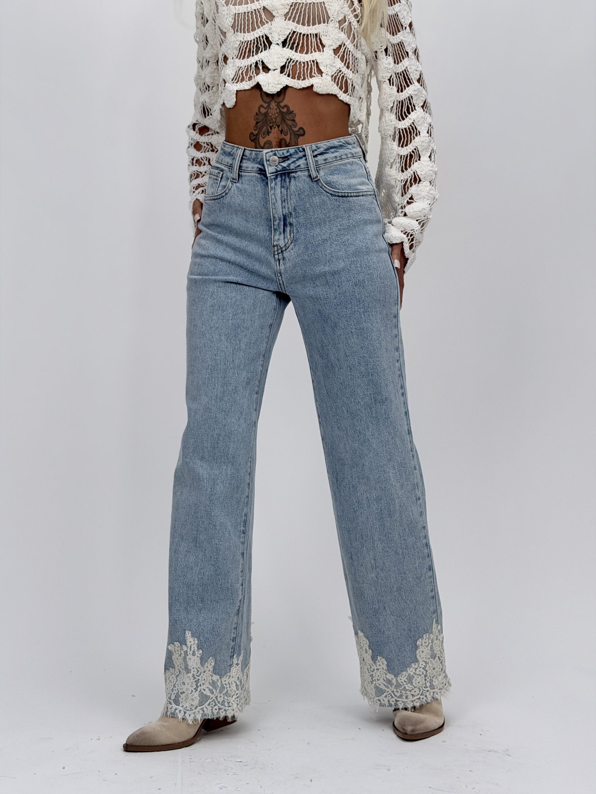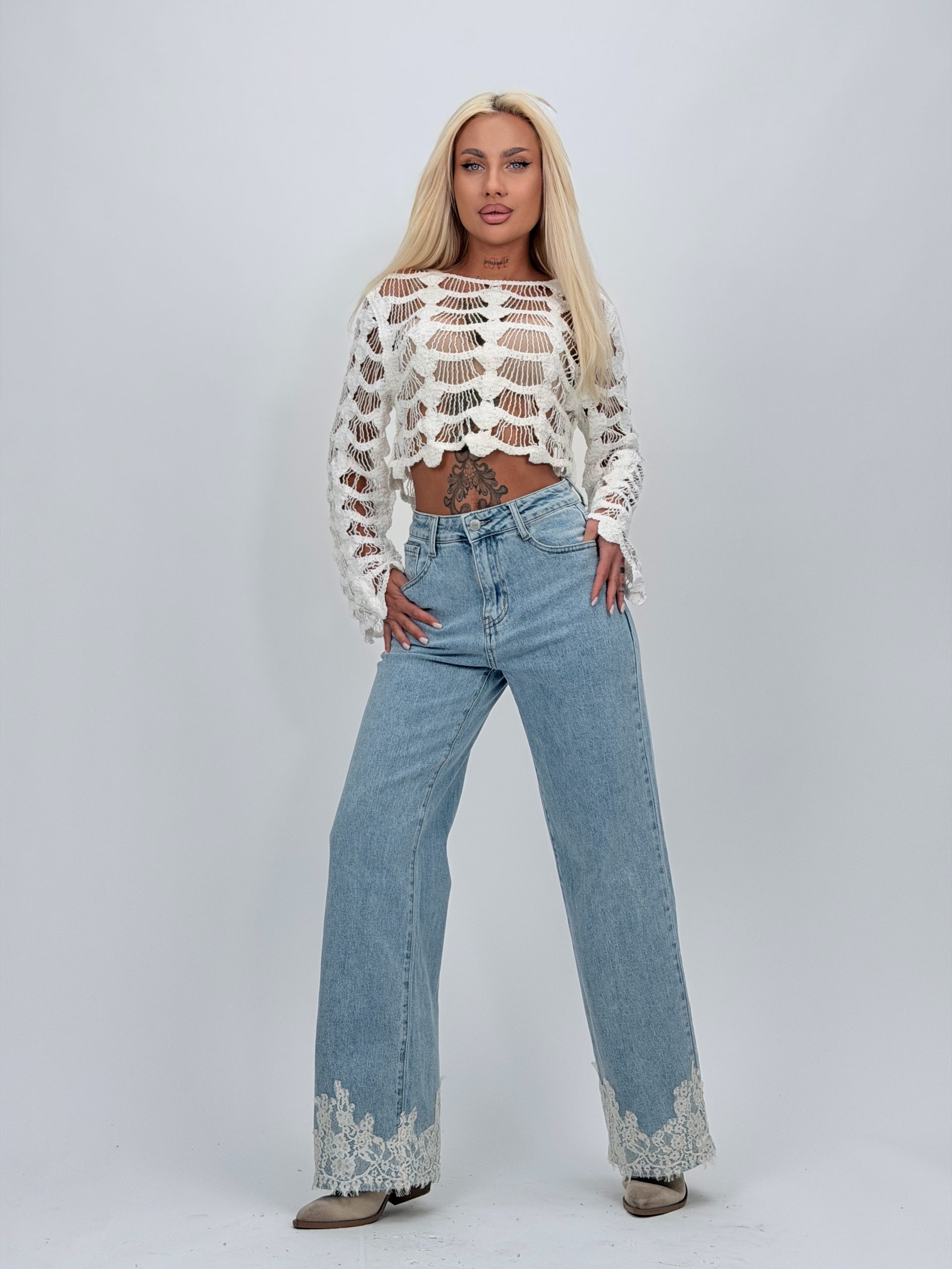 Jeans | Blug wide leg cu dantelă pe lateral Prețul inițial a fost: 519,90 lei.Prețul curent este: 319,90 lei.