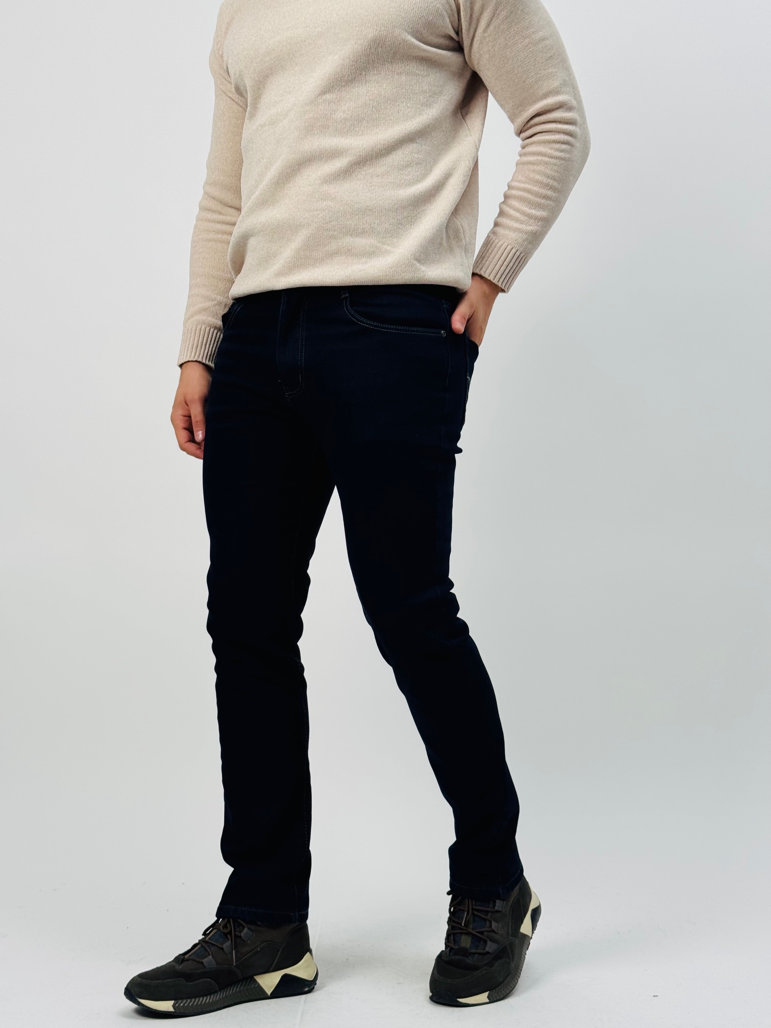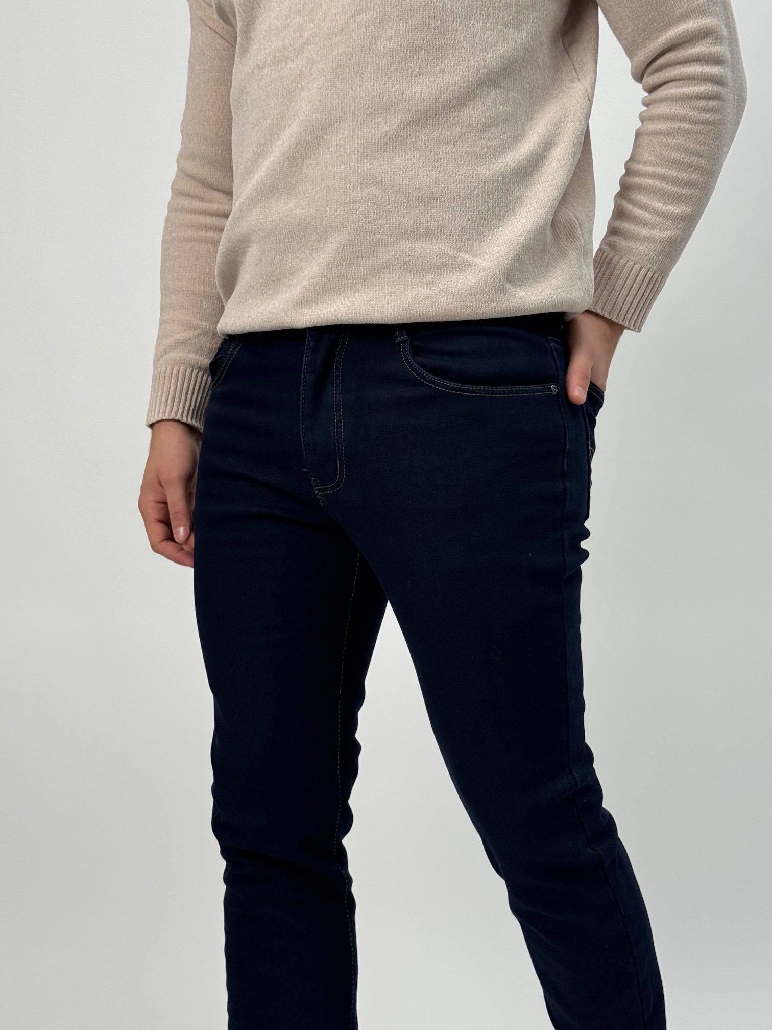 Jeans indigo slim plușat – stil contemporan, confort termic de sezon