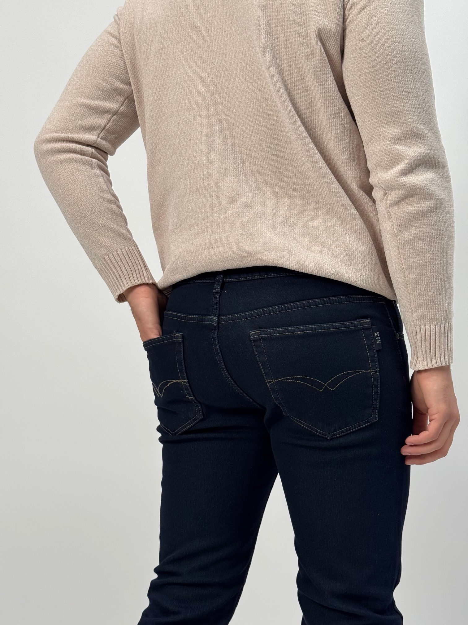 Confecționat dintr-un amestec de bumbac și fibre elastice, acest jeans are un aspect clasic la exterior, dar surprinde printr-un interior plușat, gândit să păstreze căldura. Această combinație de materiale oferă o experiență premium, menținând confortul pe tot parcursul zilei, fără senzația de greutate sau rigiditate.