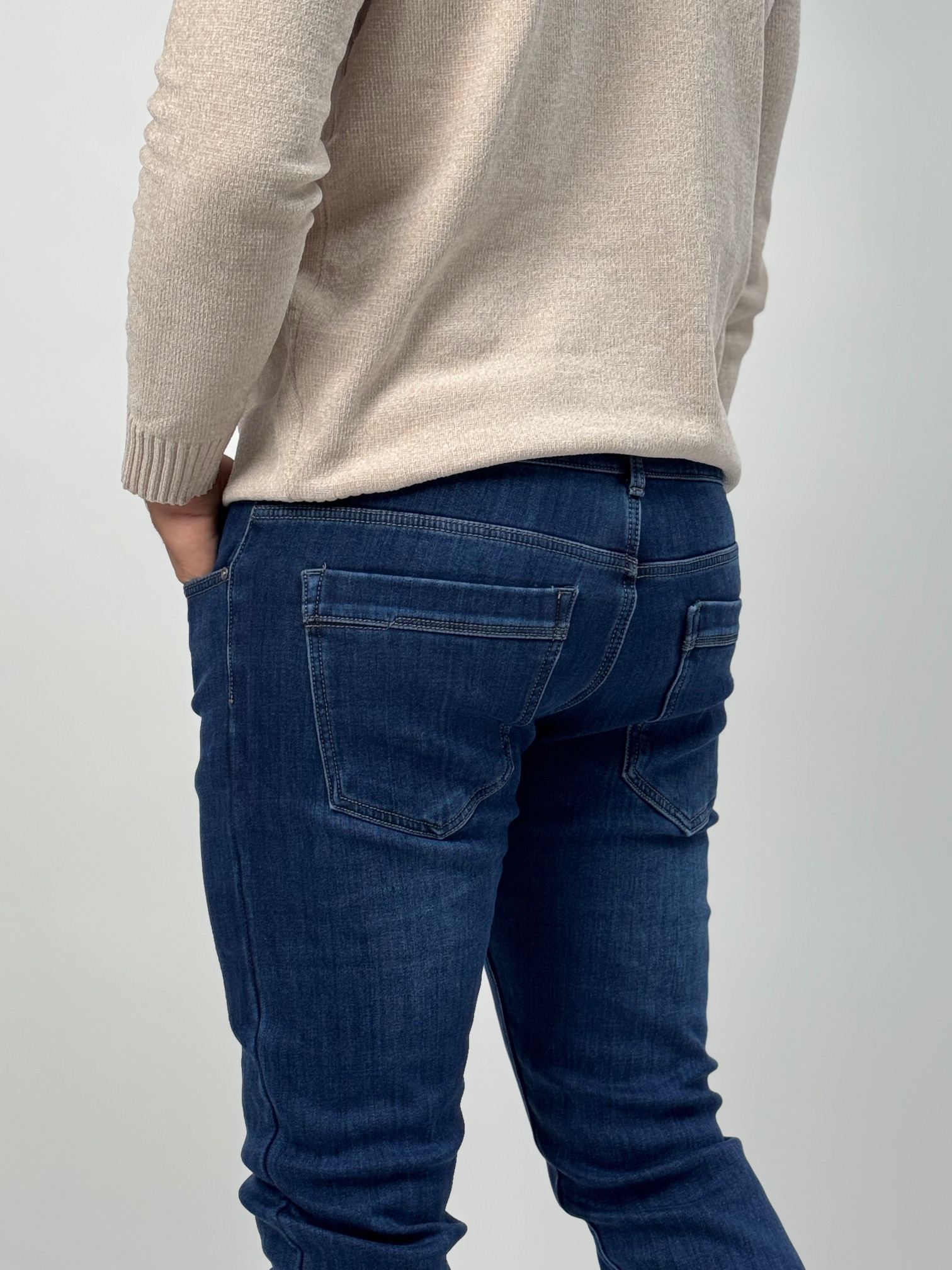 Un jeans care aduce împreună aspectul clar, structurat al unei croieli slim și moliciunea rafinată a unei texturi plușate. Acest model este creat pentru cei care își doresc un echilibru perfect între look-ul urban și o experiență de purtare confortabilă, indiferent de sezon.