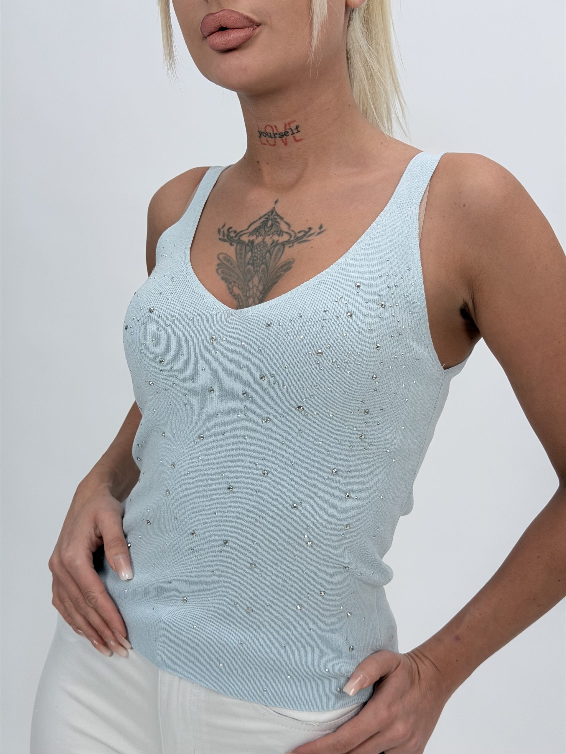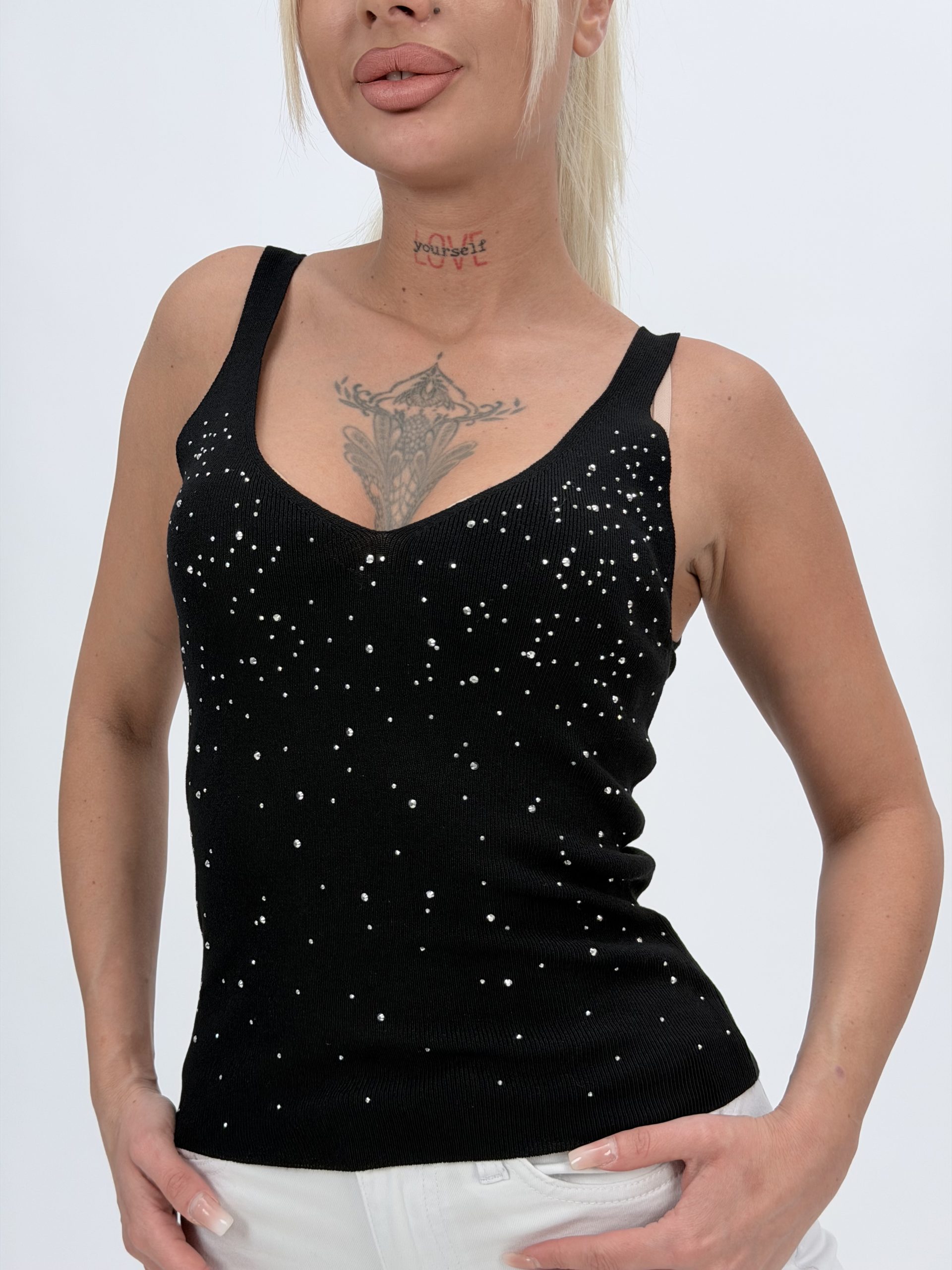 Maiou din tricot fin cu ștrasuri