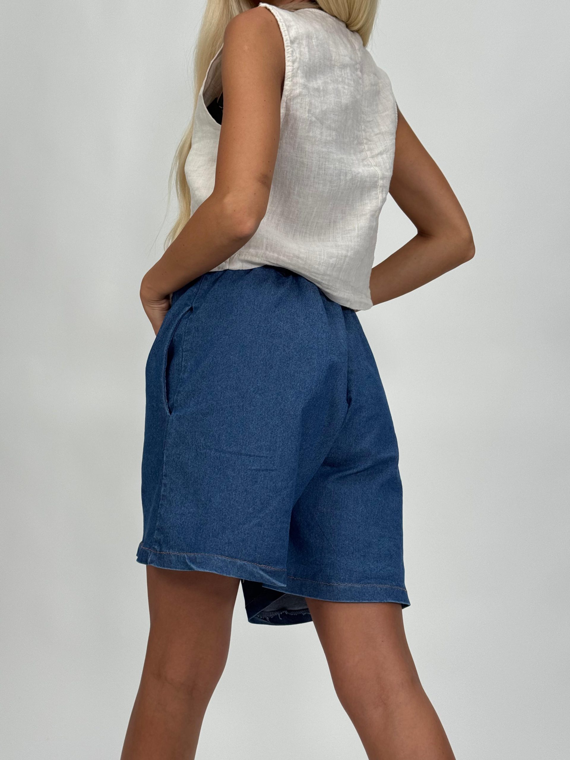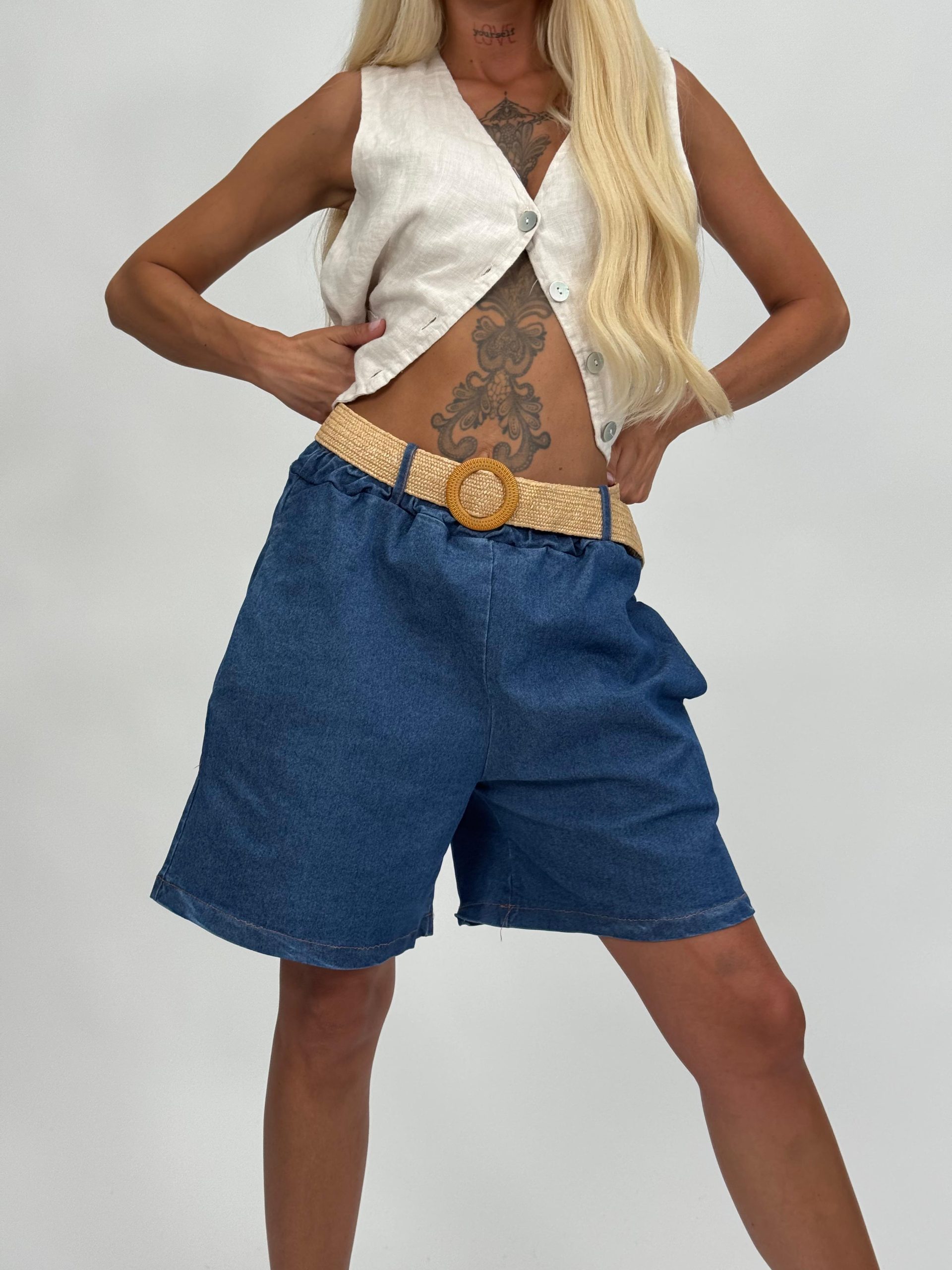Pantalon scurt din in cu curea Prețul inițial a fost: 289,90 lei.Prețul curent este: 169,90 lei.