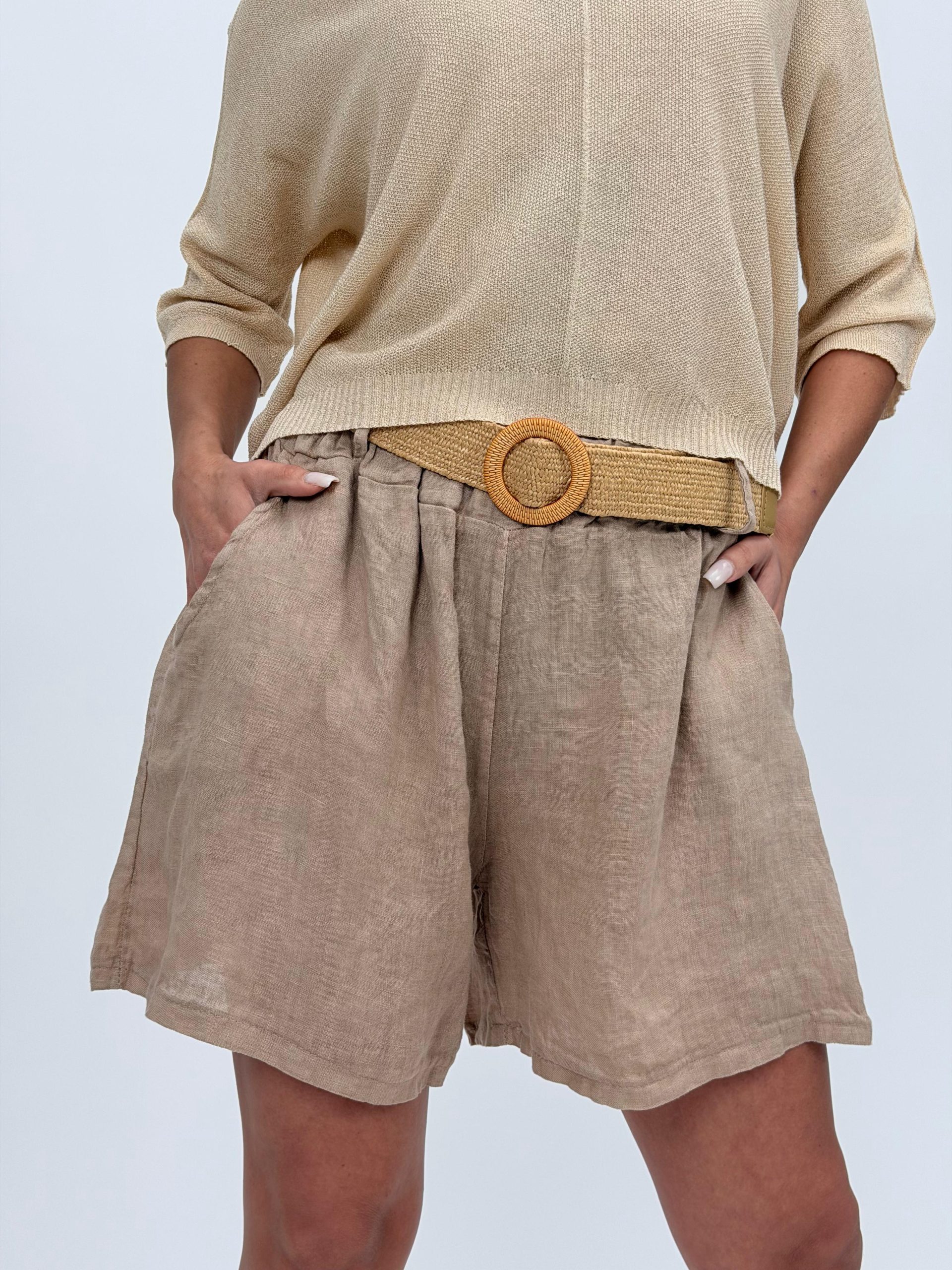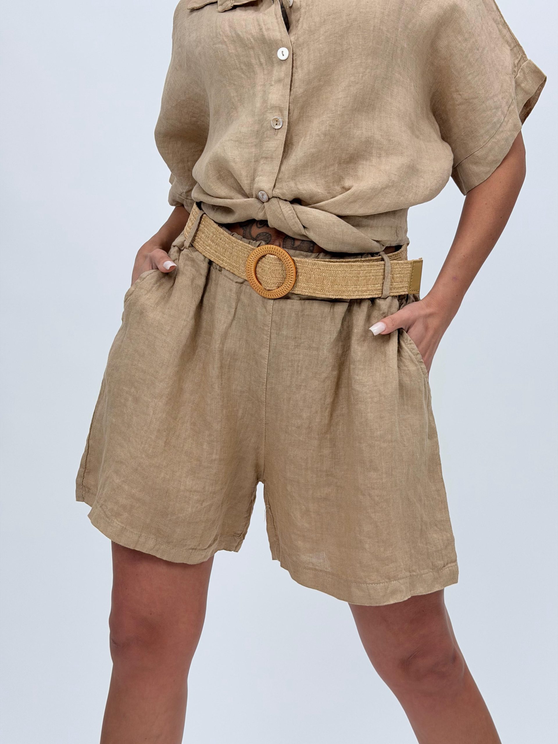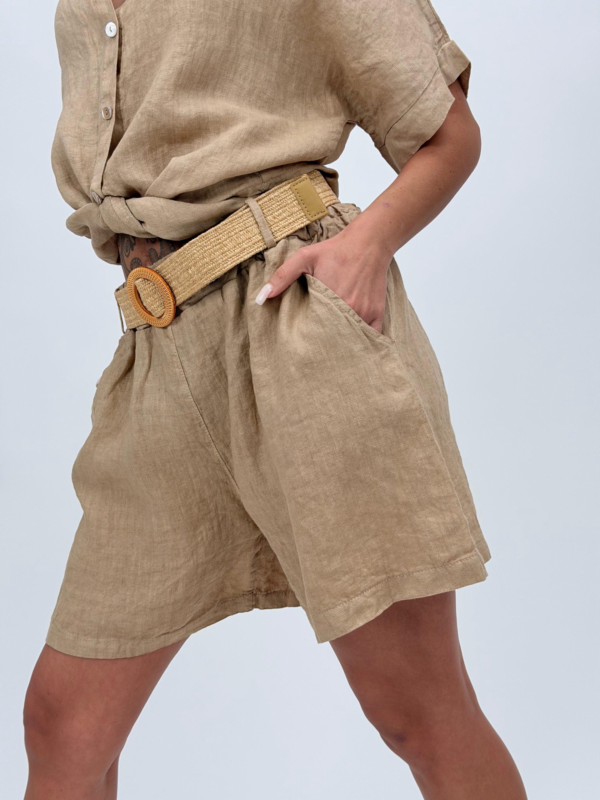 Pantalon scurt din in cu curea – eleganță naturală și confort estival