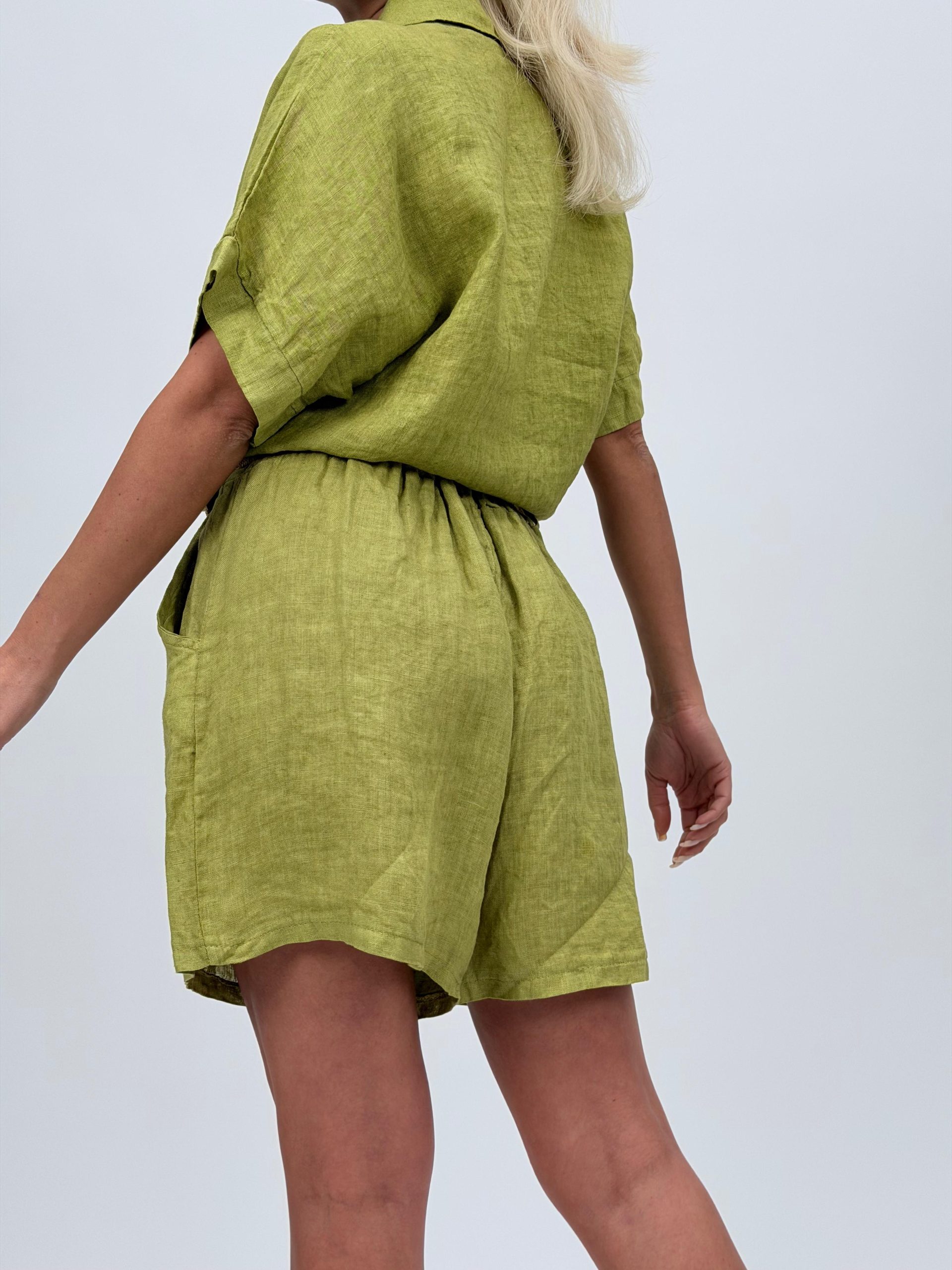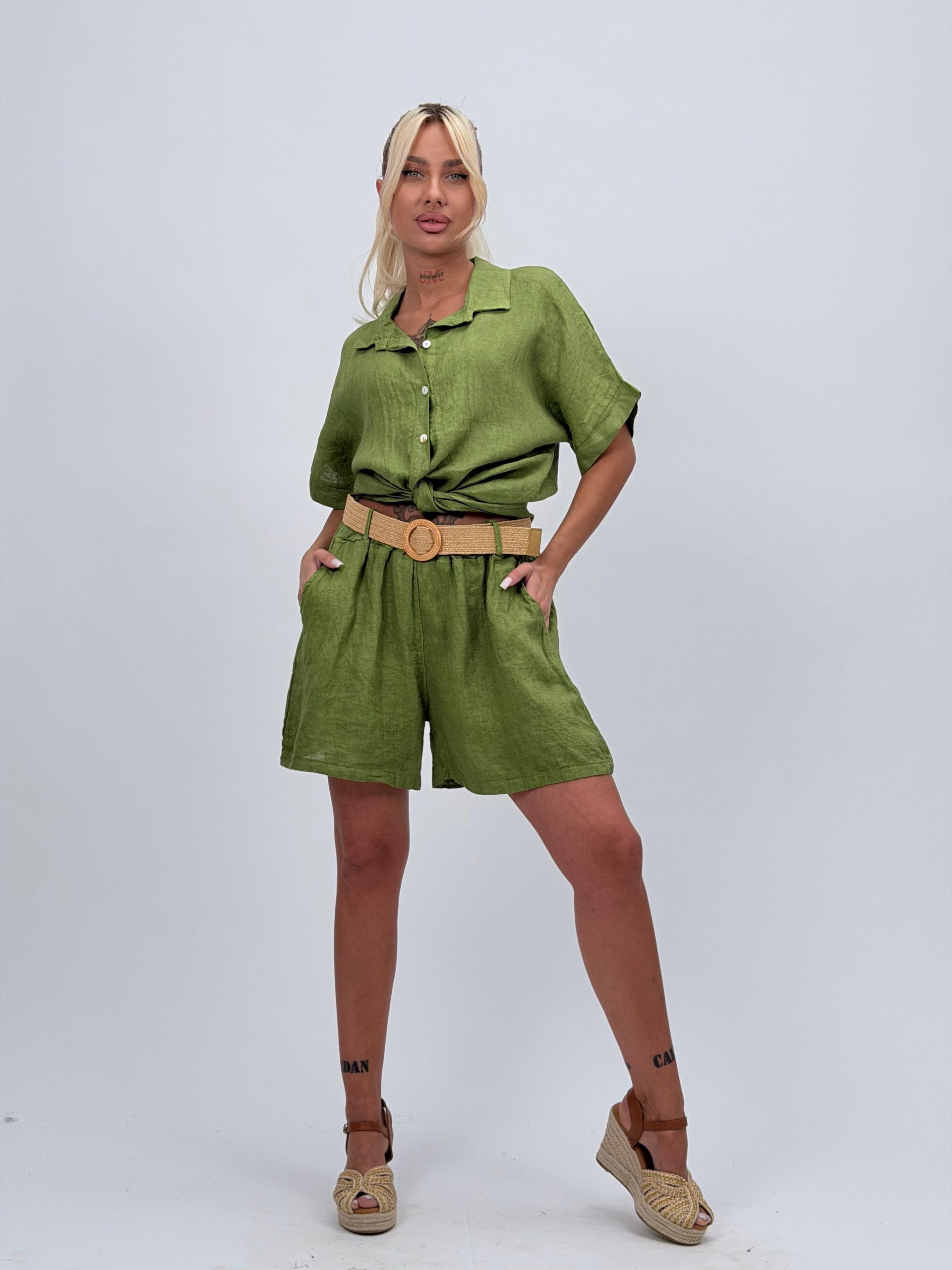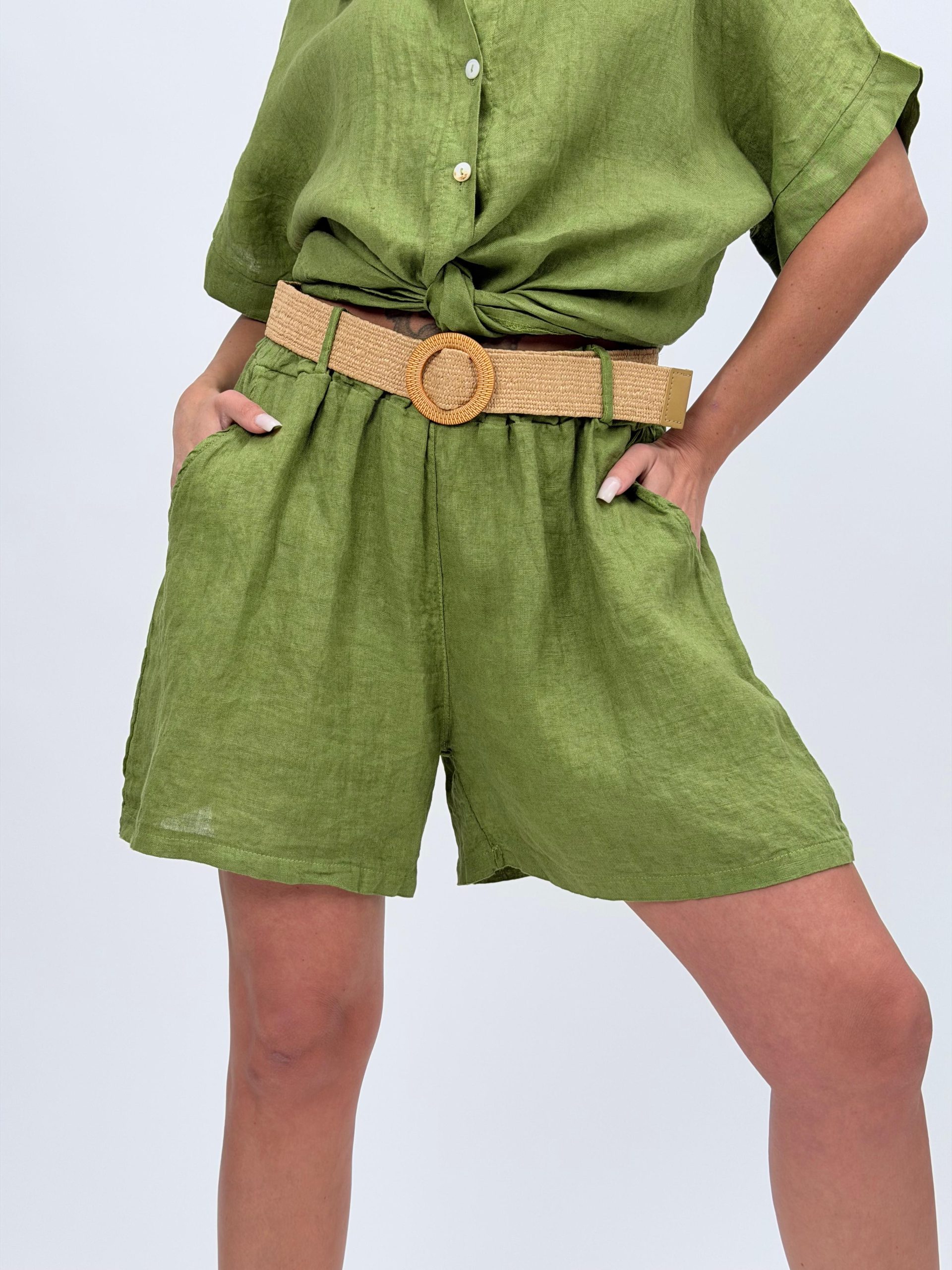 Pantalon scurt din in cu curea – eleganță naturală și confort estival
