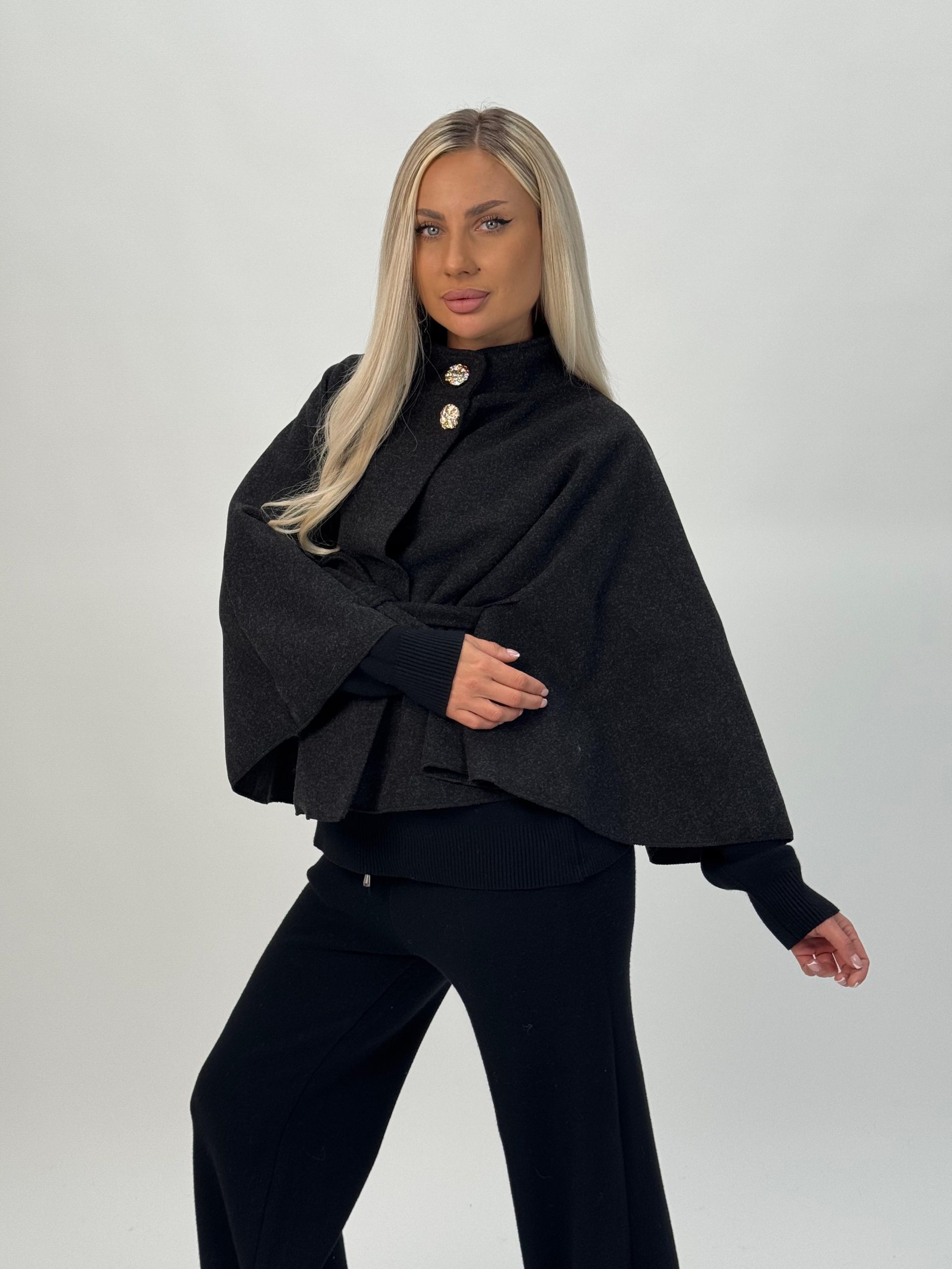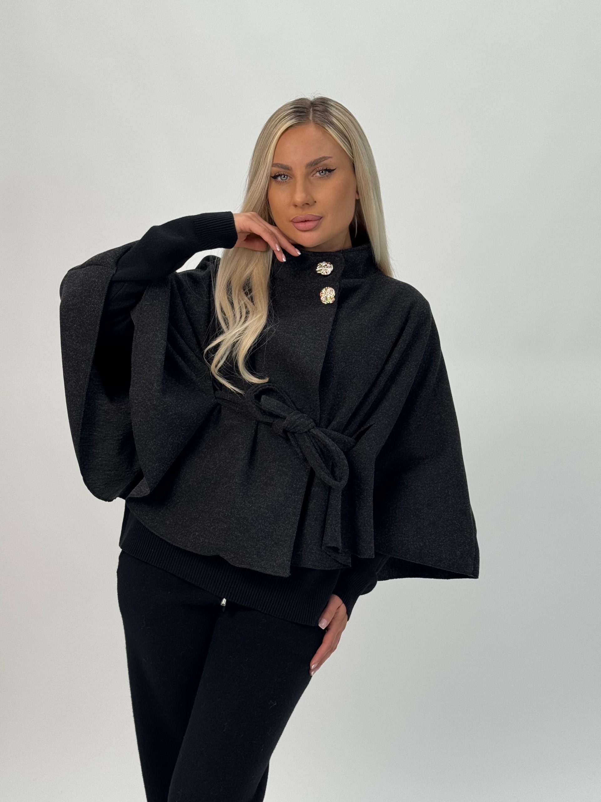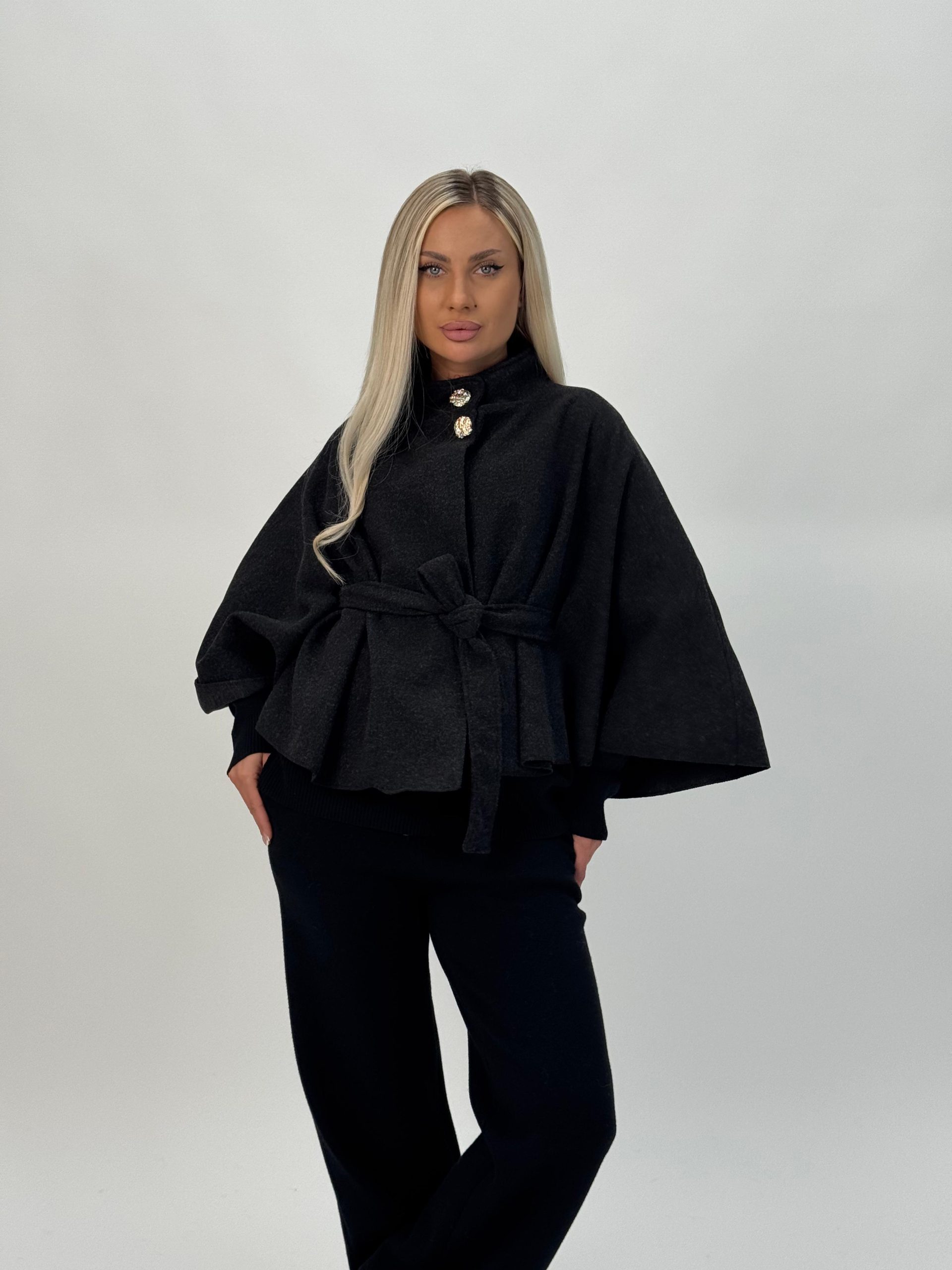 Poncho-ul cu cordon în talie este o piesă elegantă și practică, perfectă dacă iți dorești combini confortul cu rafinamentul. Este ideal pentru zilele de toamnă sau iarnă, oferind un plus de stil fiecărei ținute.