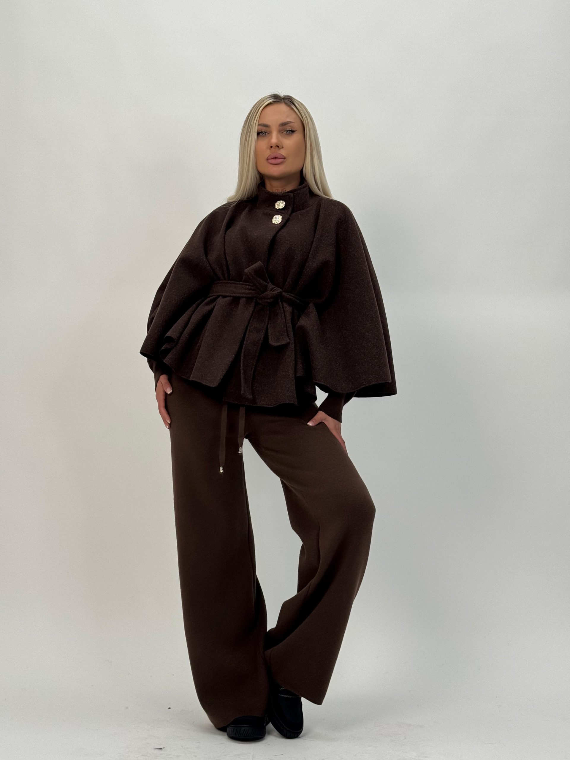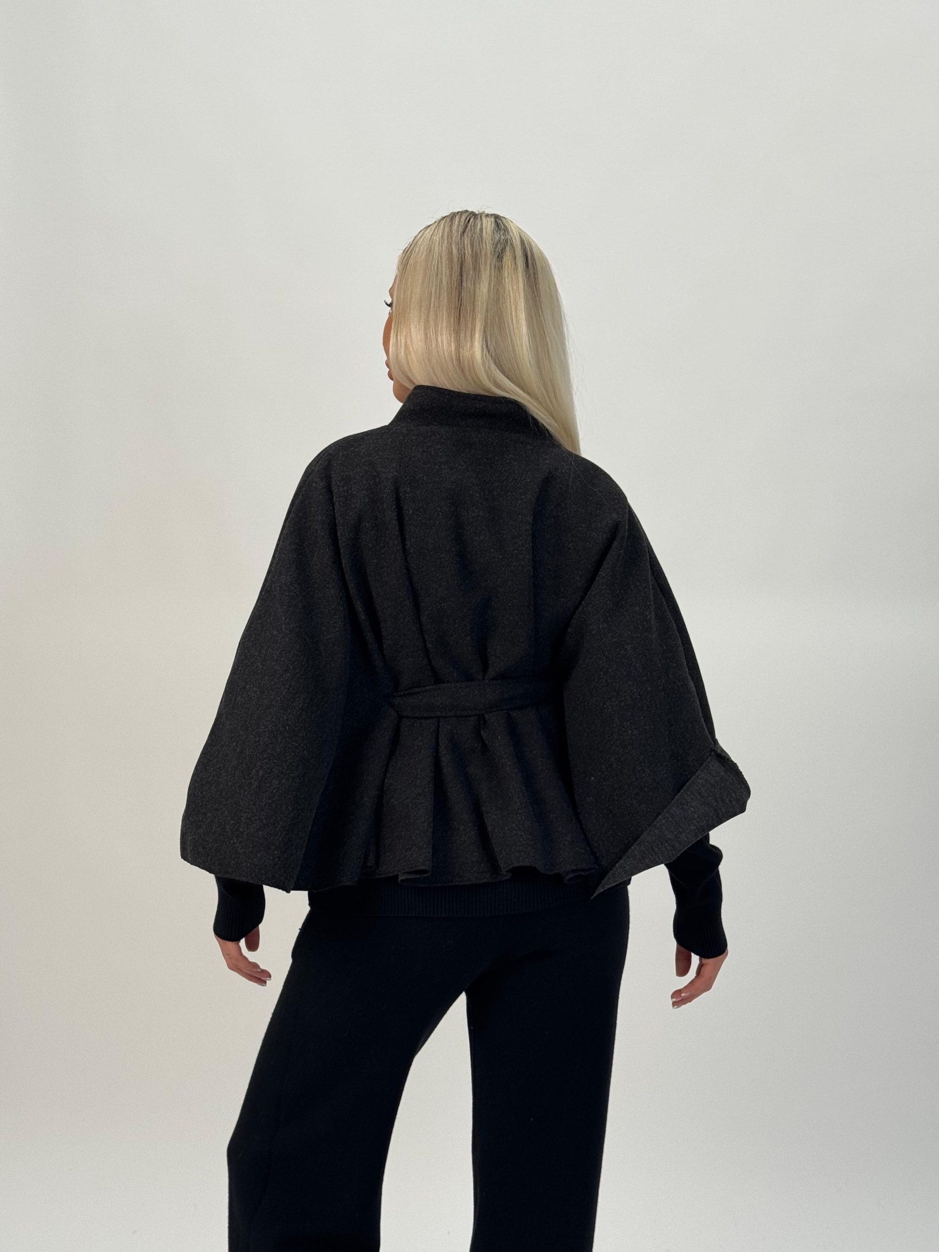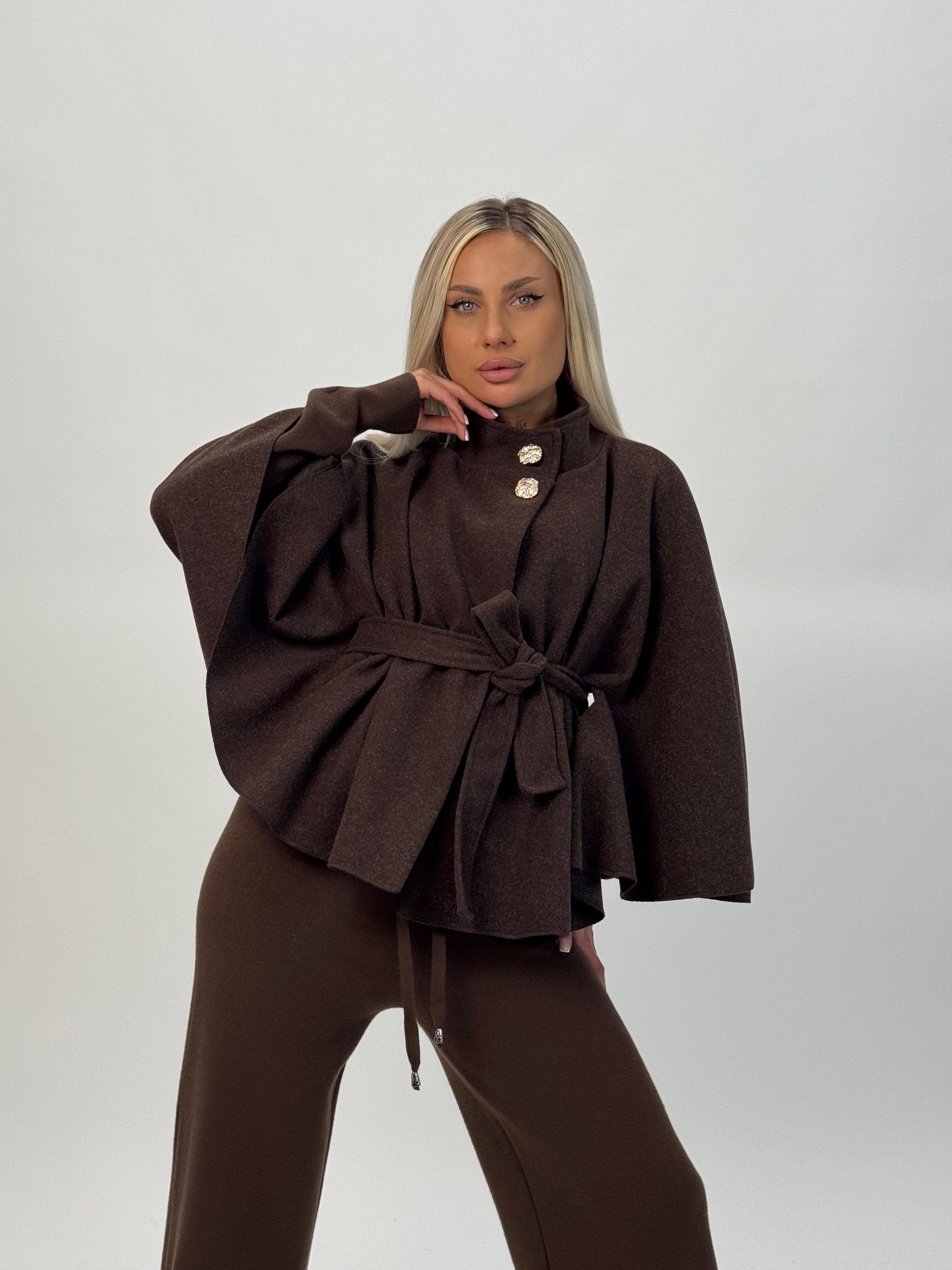 Poncho-ul cu cordon în talie este o piesă elegantă și practică, perfectă dacă iți dorești combini confortul cu rafinamentul. Este ideal pentru zilele de toamnă sau iarnă, oferind un plus de stil fiecărei ținute.