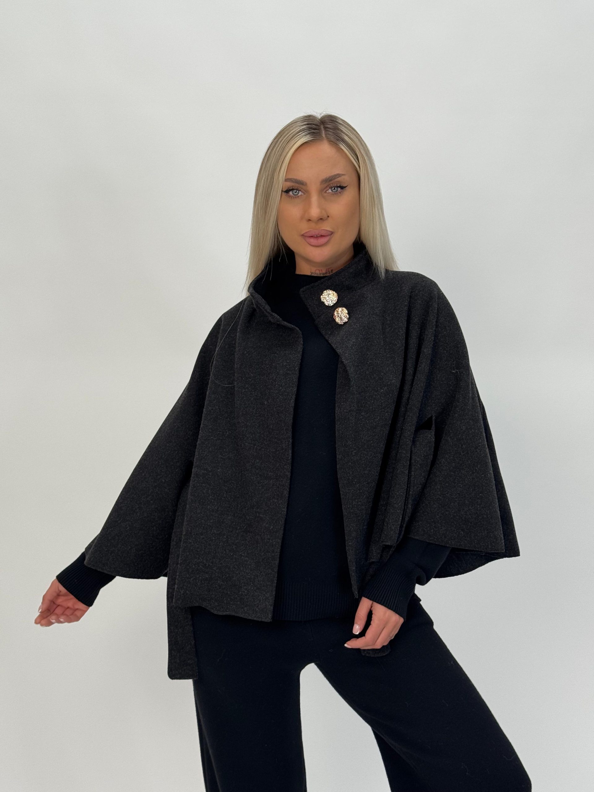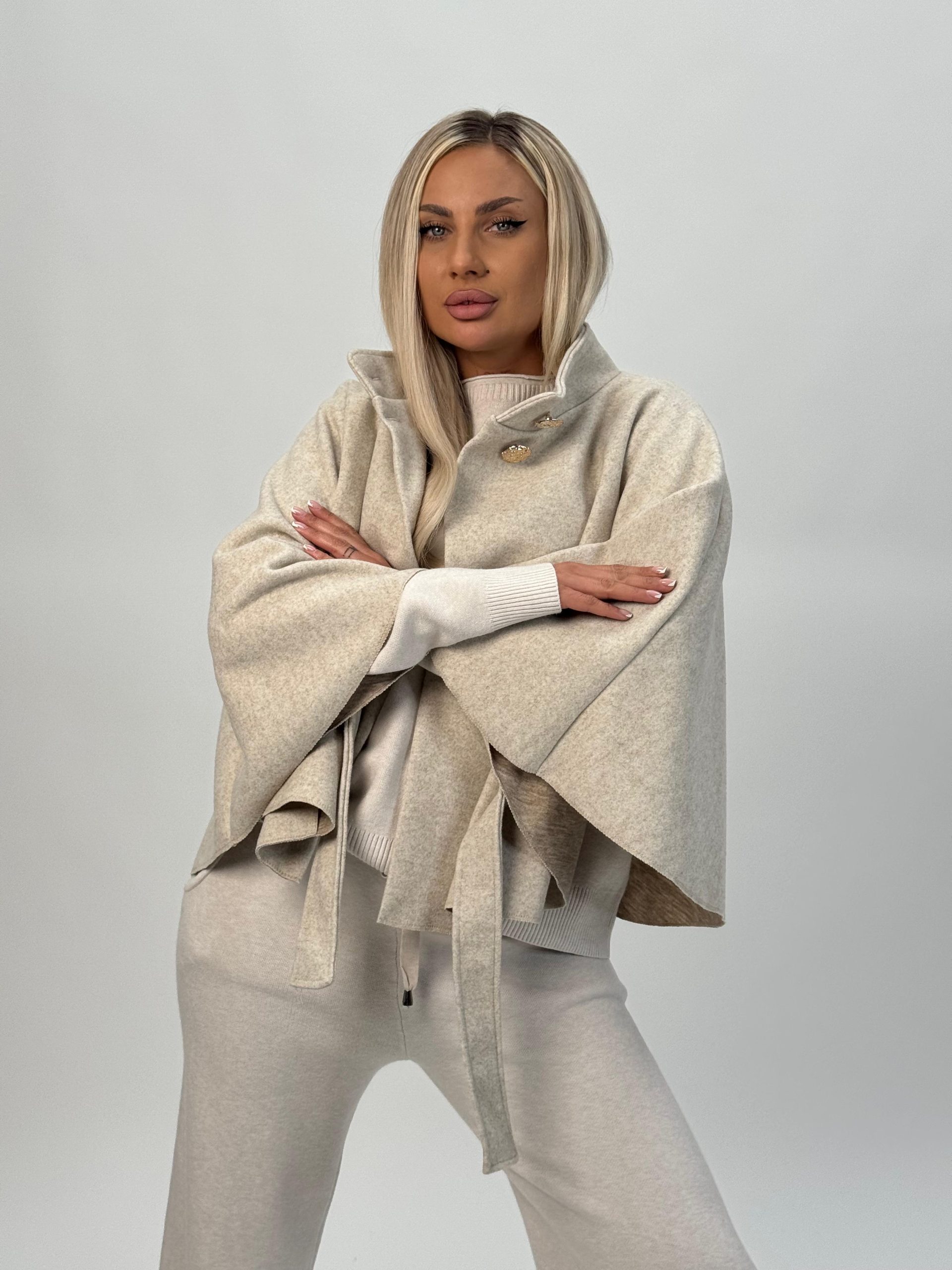 Această piesă versatilă combină lejeritatea unui poncho clasic cu eleganța unei croieli definite. Este ideală pentru zilele răcoroase, aducând un plus de stil și confort oricărui outfit.