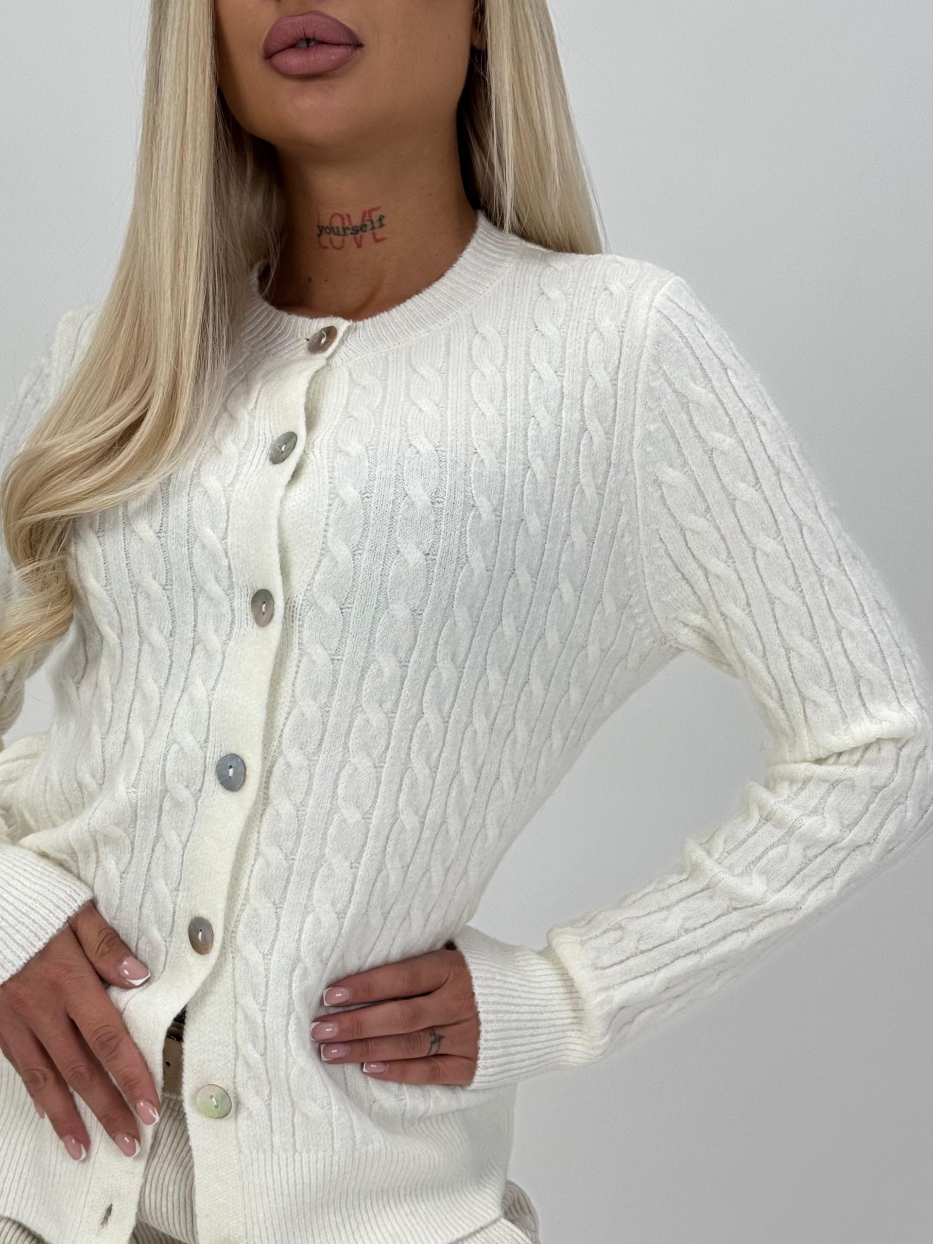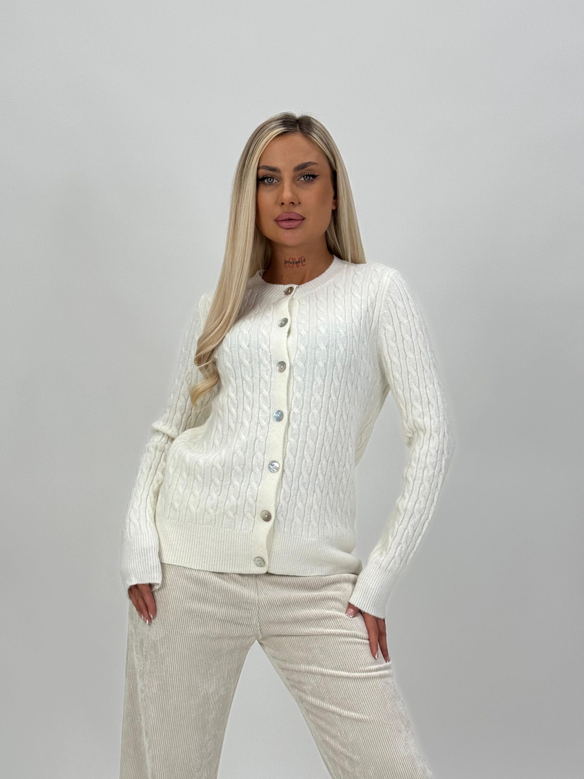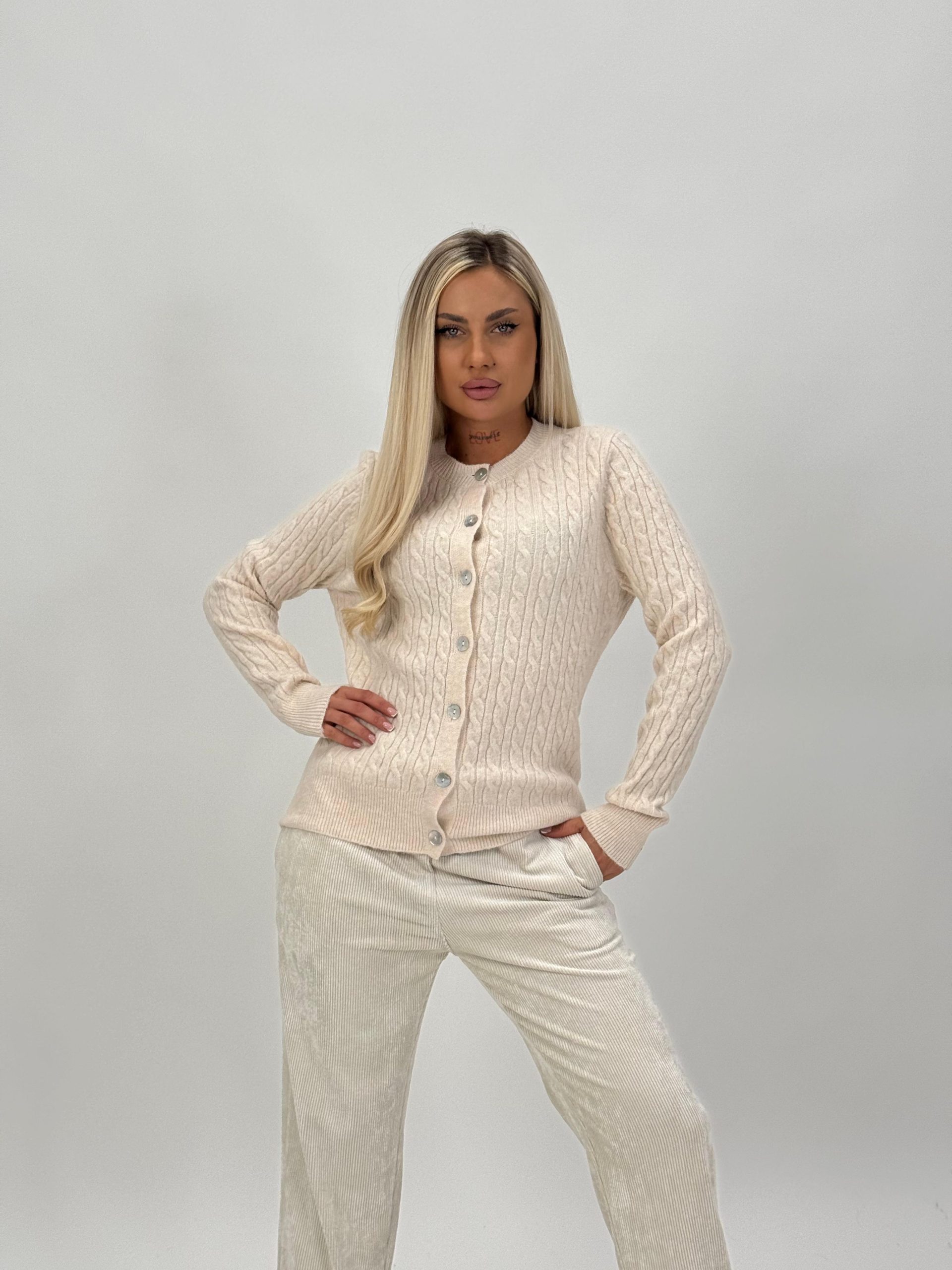 Pulover Cardigan cu Model Torsade – Stil Rafinat și Versatilitate