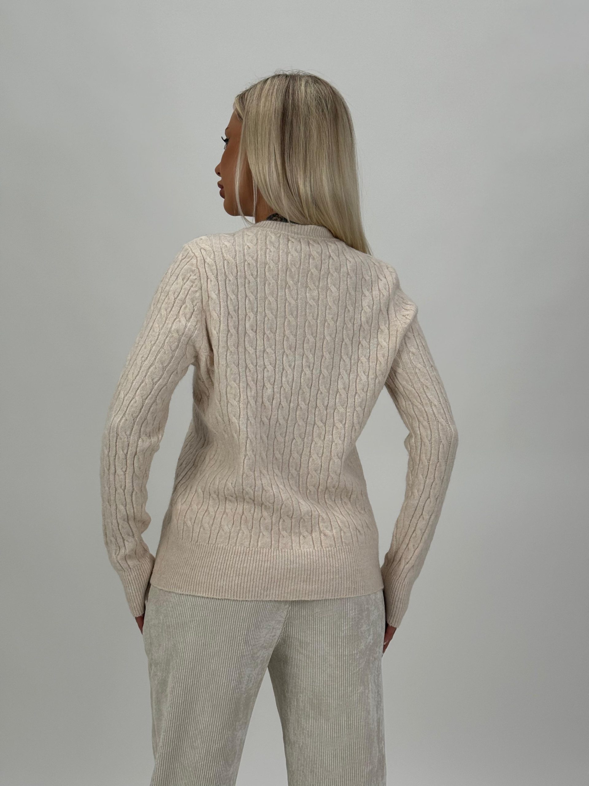 Această piesă este alegerea ideală dacă iți dorești îmbini confortul cu rafinamentul. Modelul torsade oferă un plus de personalitate și textură, transformând orice ținută simplă într-una de efect.