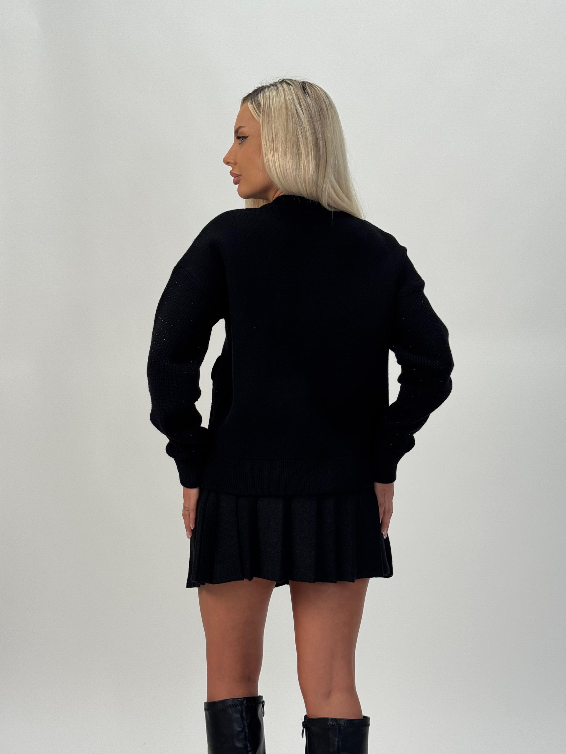 Acest model îmbină confortul tricotului cu farmecul detaliilor sclipitoare. Este ideal pentru a completa atât ținute casual, cât și outfituri elegante, oferind o apariție feminină și elegantă.