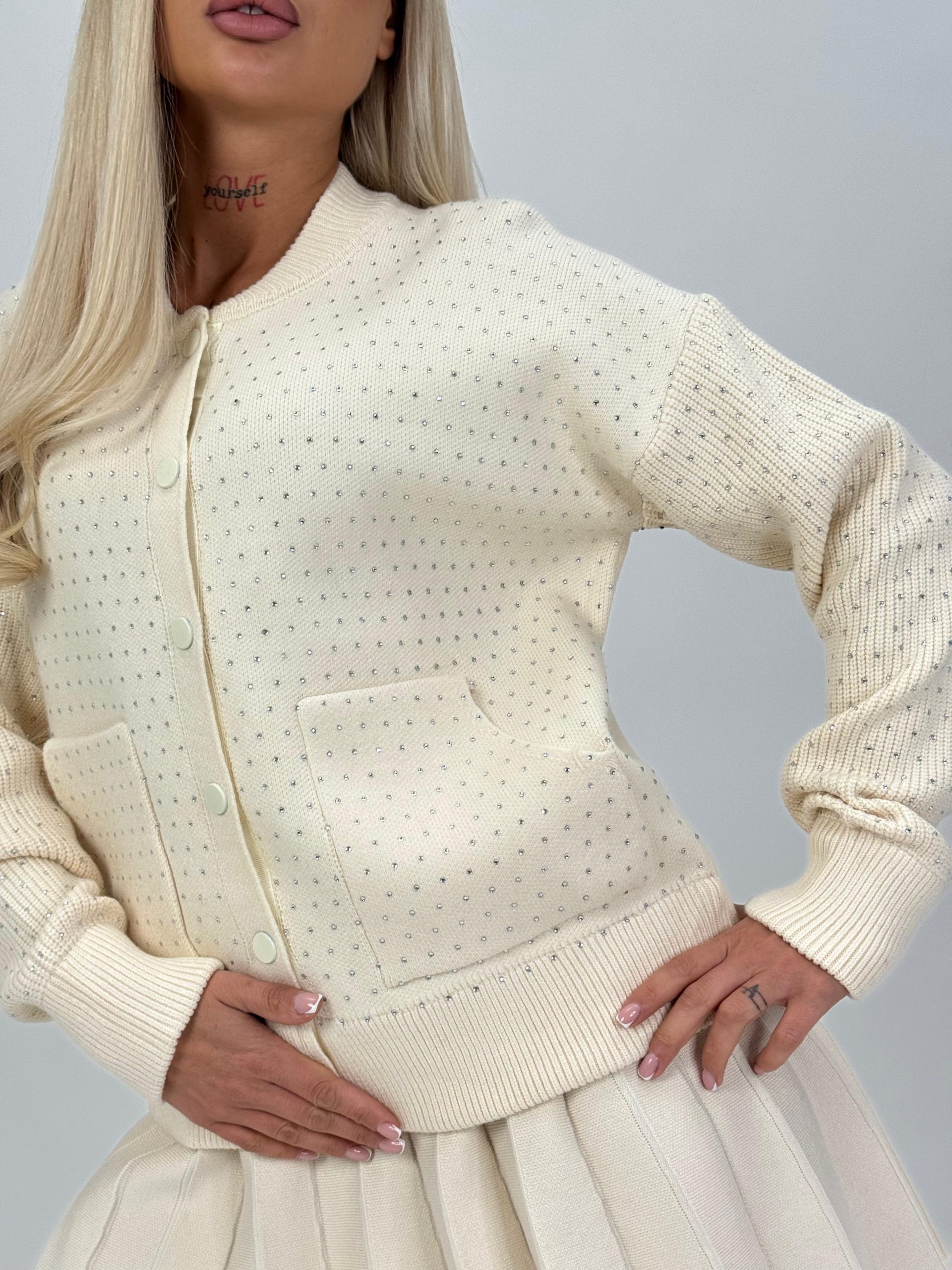 Pulover Cardigan cu Ștrasuri – Rafinament în Fiecare Detaliu